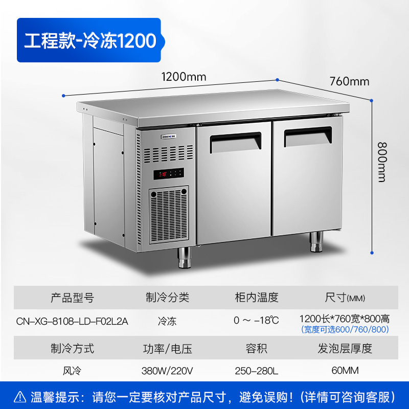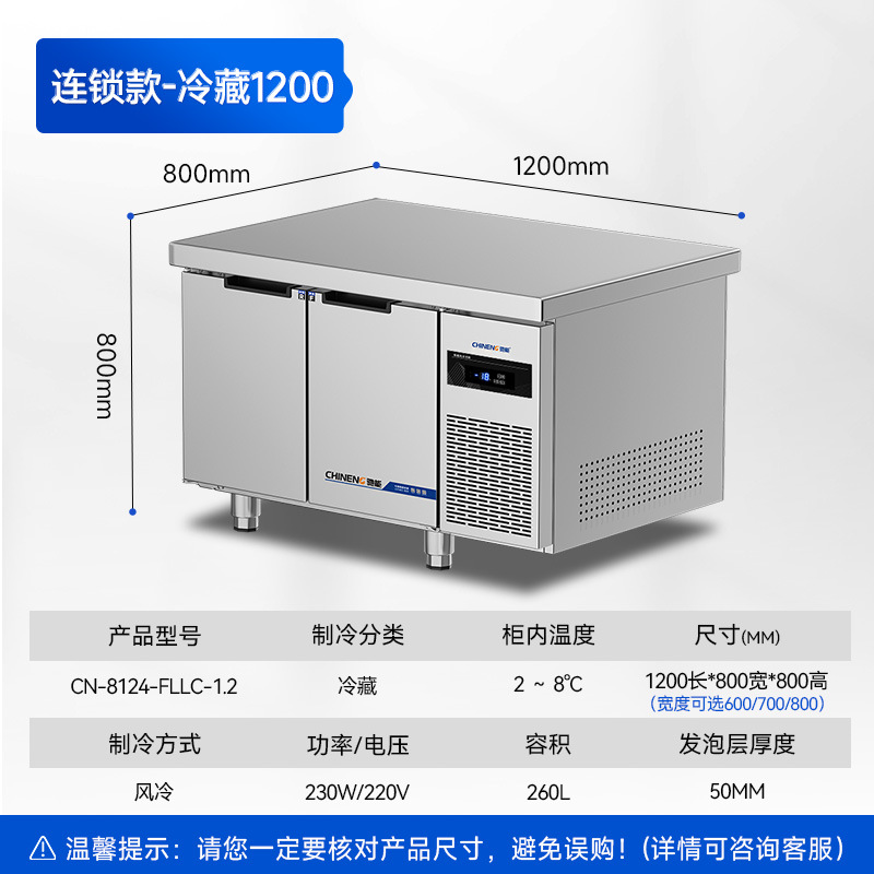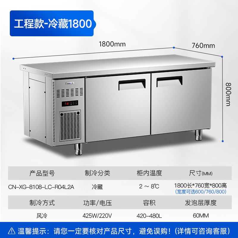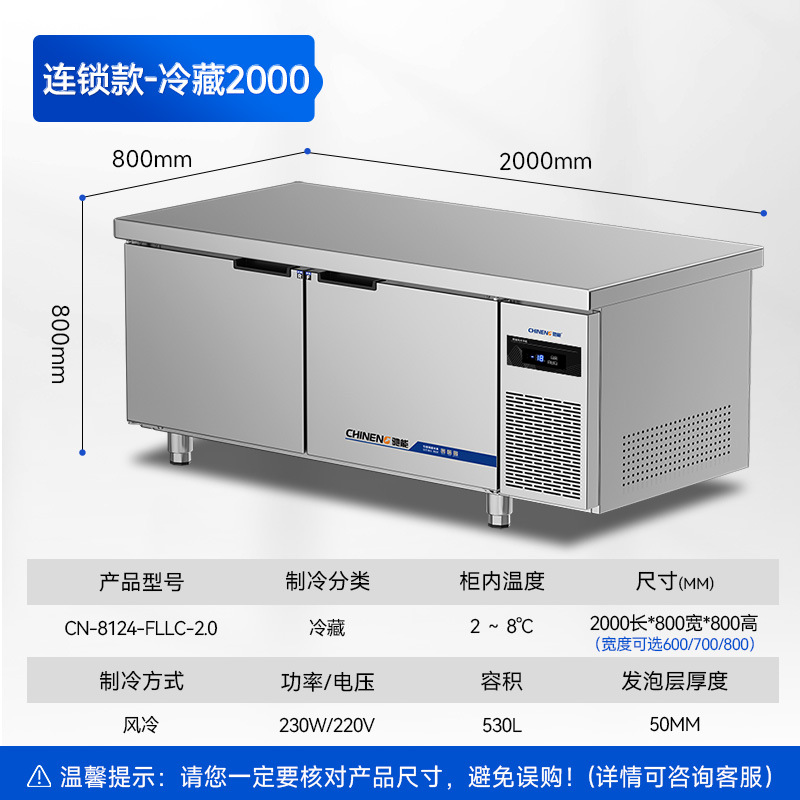 Chineng 냉장 작업대 상업용 스테인리스 도마 냉동 플랫 냉각 콘솔 레스토랑 공기 냉동고 신선한 보관 냉장고스토어 가기