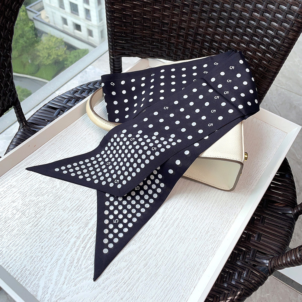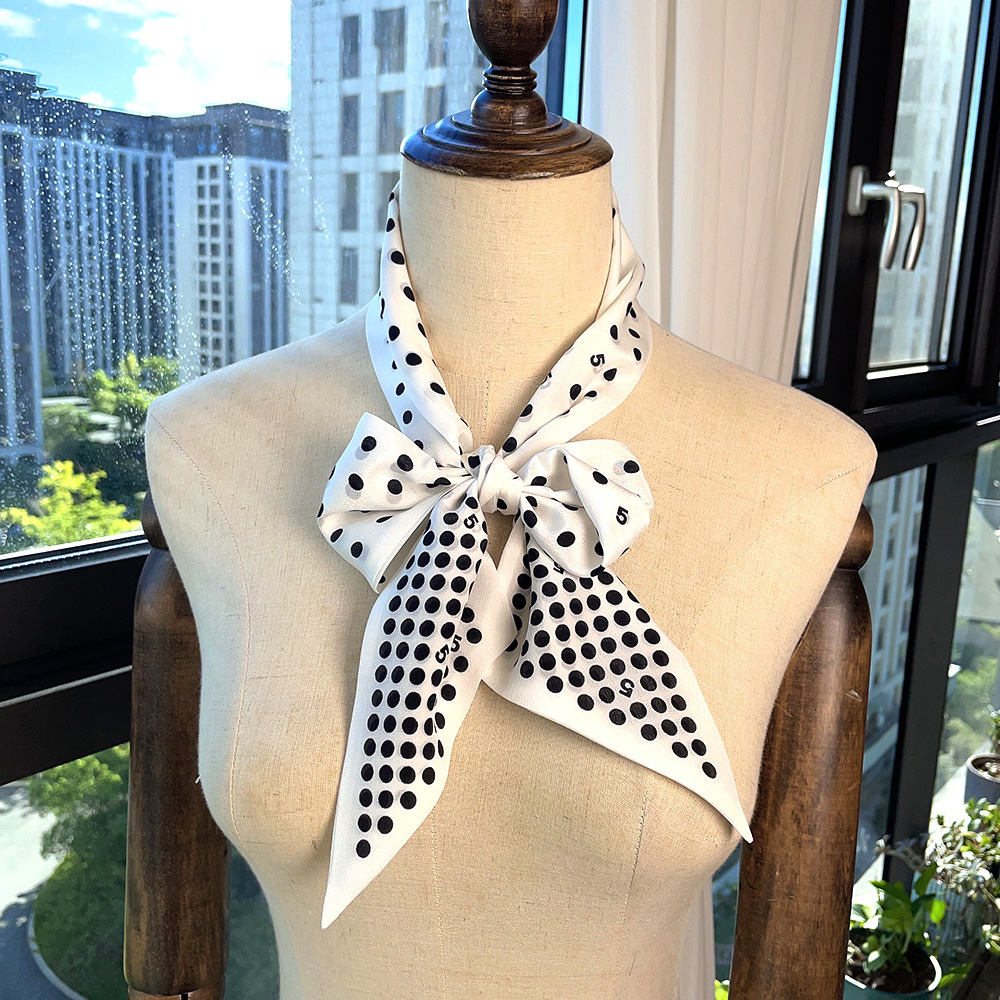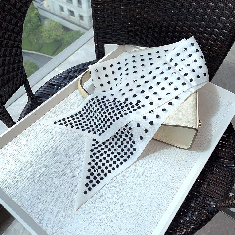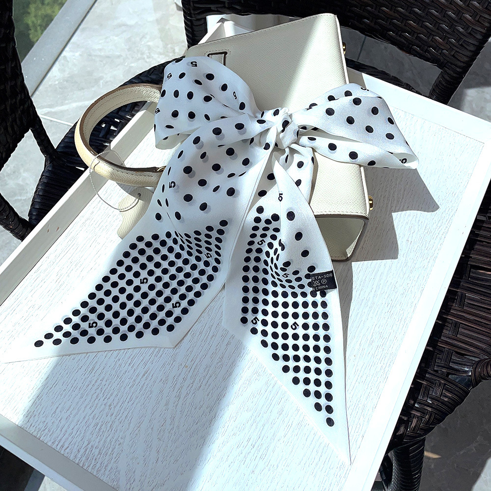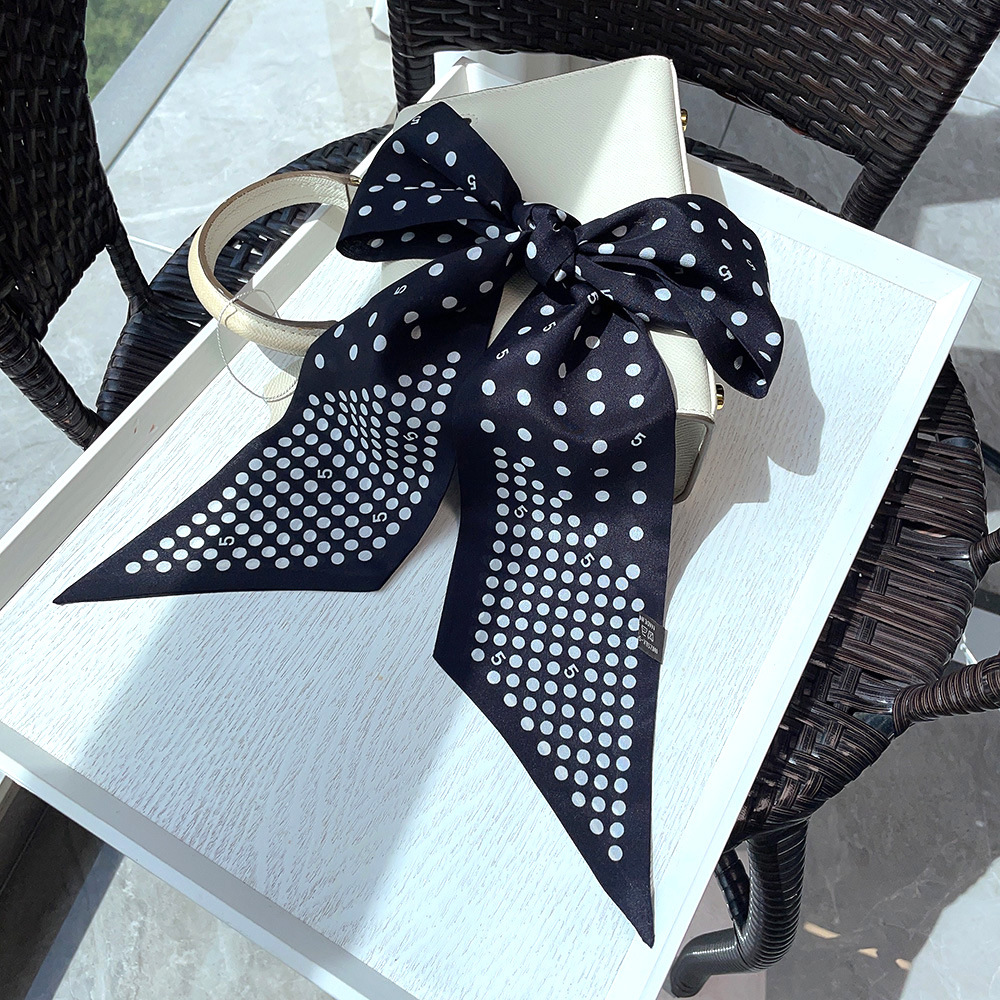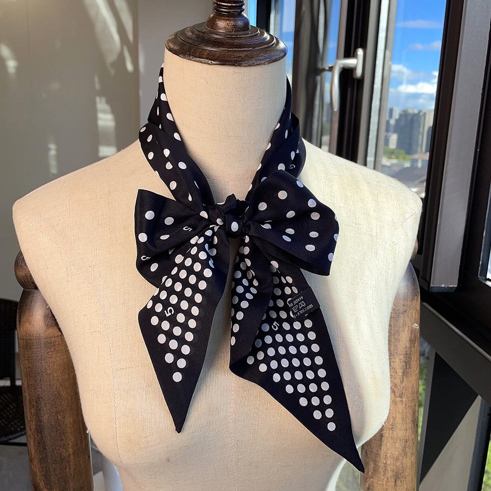 실크 크레페 드 친 긴 리본 헵번 도트 No.5 뽕나무 실크 스카프 목 액세서리 V-넥 의류 스카프 여성스토어 가기