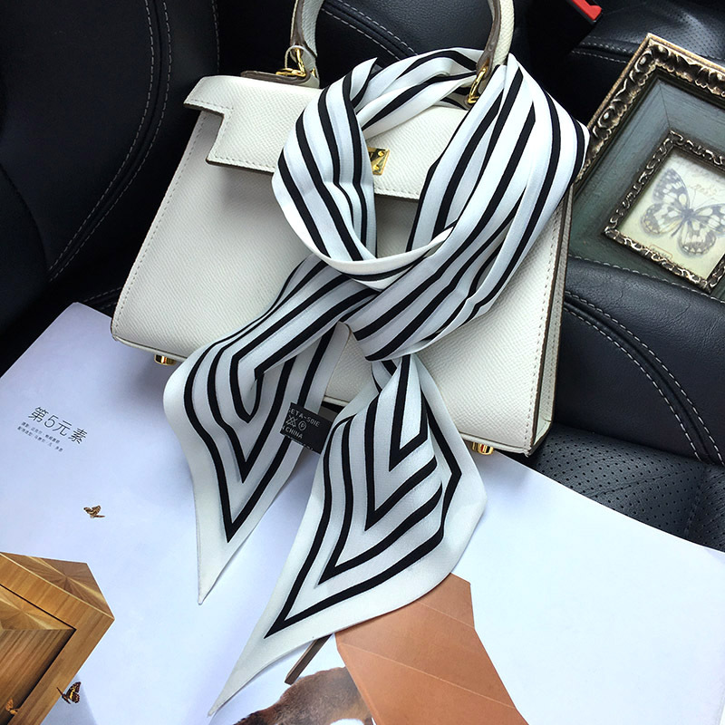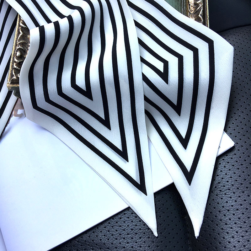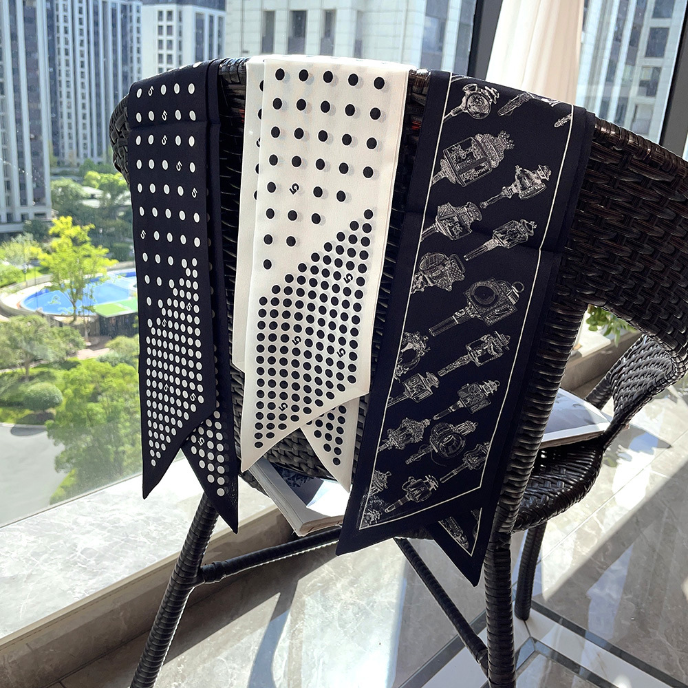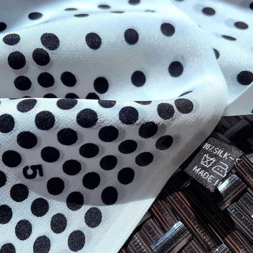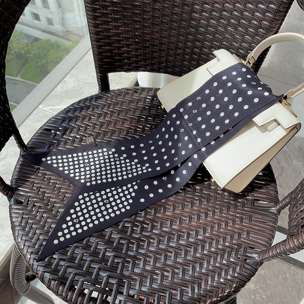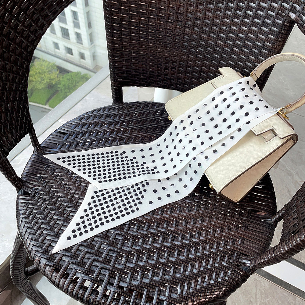 실크 크레페 드 친 긴 리본 헵번 도트 No.5 뽕나무 실크 스카프 목 액세서리 V-넥 의류 스카프 여성스토어 가기