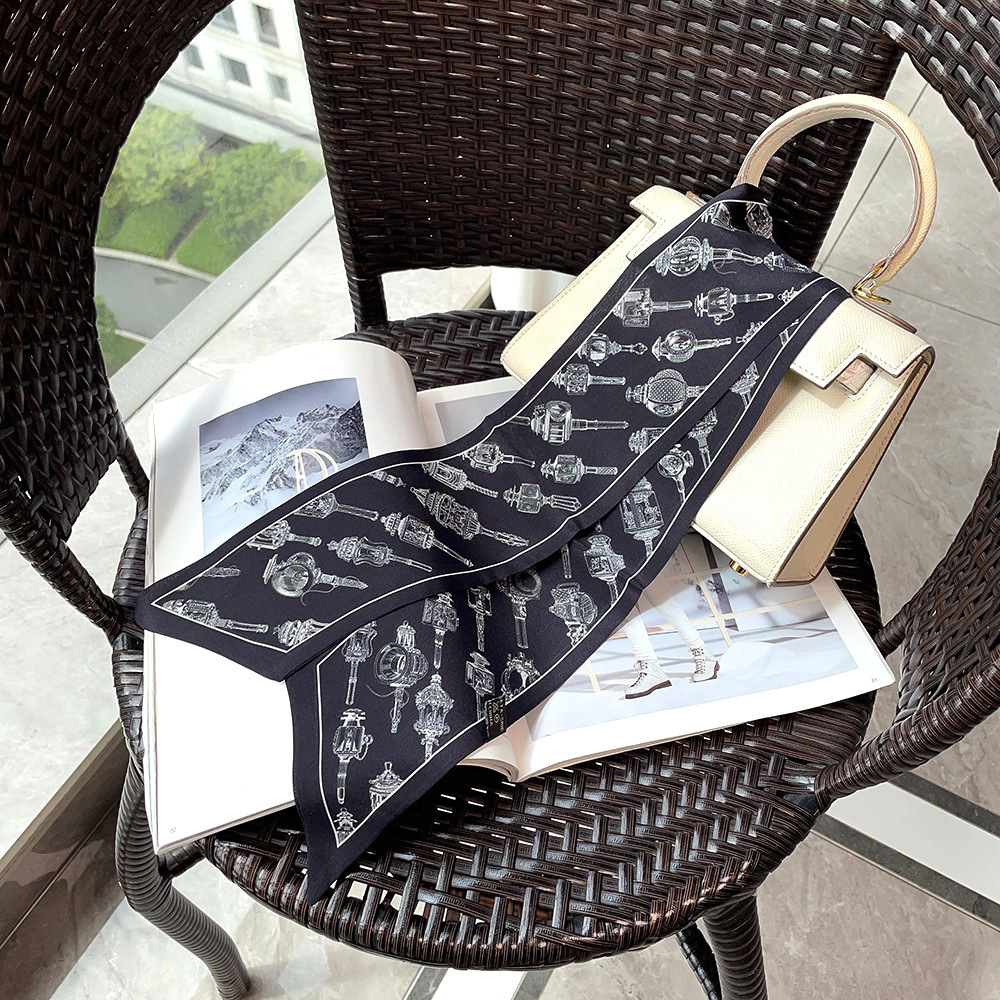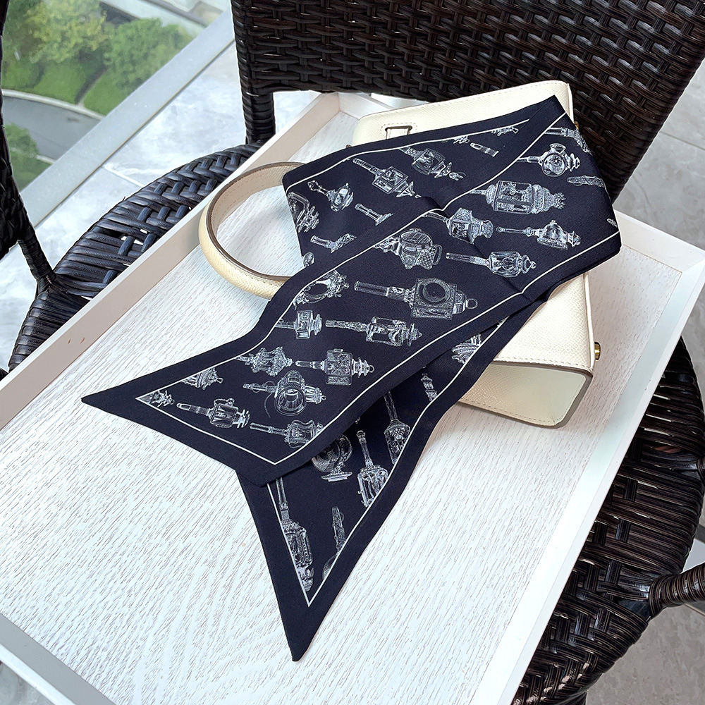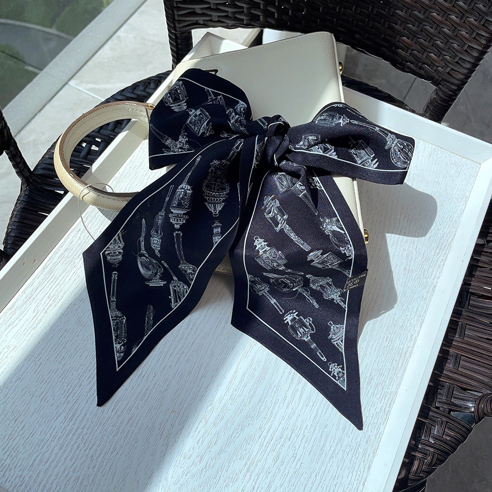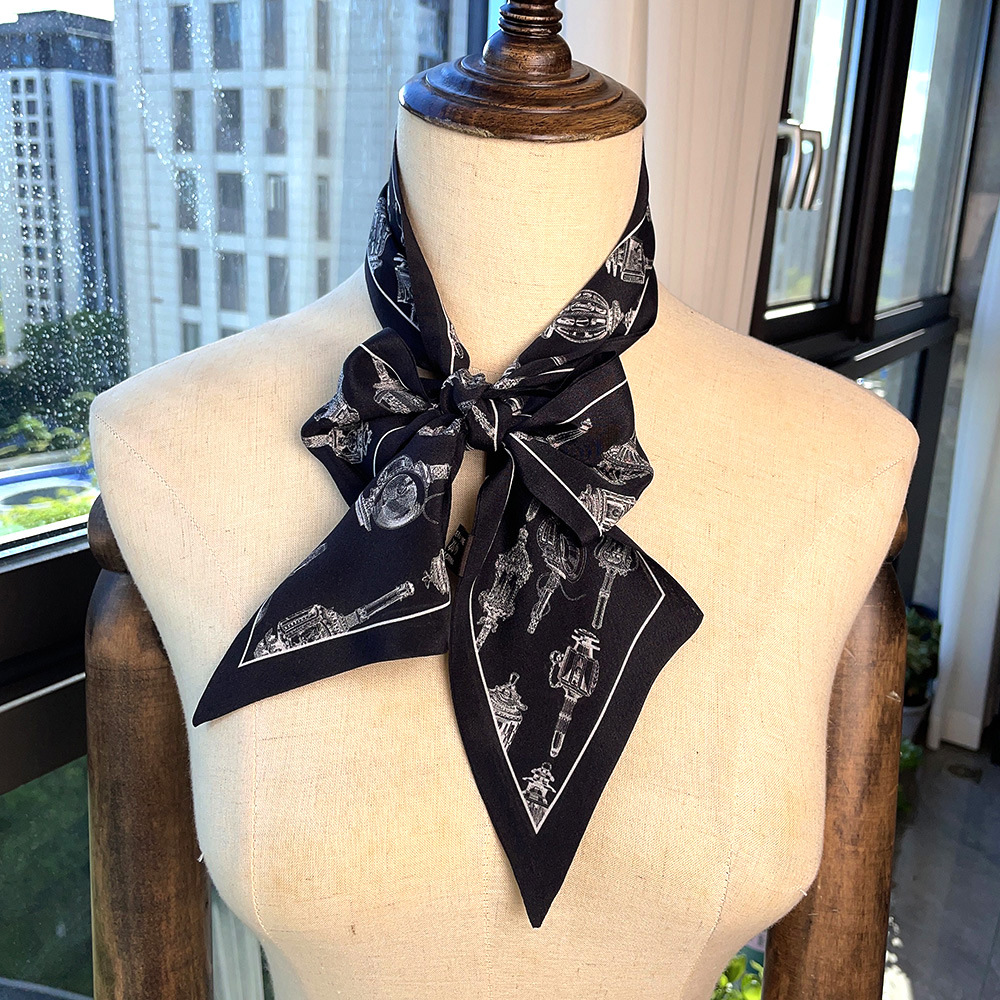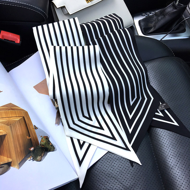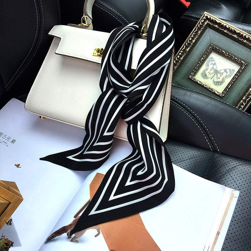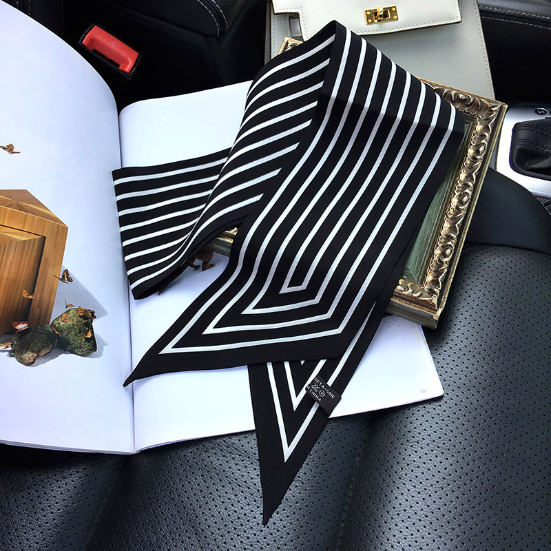 실크 크레페 드 친 긴 리본 헵번 도트 No.5 뽕나무 실크 스카프 목 액세서리 V-넥 의류 스카프 여성스토어 가기