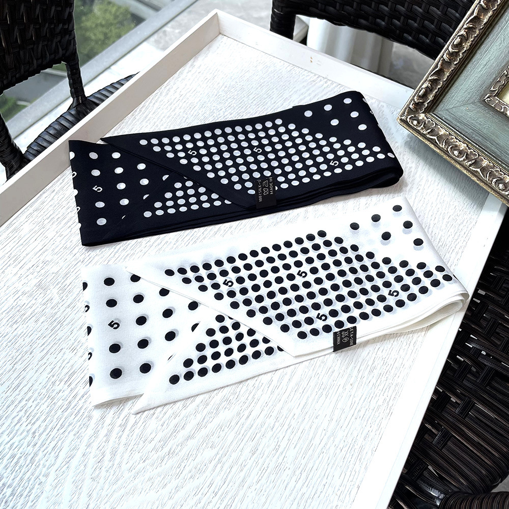 실크 크레페 드 친 긴 리본 헵번 도트 No.5 뽕나무 실크 스카프 목 액세서리 V-넥 의류 스카프 여성