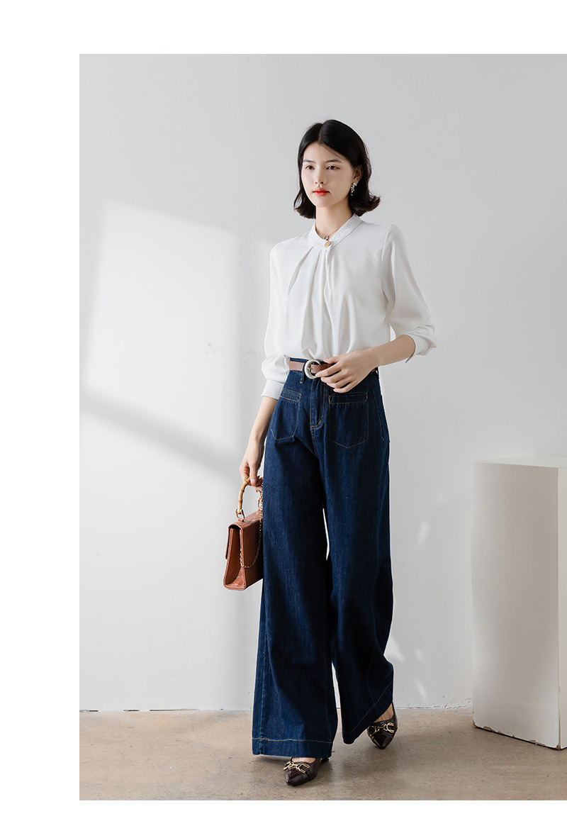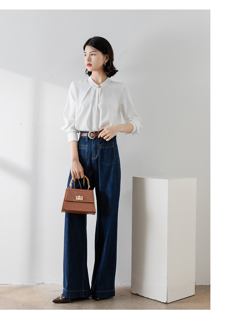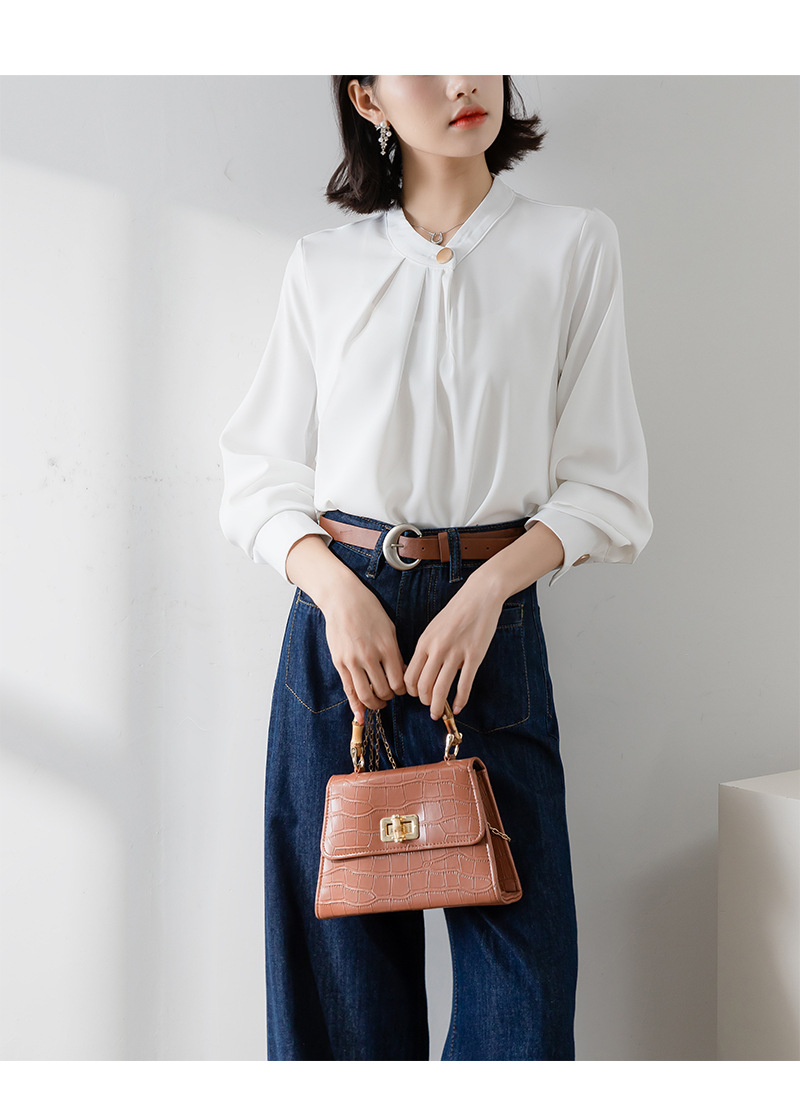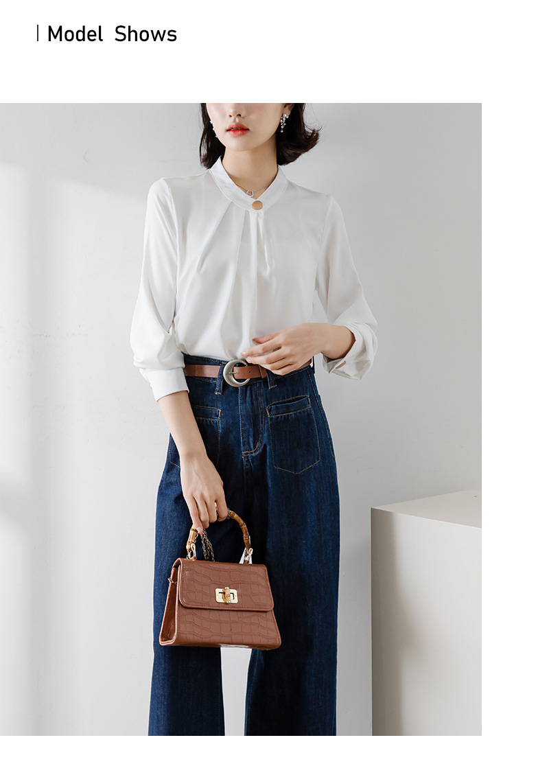 2025년 봄/가을 신상품 원버튼 스탠드 칼라 고급 새틴 주름방지 화이트 셔츠, 프로페셔널 OL 쉬폰 셔츠스토어 가기