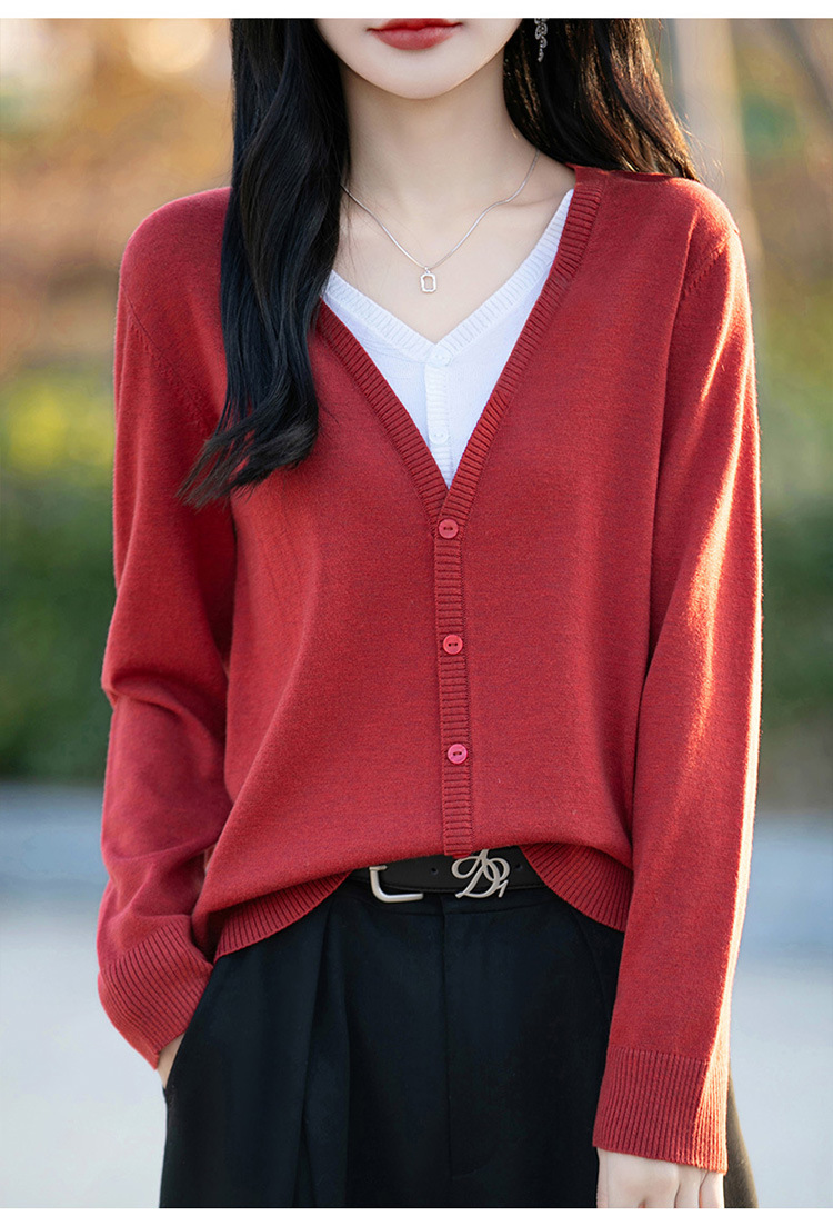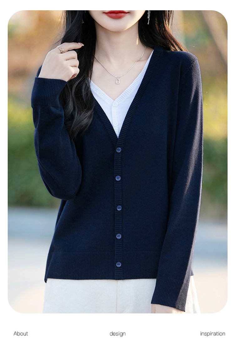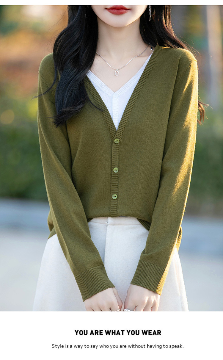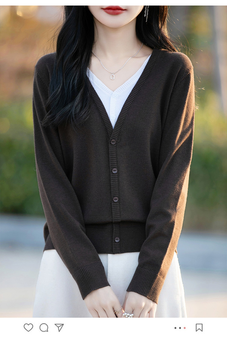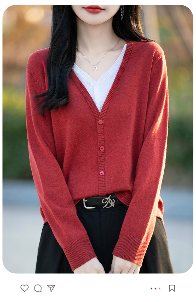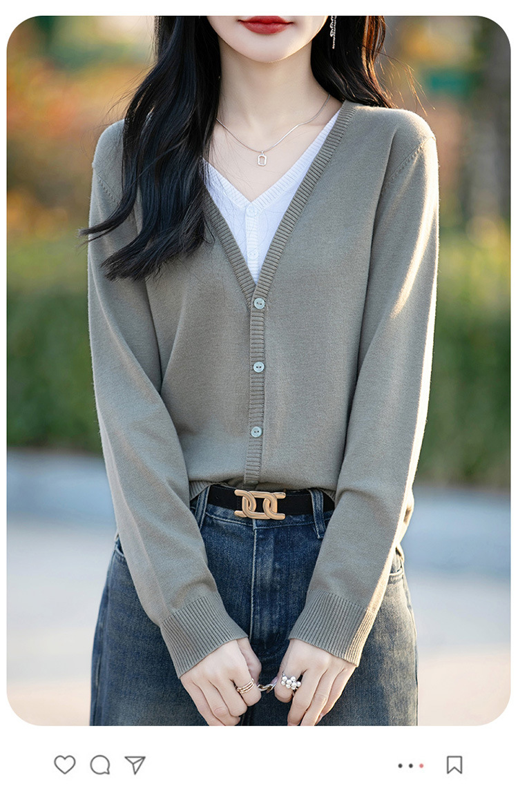 봄 새로운 V-Neck 가짜 2 조각 양모 카디건 여성의 느슨한 짧은 재킷 니트 외주 디자인 스웨터 얇은스토어 가기