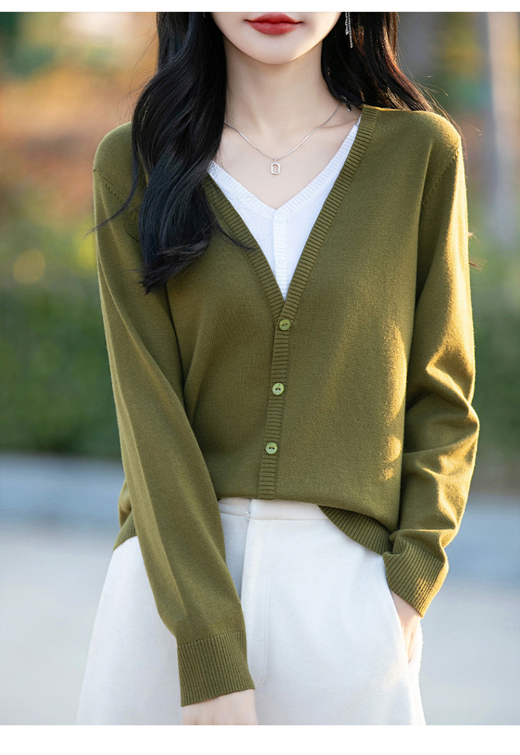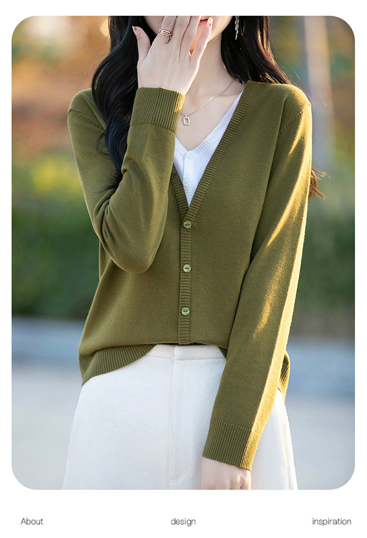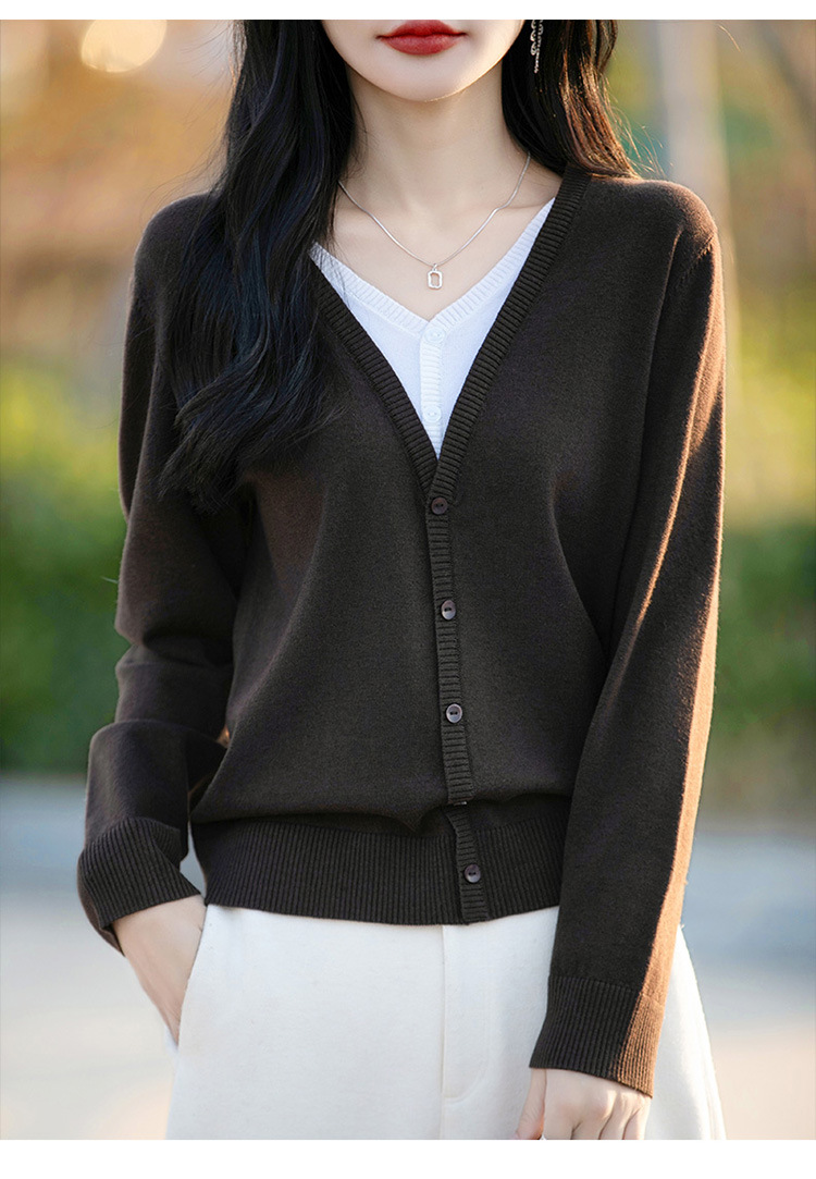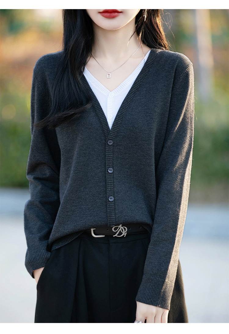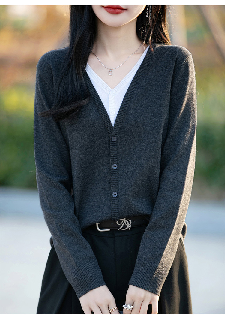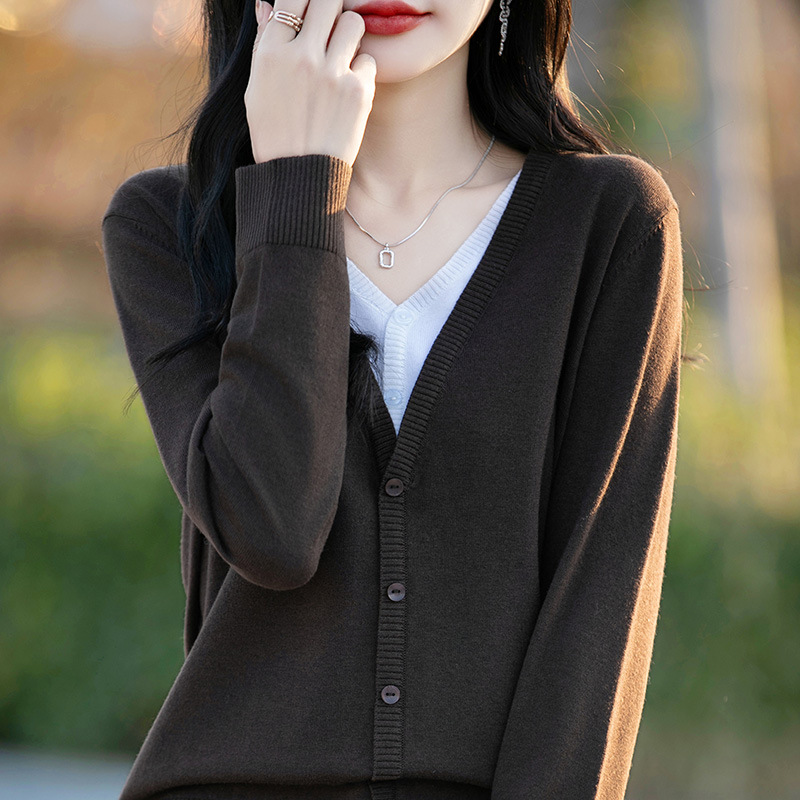 봄 새로운 V-Neck 가짜 2 조각 양모 카디건 여성의 느슨한 짧은 재킷 니트 외주 디자인 스웨터 얇은스토어 가기
