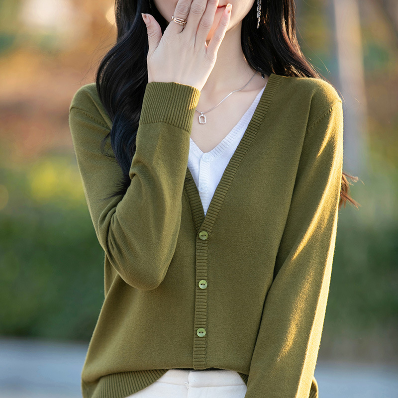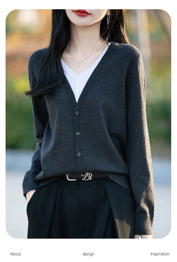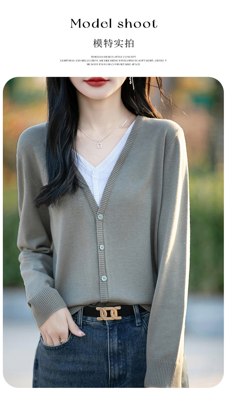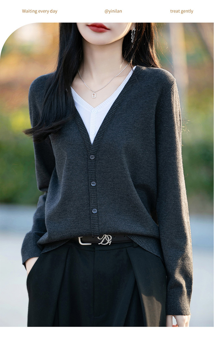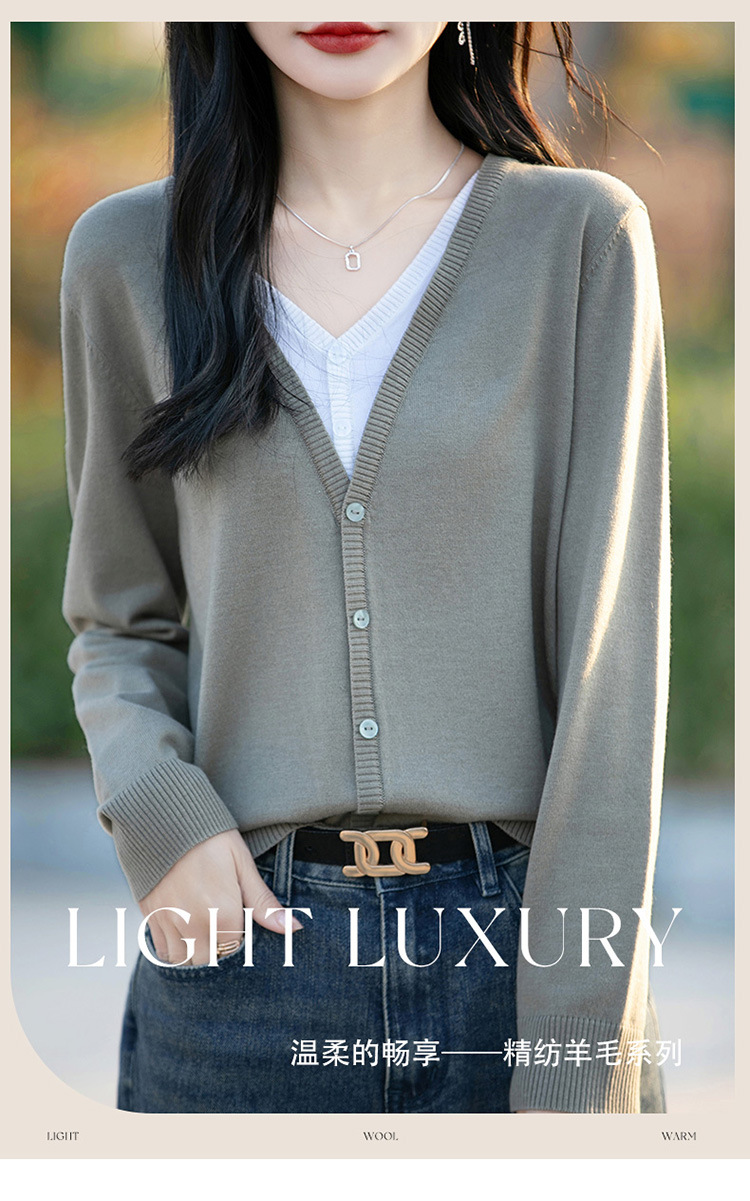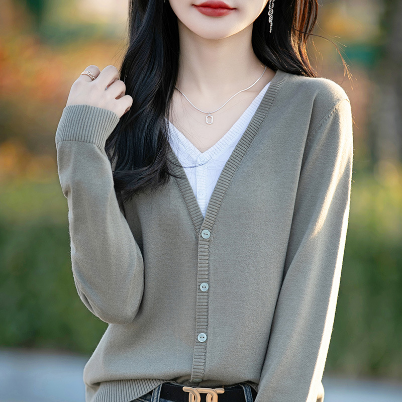 봄 새로운 V-Neck 가짜 2 조각 양모 카디건 여성의 느슨한 짧은 재킷 니트 외주 디자인 스웨터 얇은스토어 가기