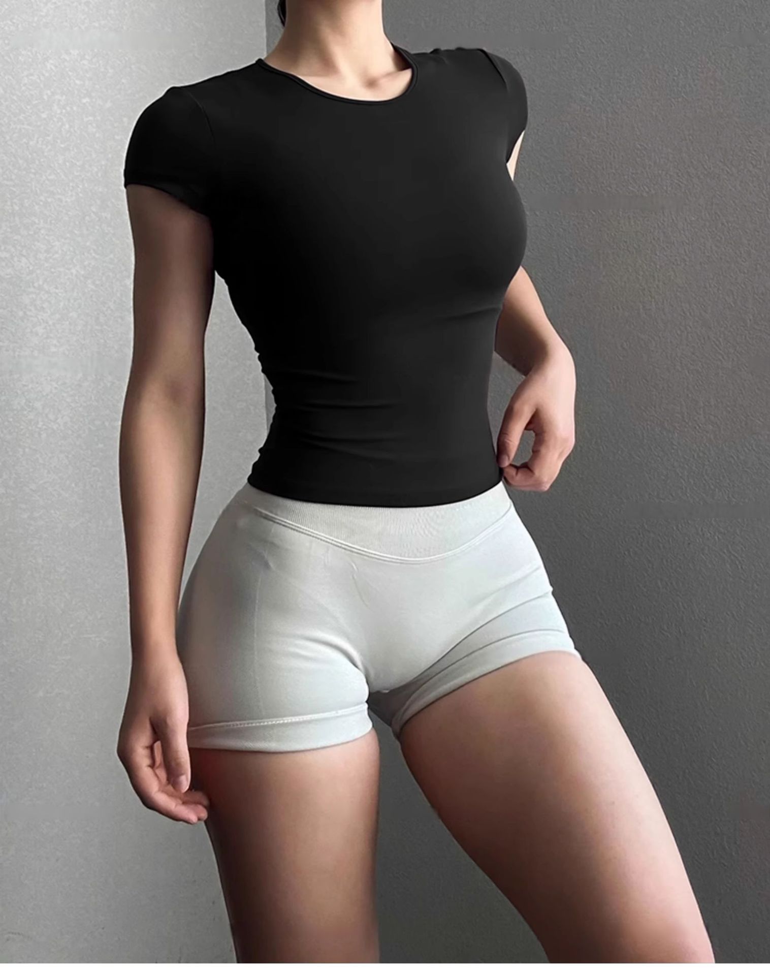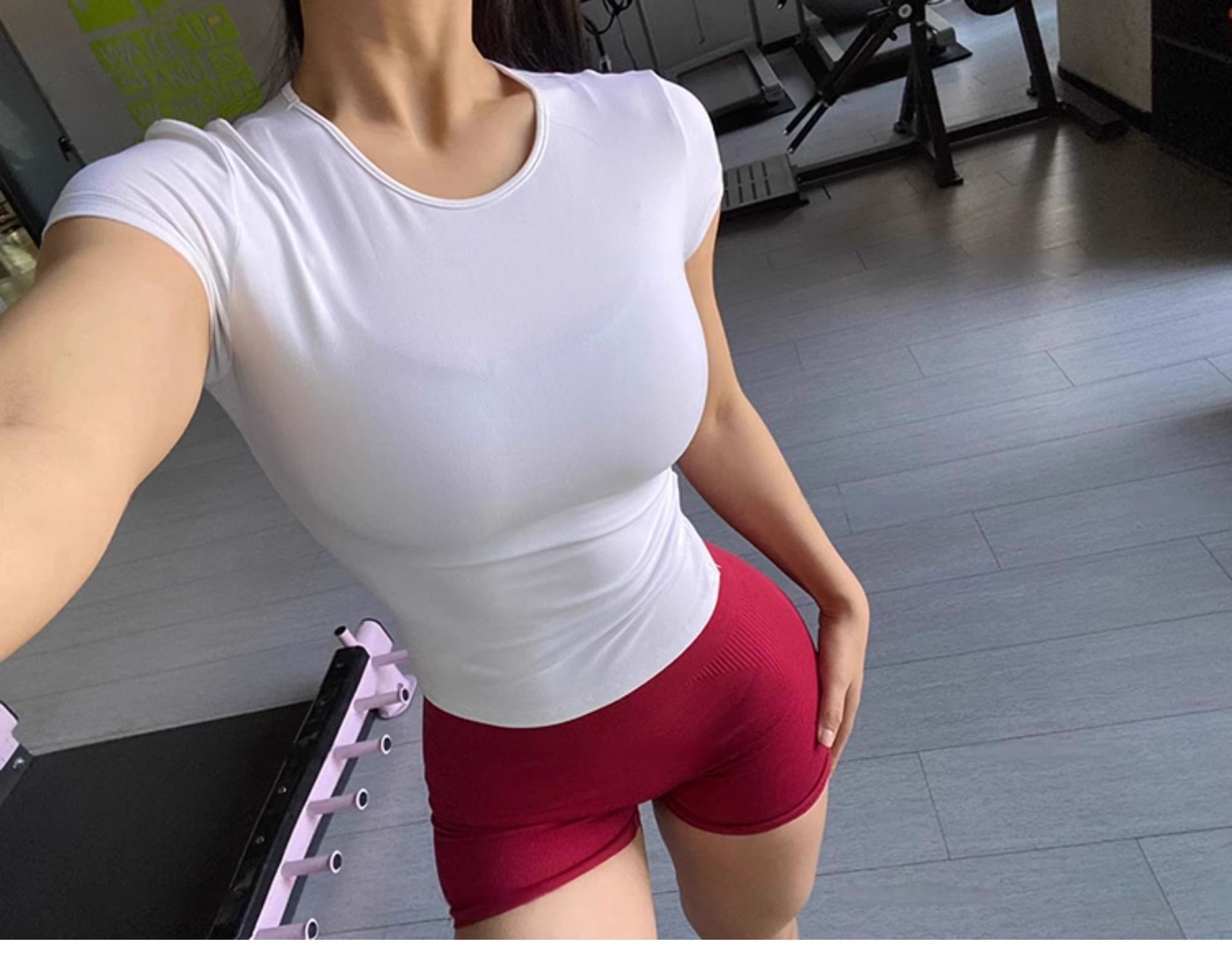 클래식 좋은 착용 요가 탑 타이트 스포츠 달리기 훈련 반팔 티셔츠 허리 슬리밍 피트니스 착용 통기성 1715스토어 가기