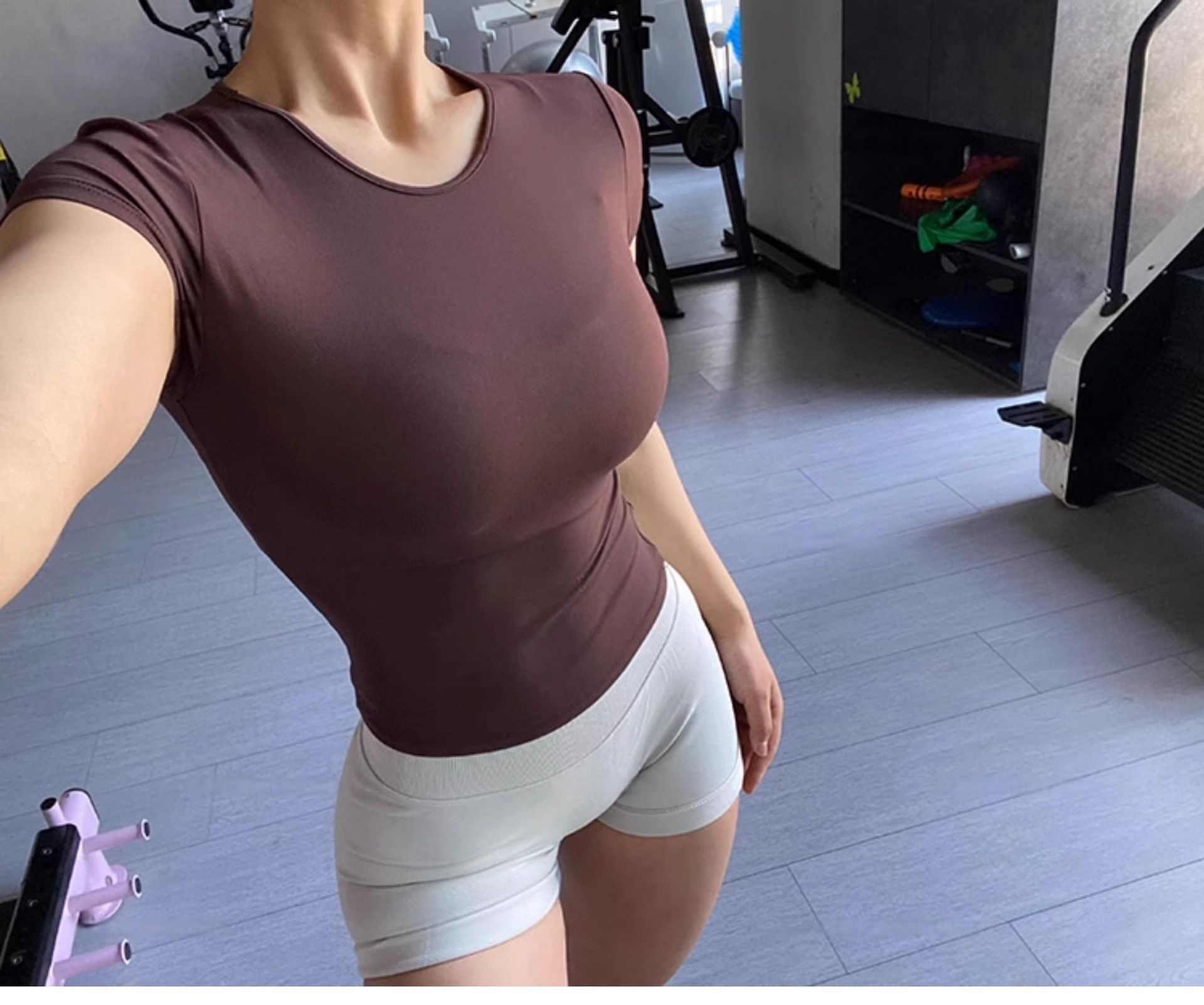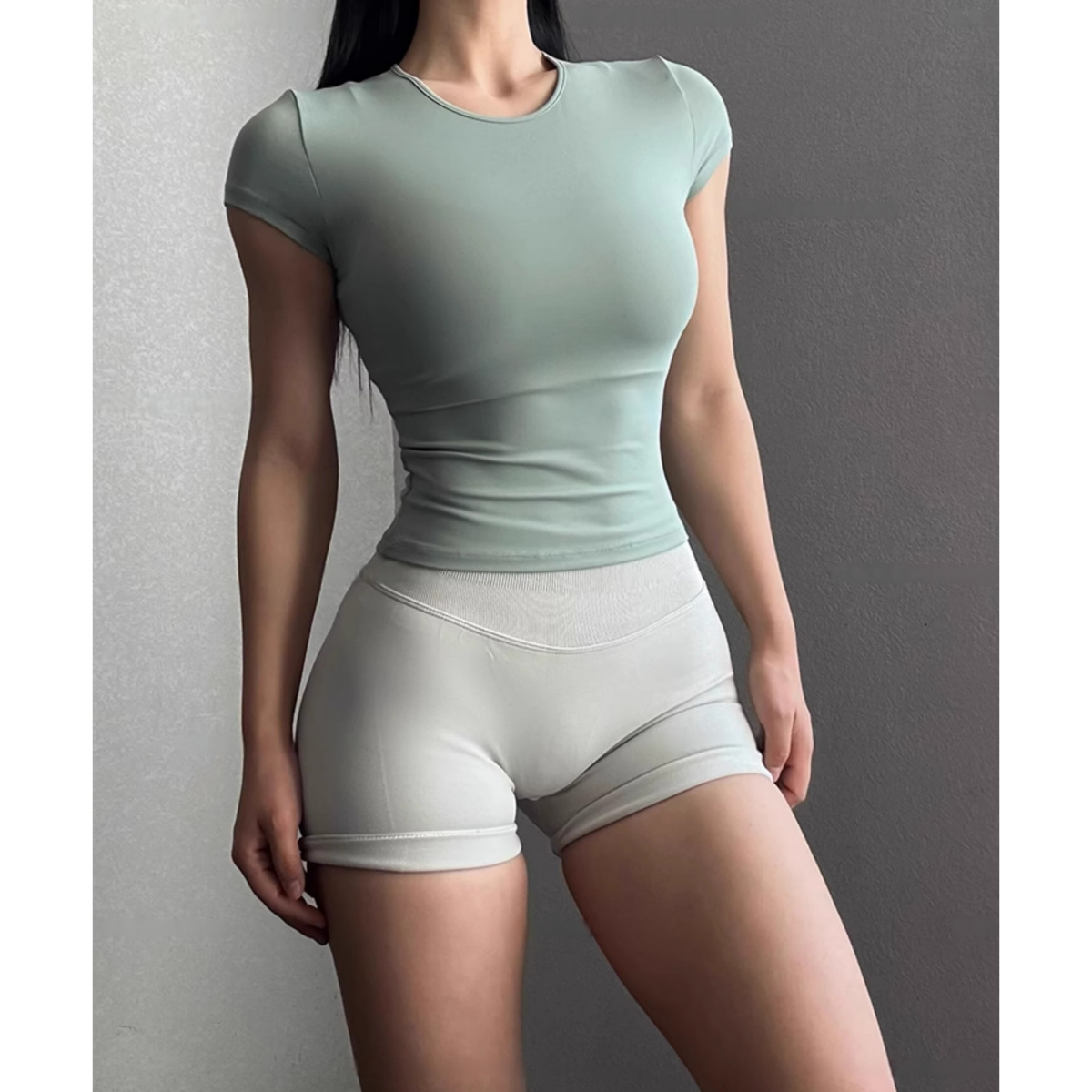 클래식 좋은 착용 요가 탑 타이트 스포츠 달리기 훈련 반팔 티셔츠 허리 슬리밍 피트니스 착용 통기성 1715