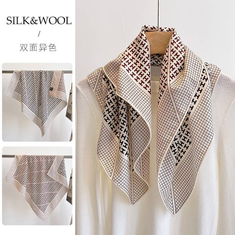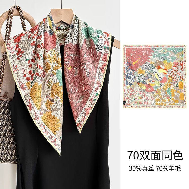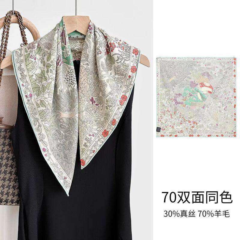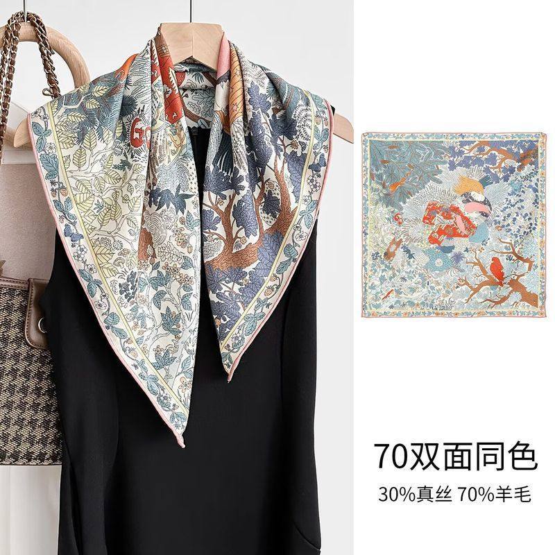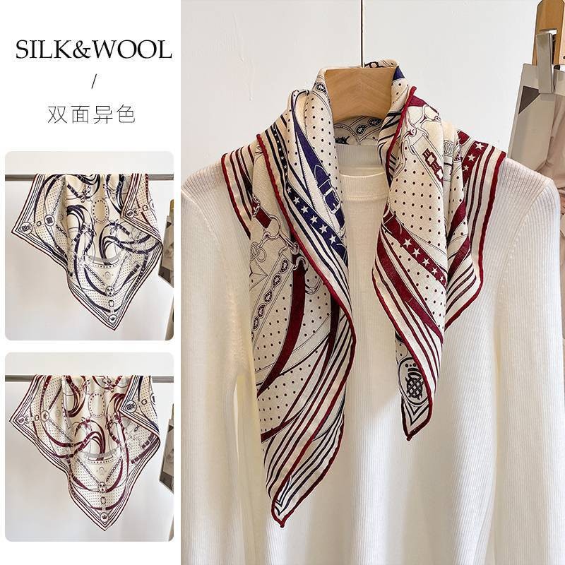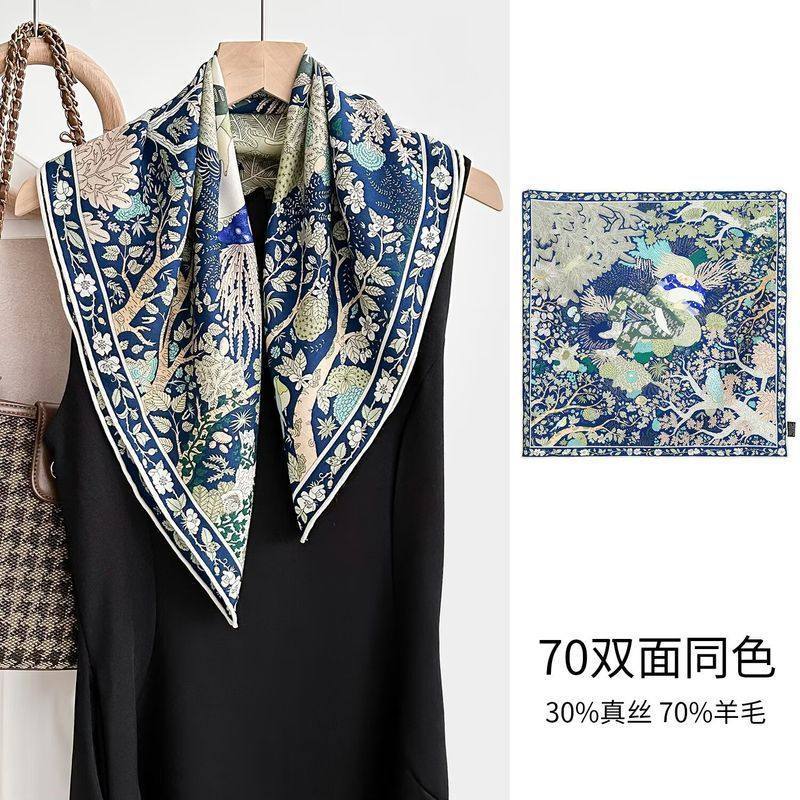 "마스터 클래식 아트" 실크와 울 스카프 여성 가을 겨울 다기능 실크 울 스퀘어 스카프 목도리스토어 가기