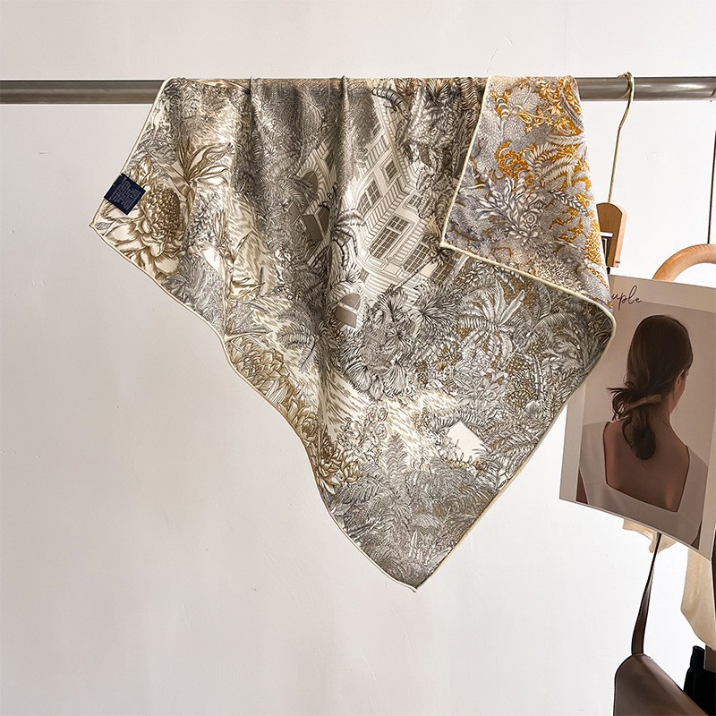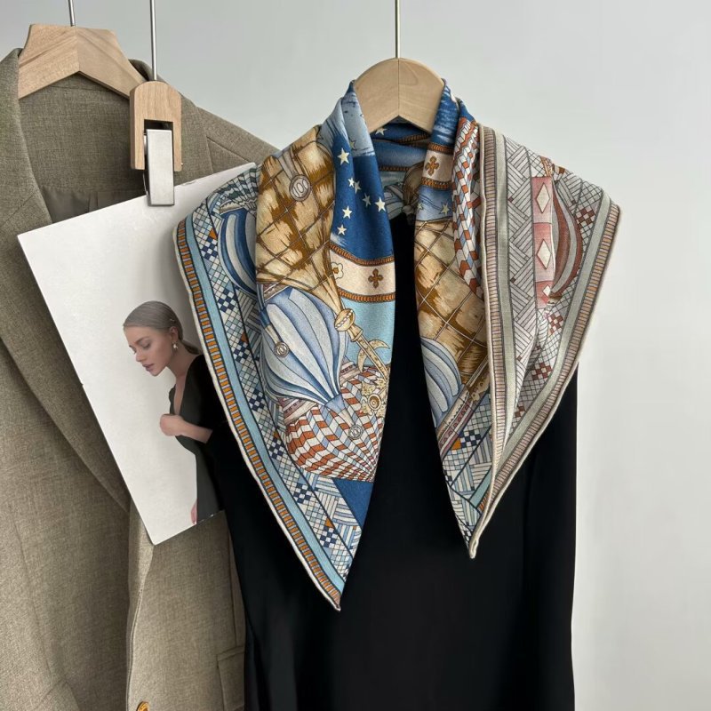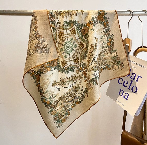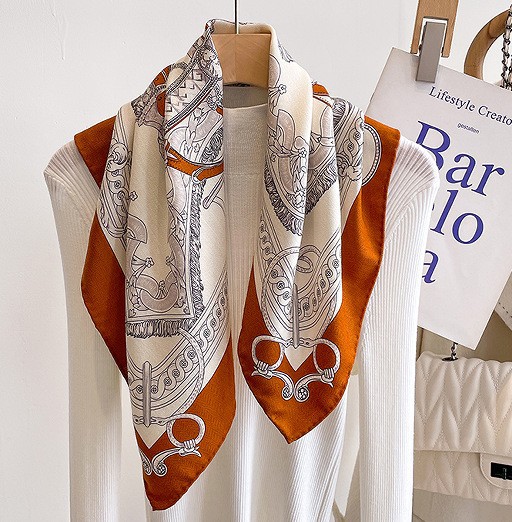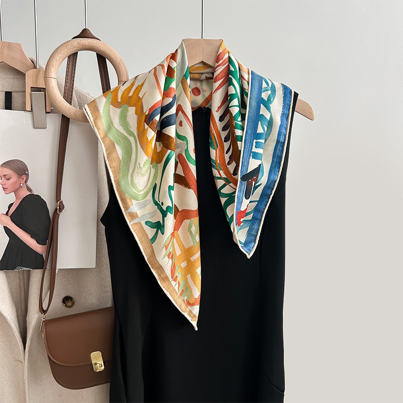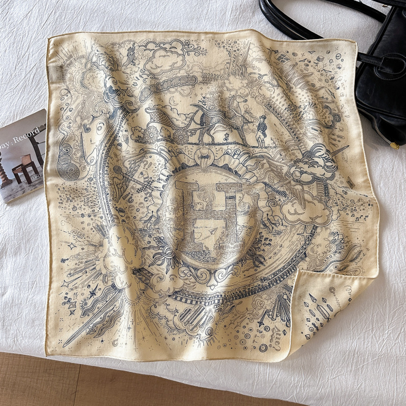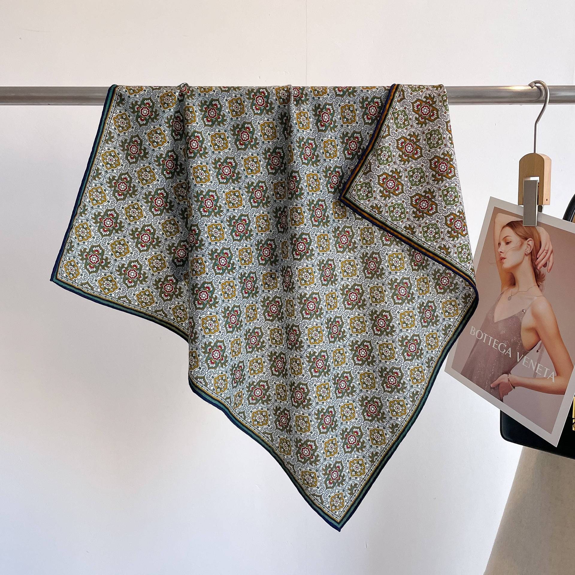"마스터 클래식 아트" 실크와 울 스카프 여성 가을 겨울 다기능 실크 울 스퀘어 스카프 목도리스토어 가기