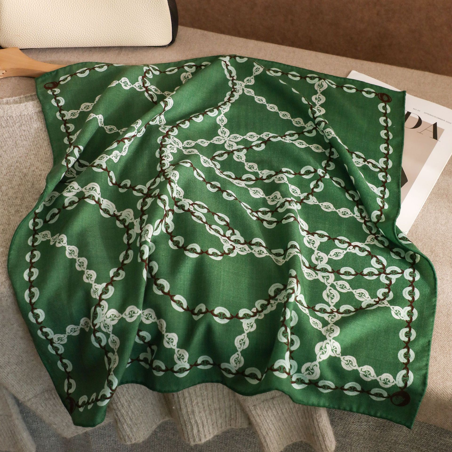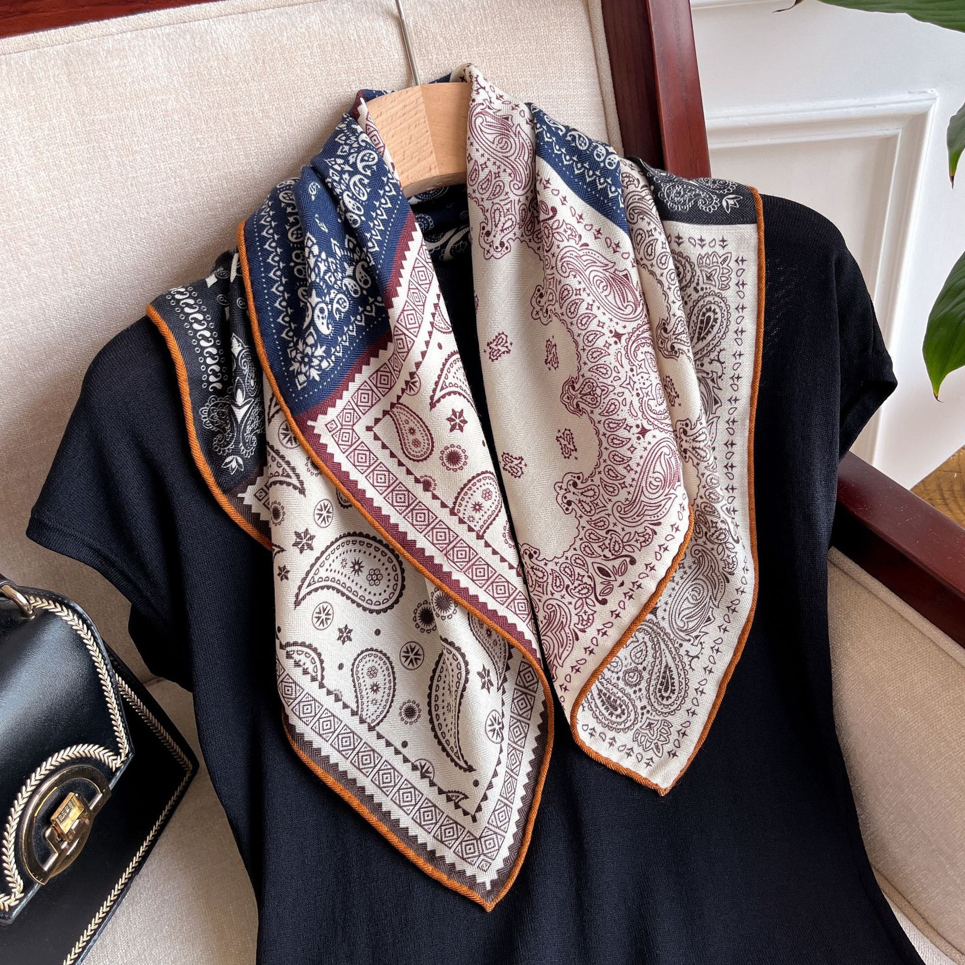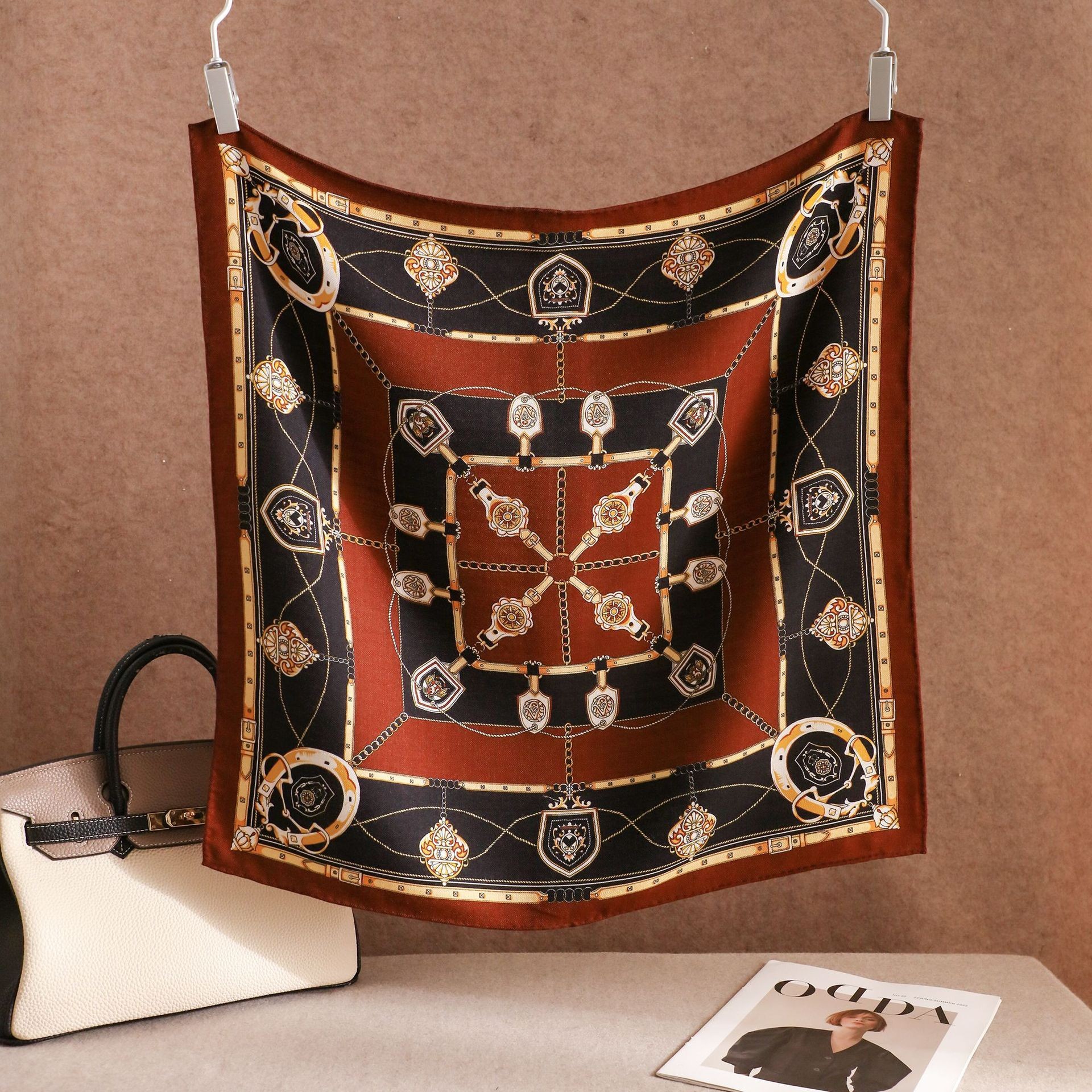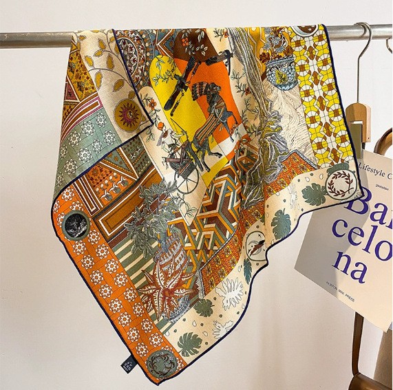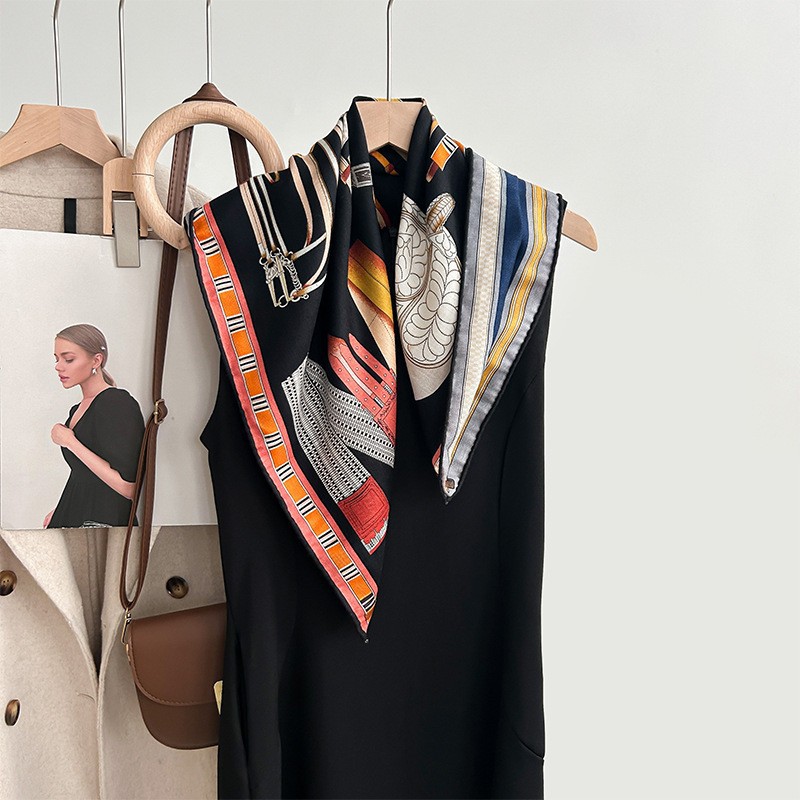 "마스터 클래식 아트" 실크와 울 스카프 여성 가을 겨울 다기능 실크 울 스퀘어 스카프 목도리스토어 가기
