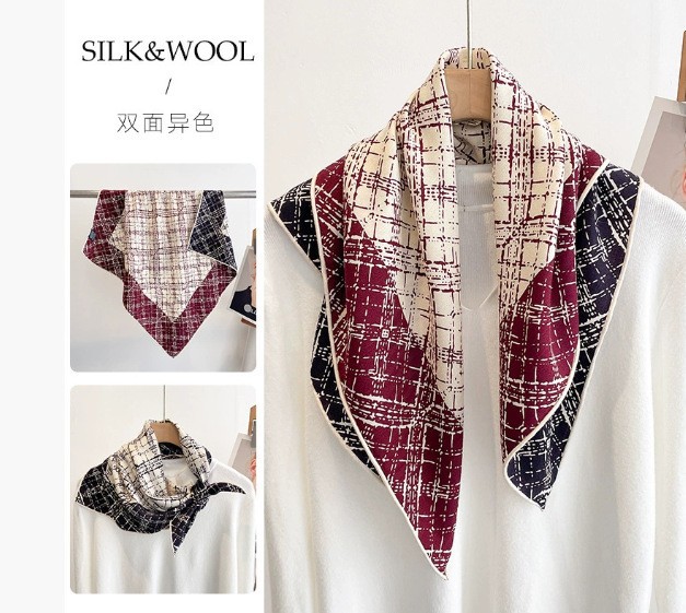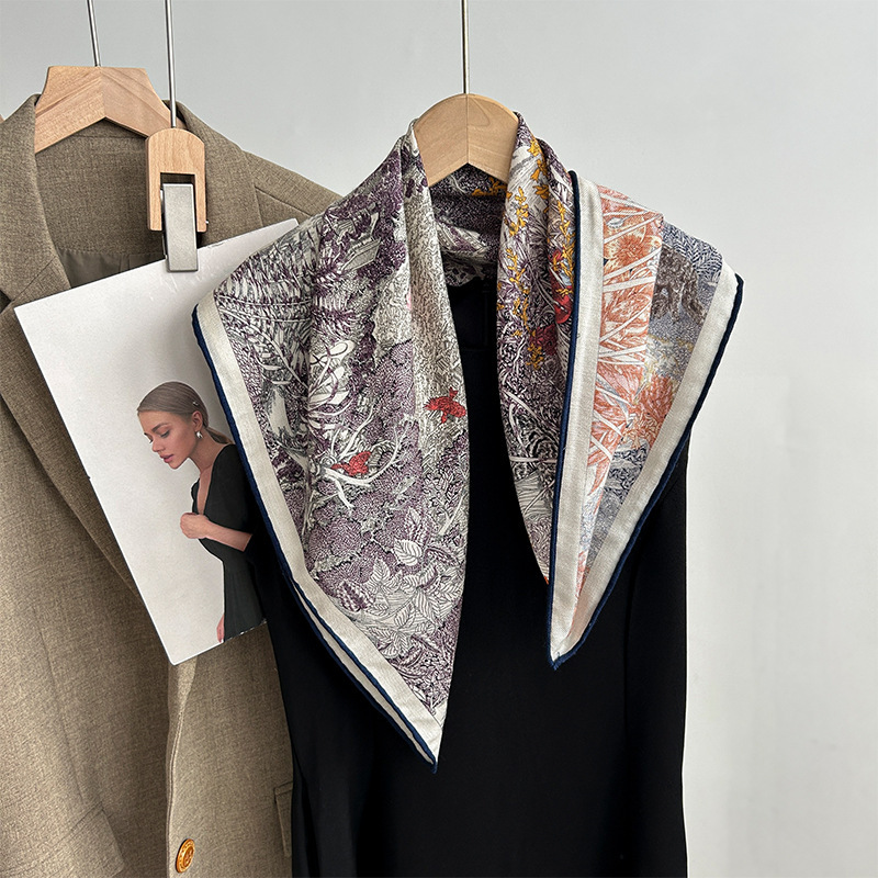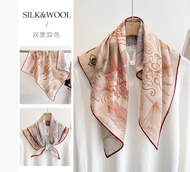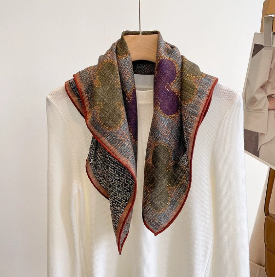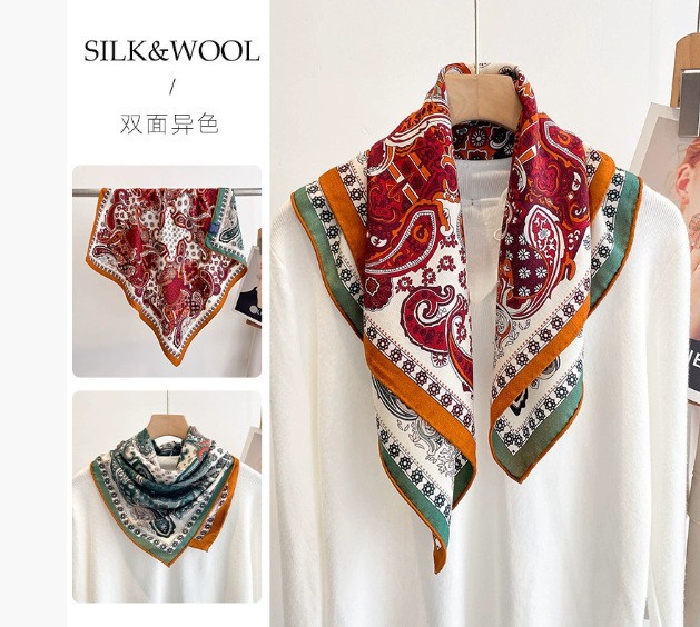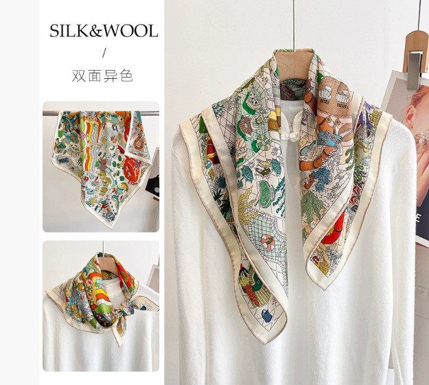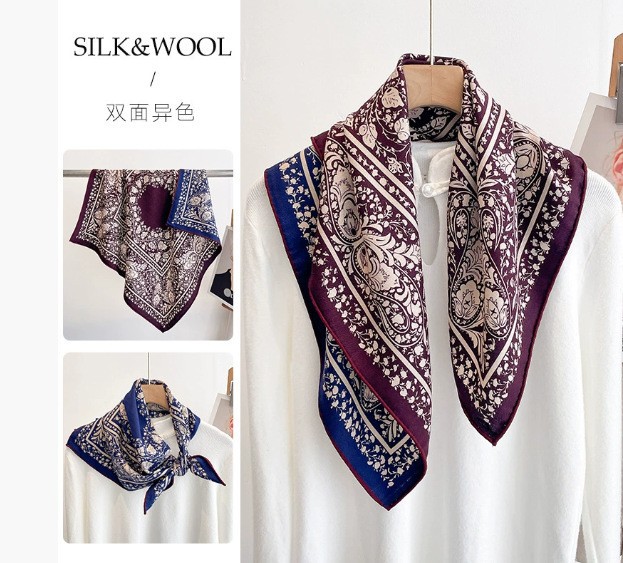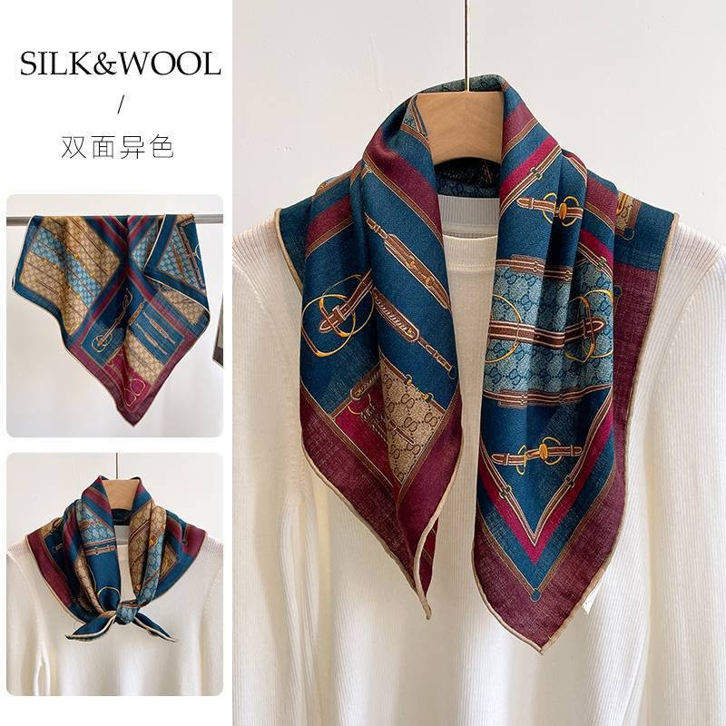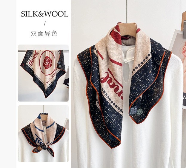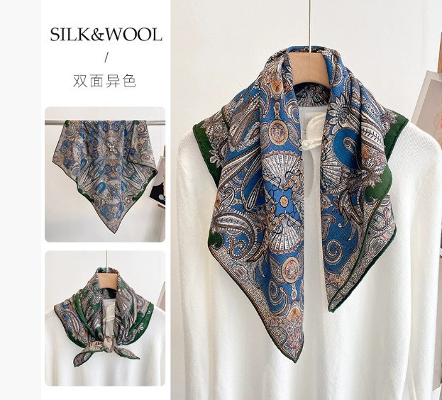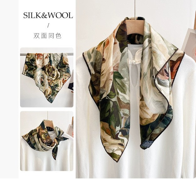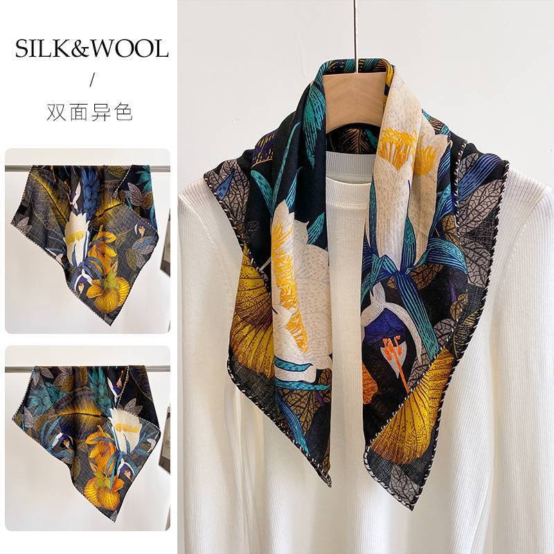 "마스터 클래식 아트" 실크와 울 스카프 여성 가을 겨울 다기능 실크 울 스퀘어 스카프 목도리