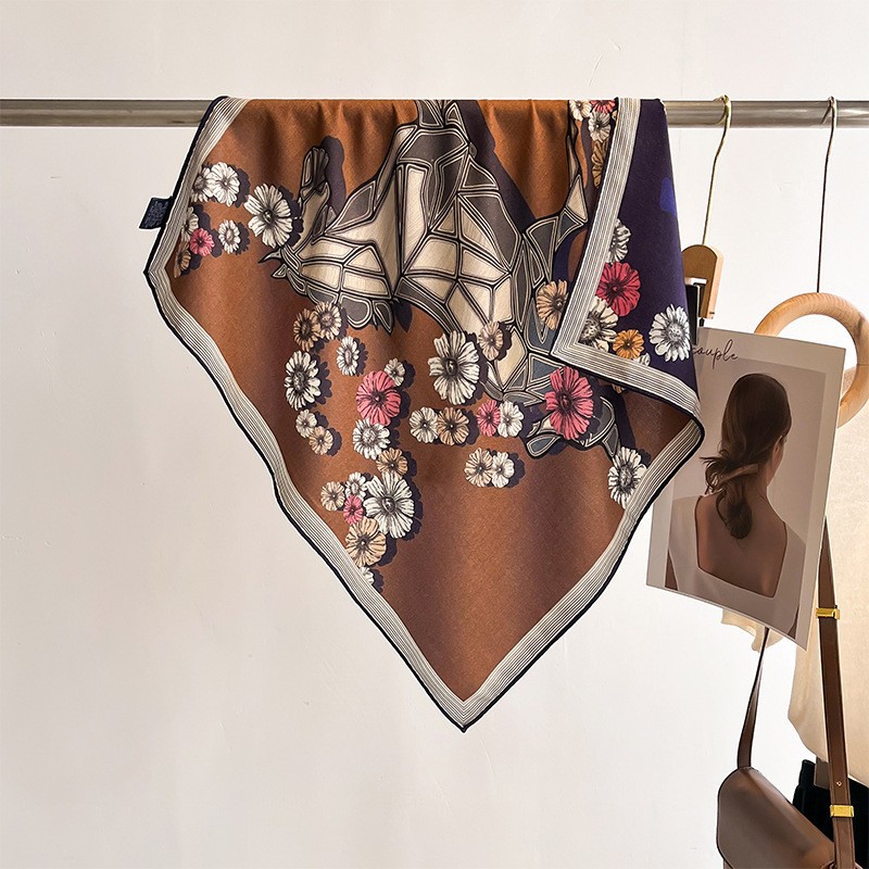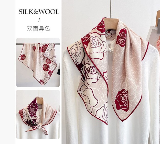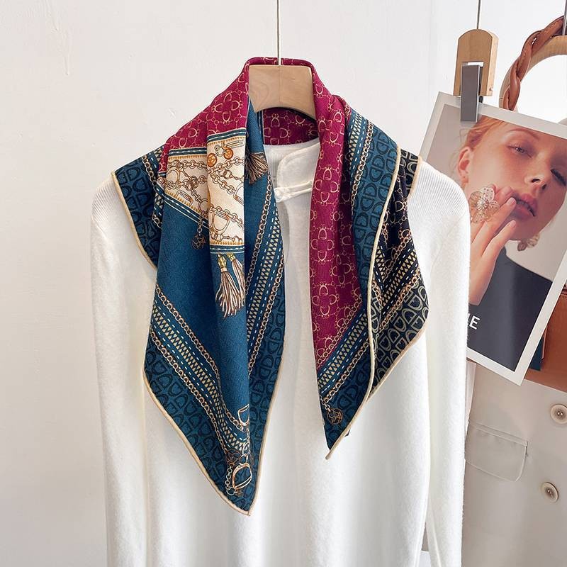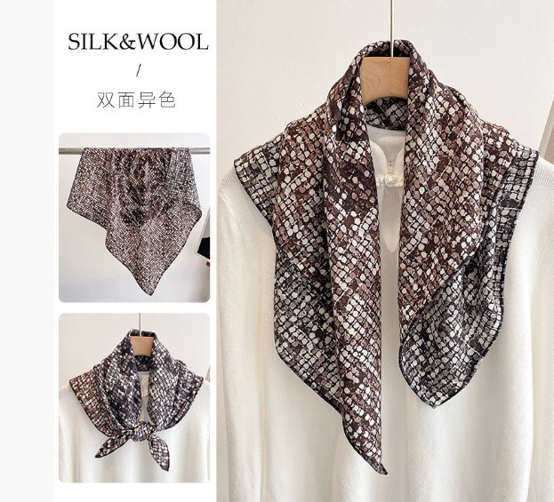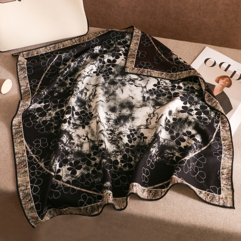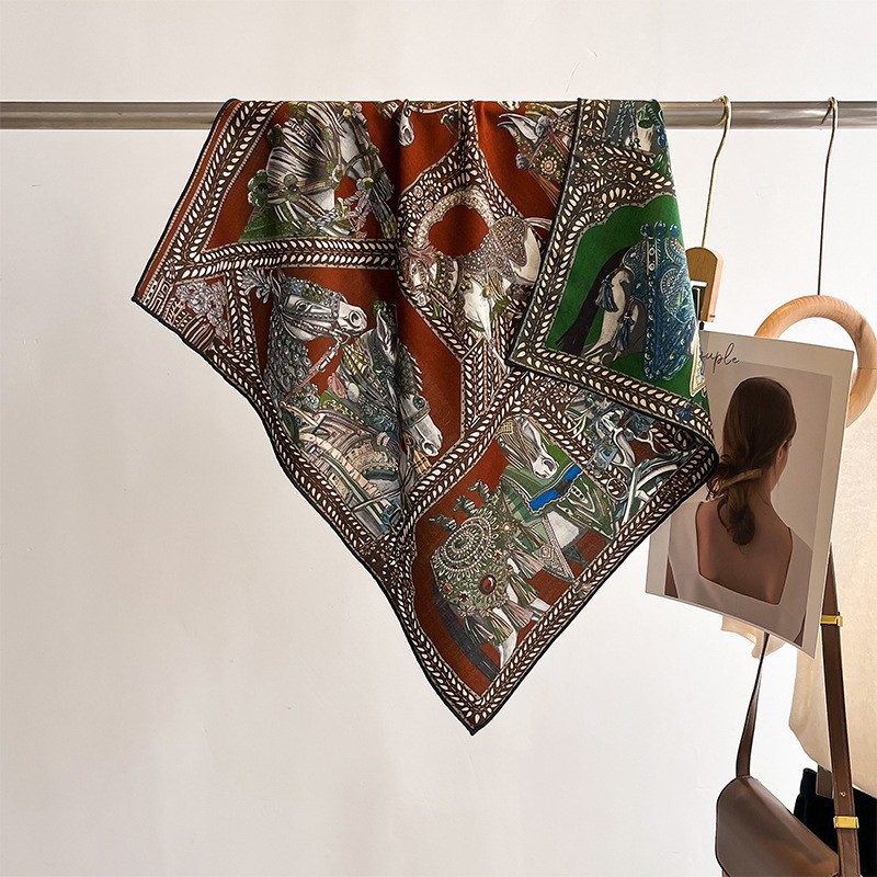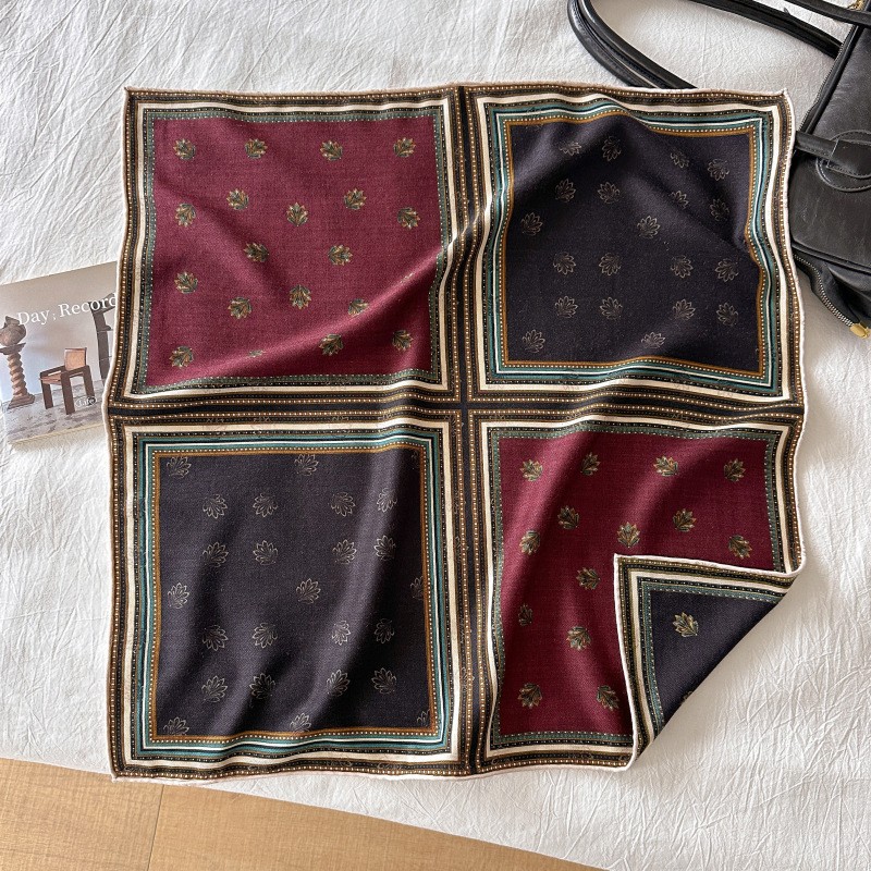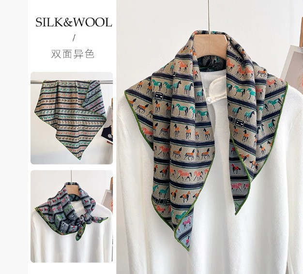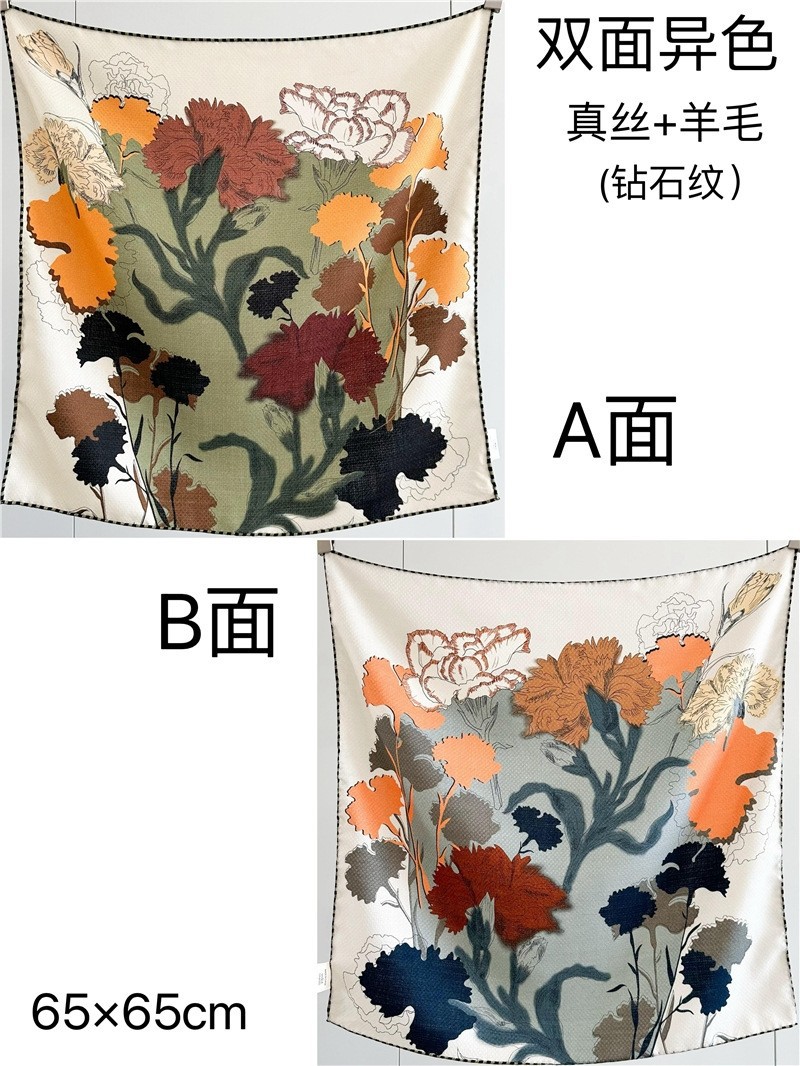 "마스터 클래식 아트" 실크와 울 스카프 여성 가을 겨울 다기능 실크 울 스퀘어 스카프 목도리