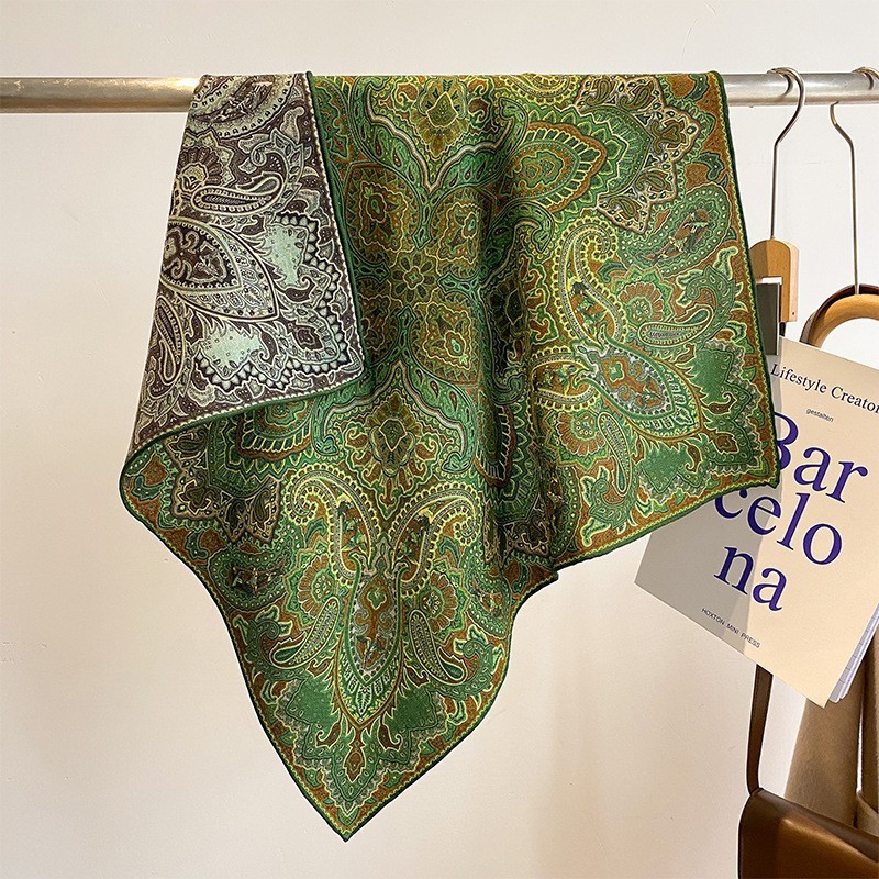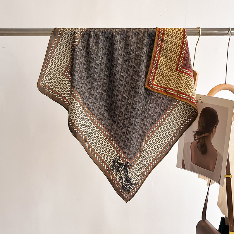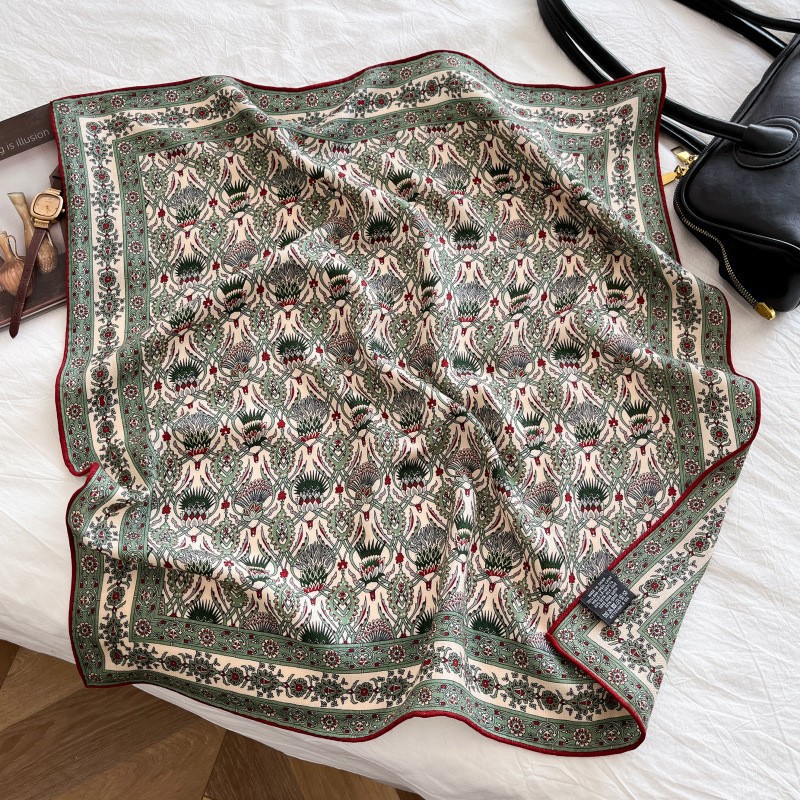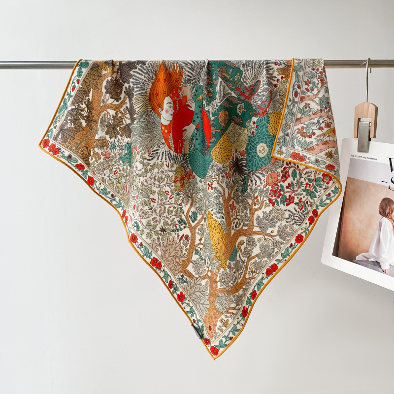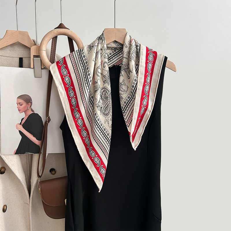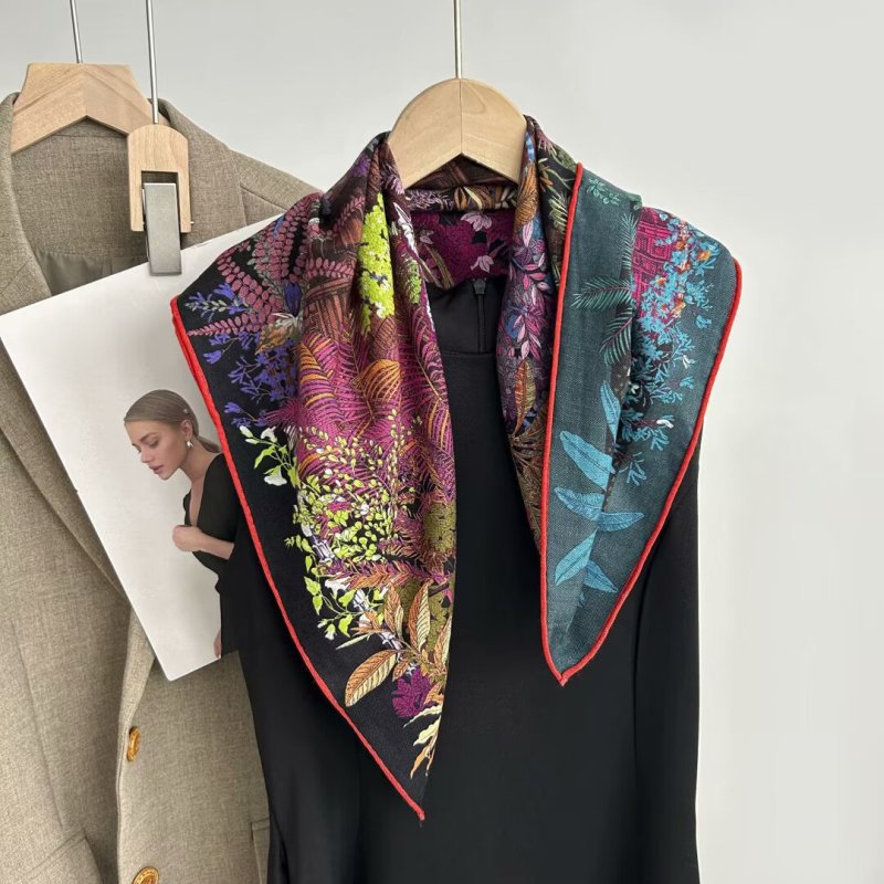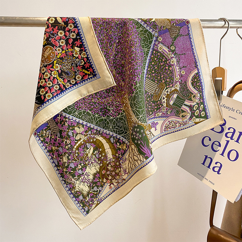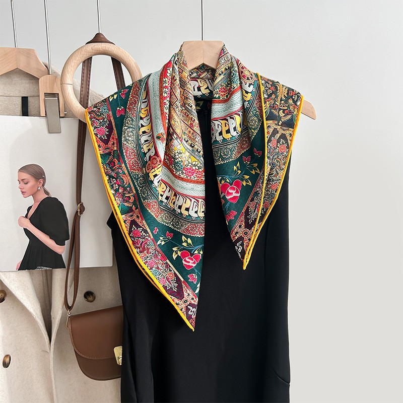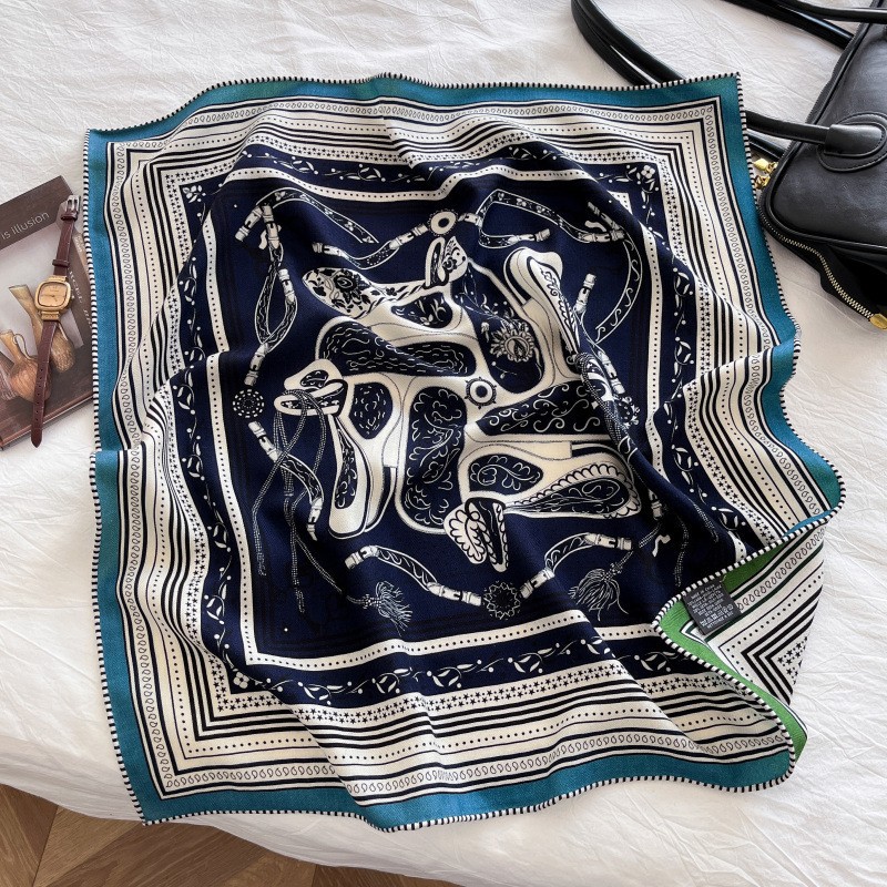 "마스터 클래식 아트" 실크와 울 스카프 여성 가을 겨울 다기능 실크 울 스퀘어 스카프 목도리