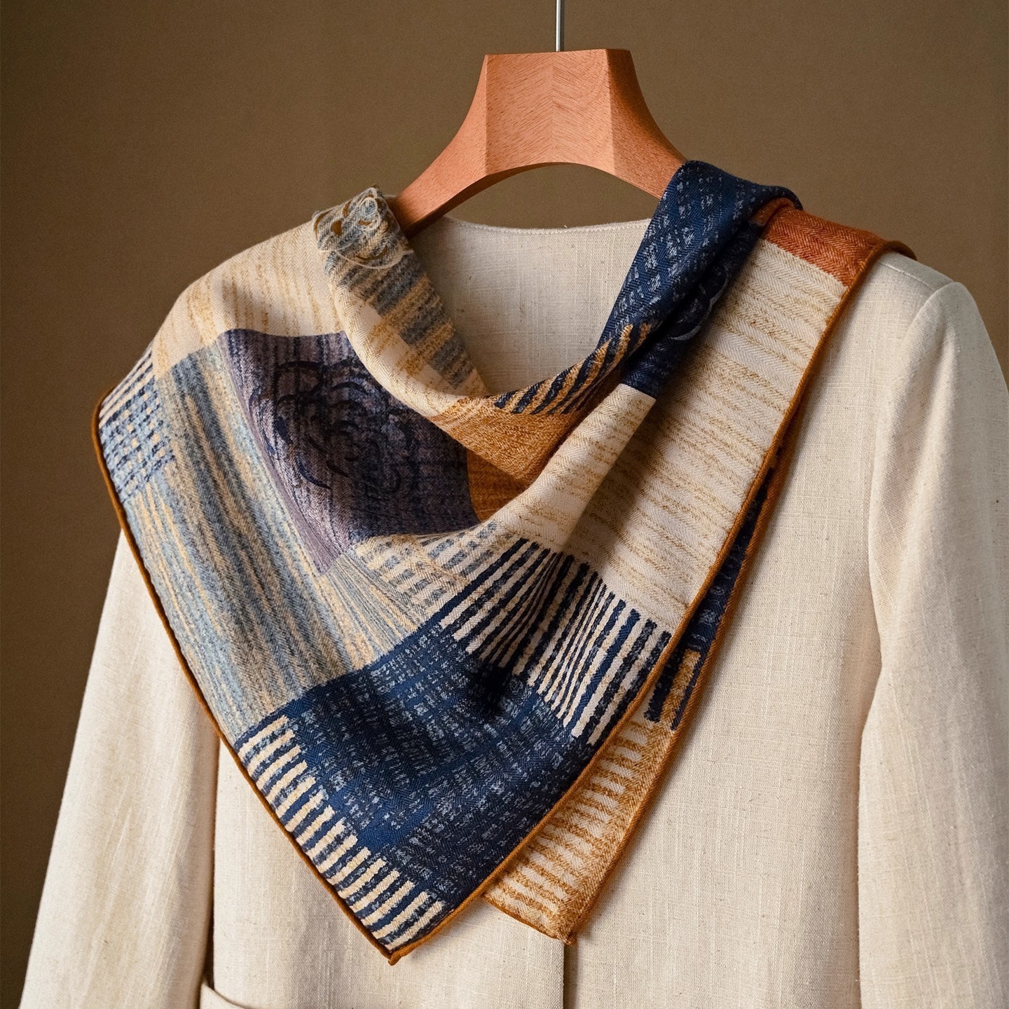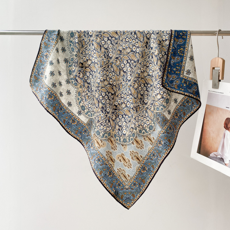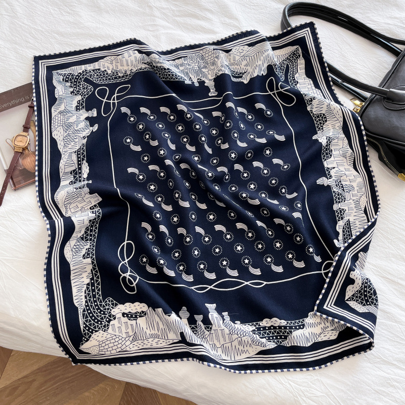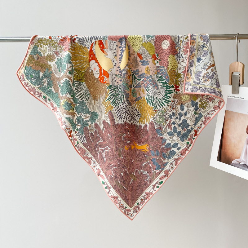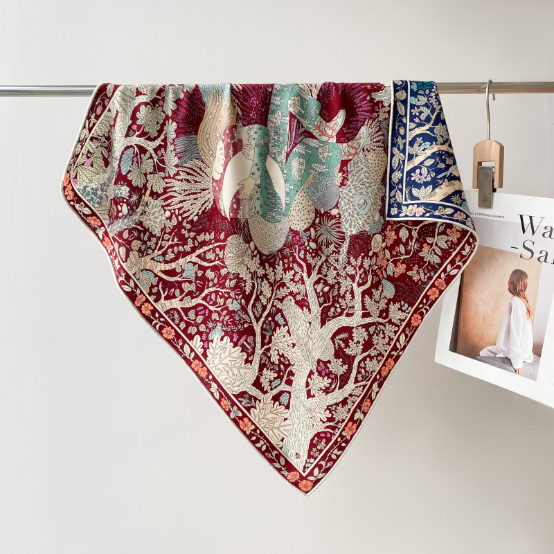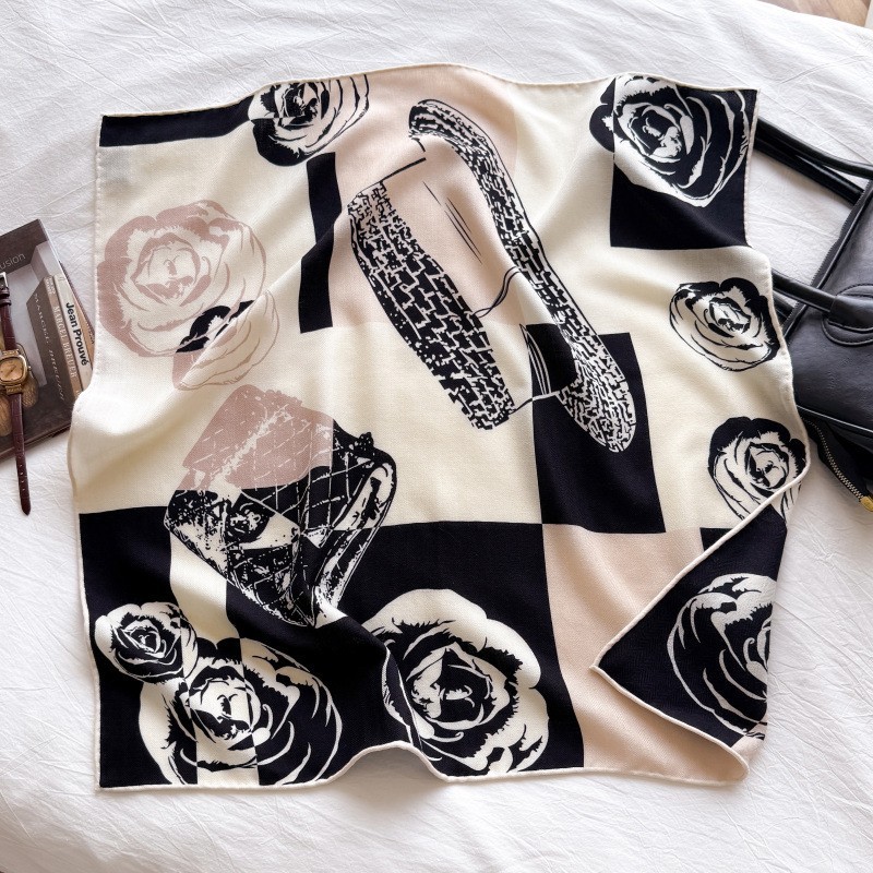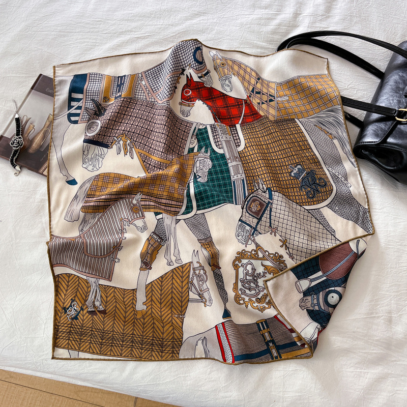 "마스터 클래식 아트" 실크와 울 스카프 여성 가을 겨울 다기능 실크 울 스퀘어 스카프 목도리