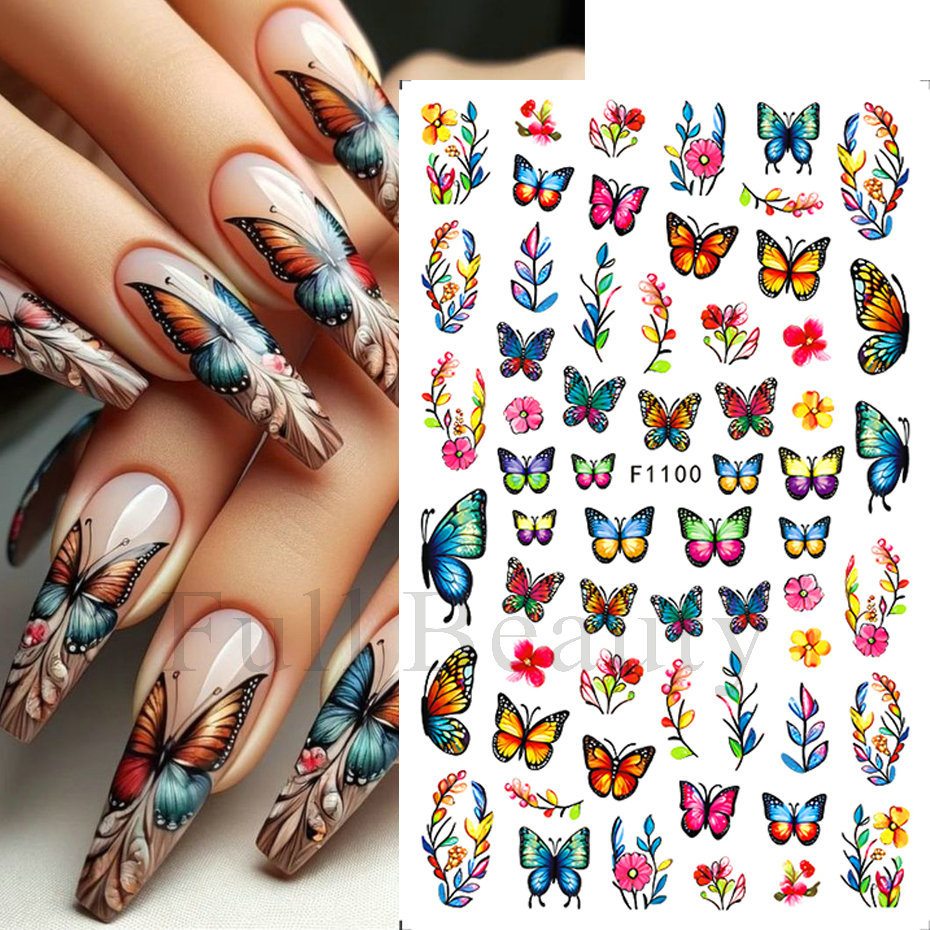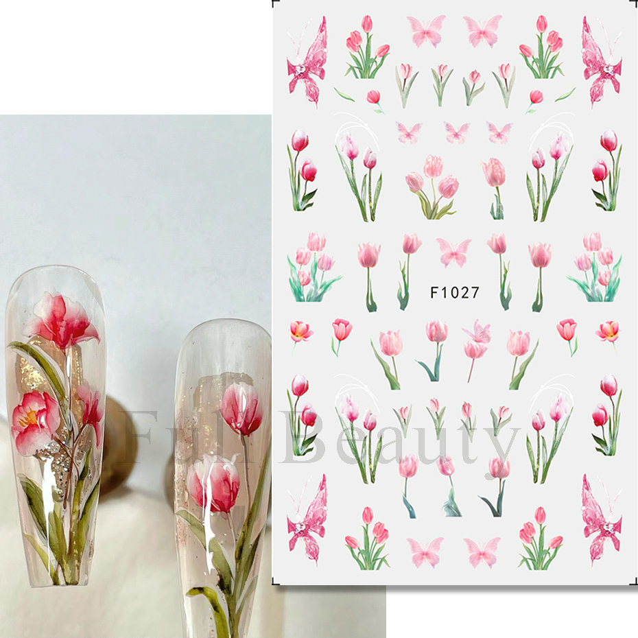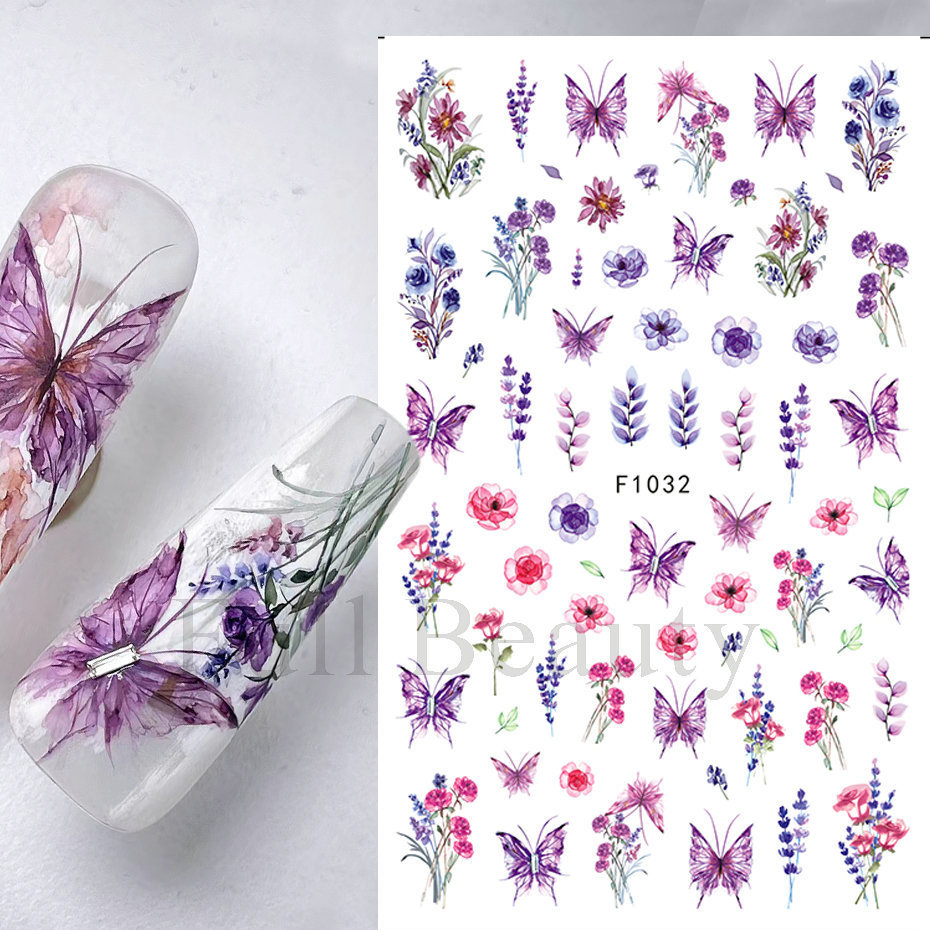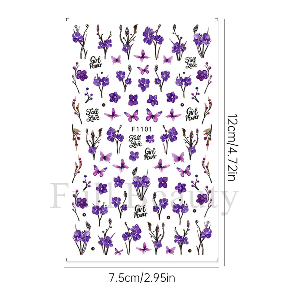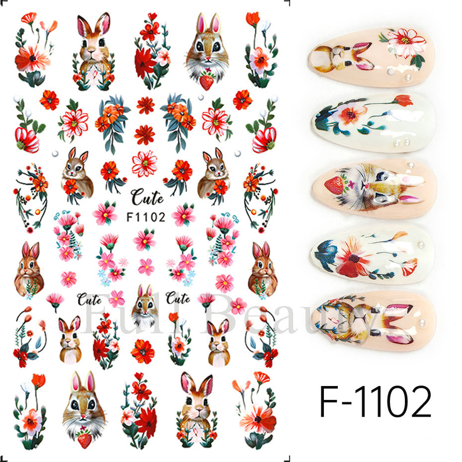 국경 간 새로운 네일 아트 스티커 Ins 봄 색 꽃 나비 토끼 만화 접착 네일 스티커