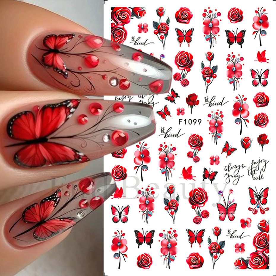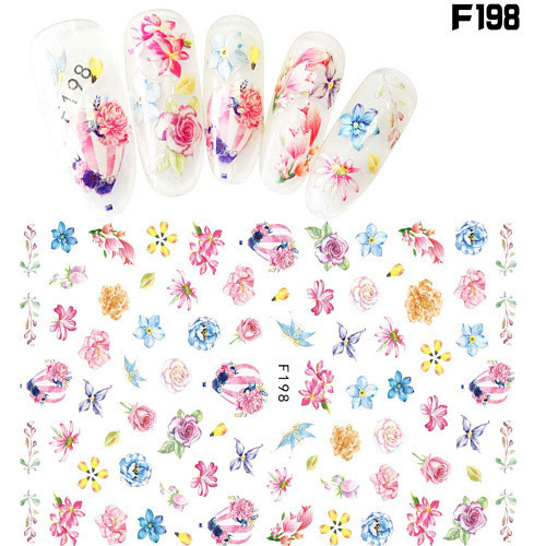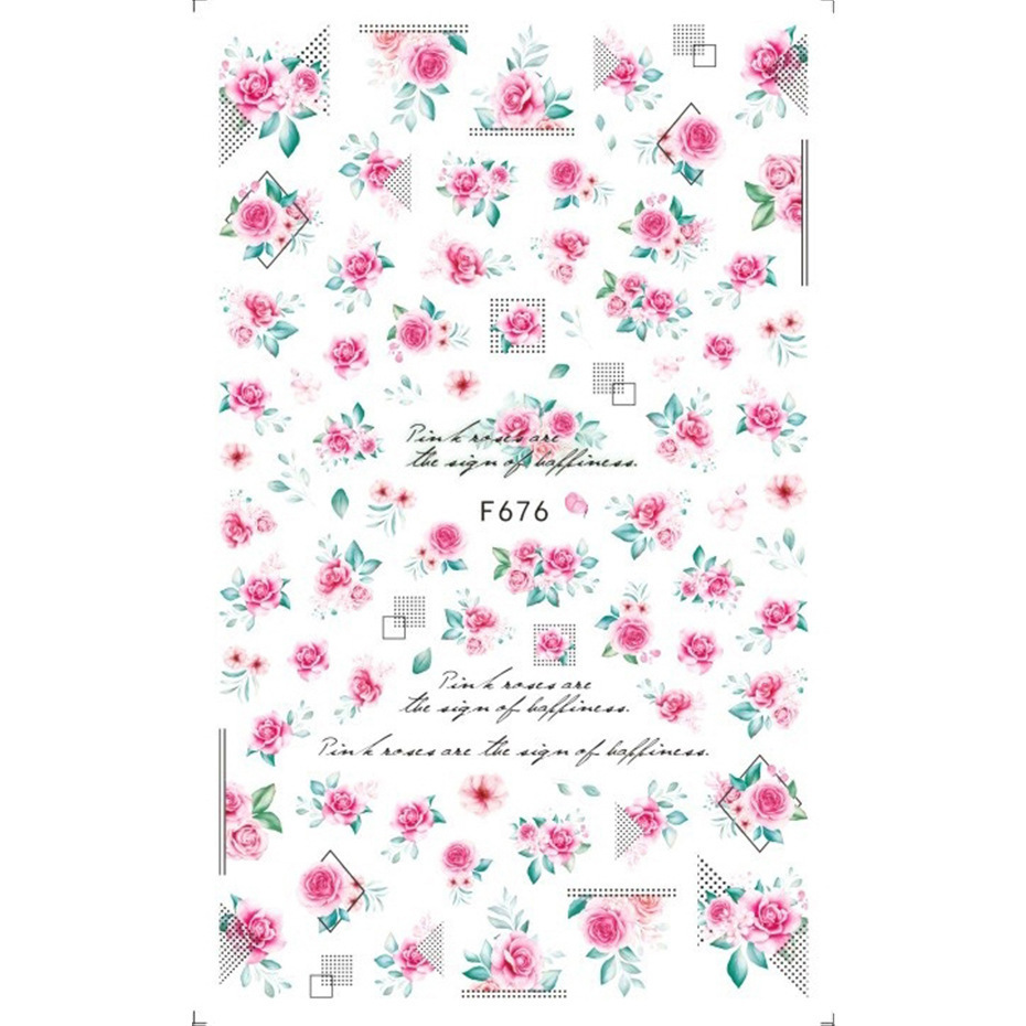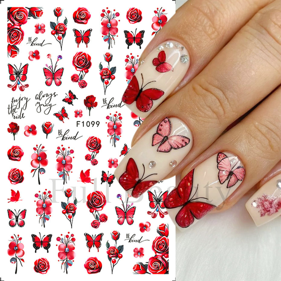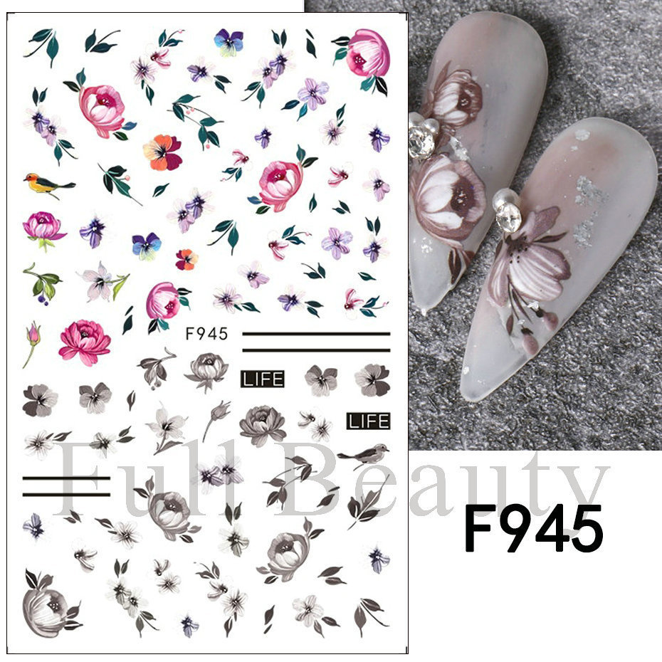 국경 간 새로운 네일 아트 스티커 Ins 봄 색 꽃 나비 토끼 만화 접착 네일 스티커