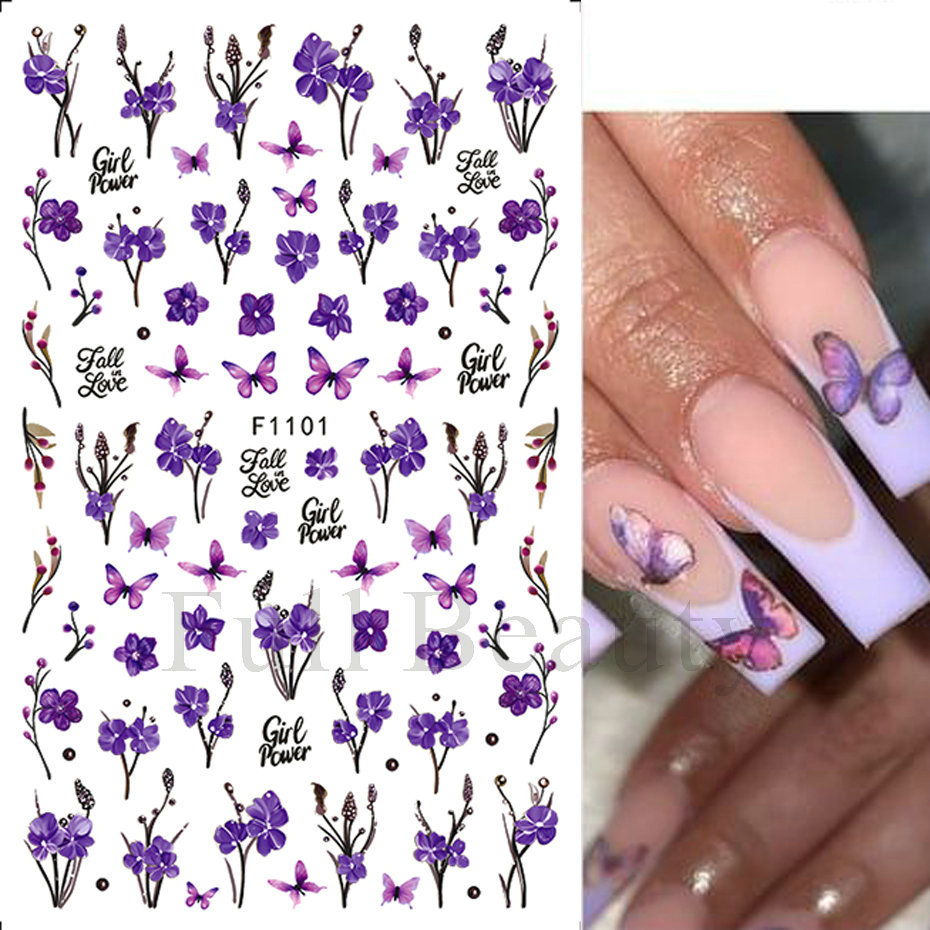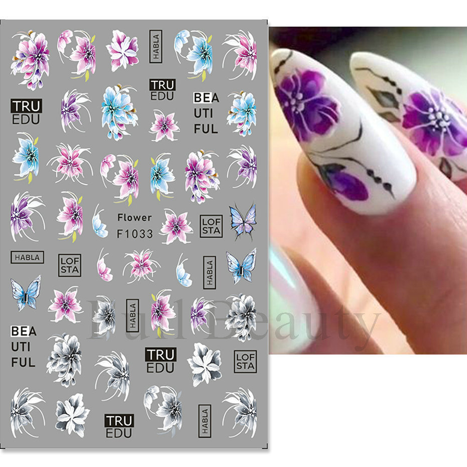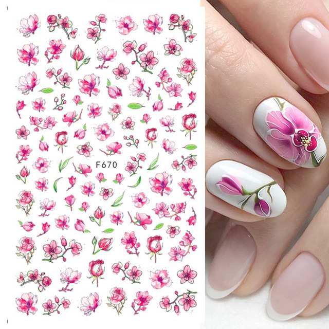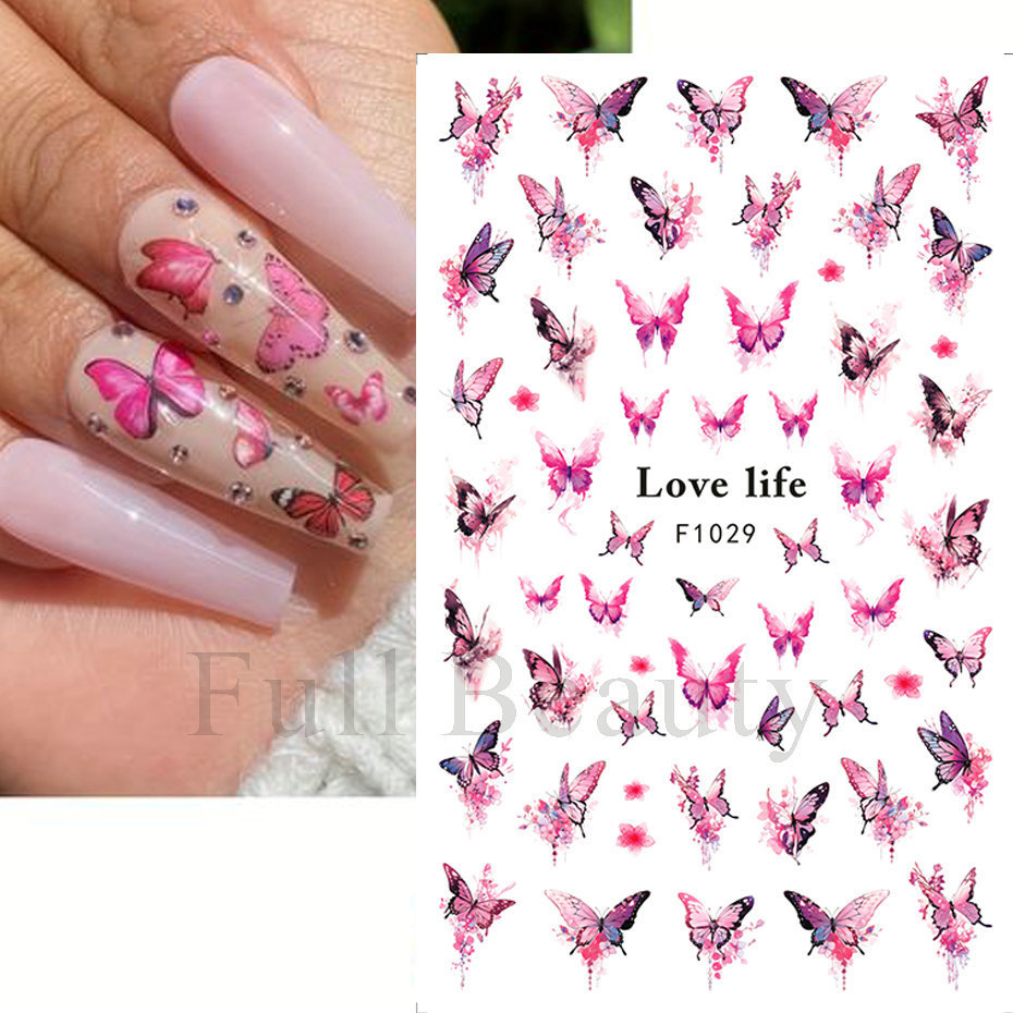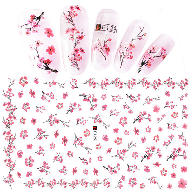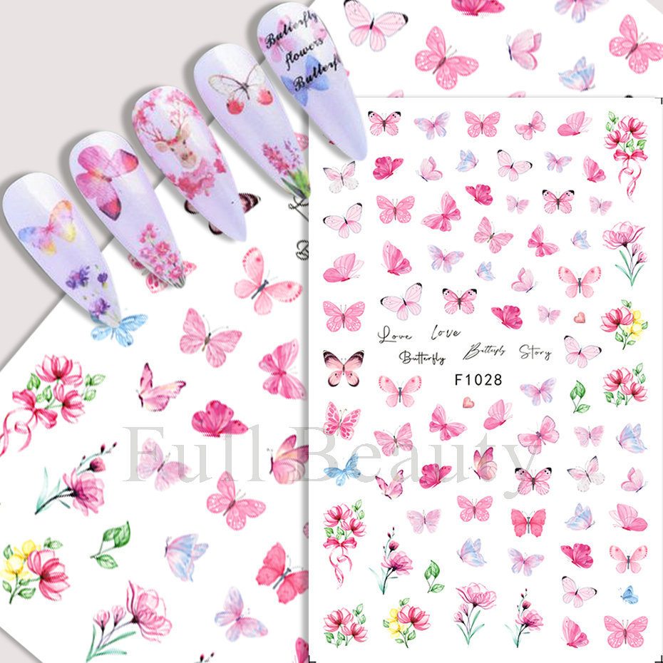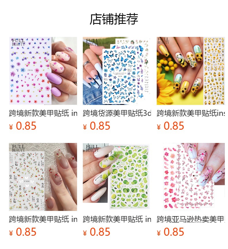 국경 간 새로운 네일 아트 스티커 Ins 봄 색 꽃 나비 토끼 만화 접착 네일 스티커스토어 가기