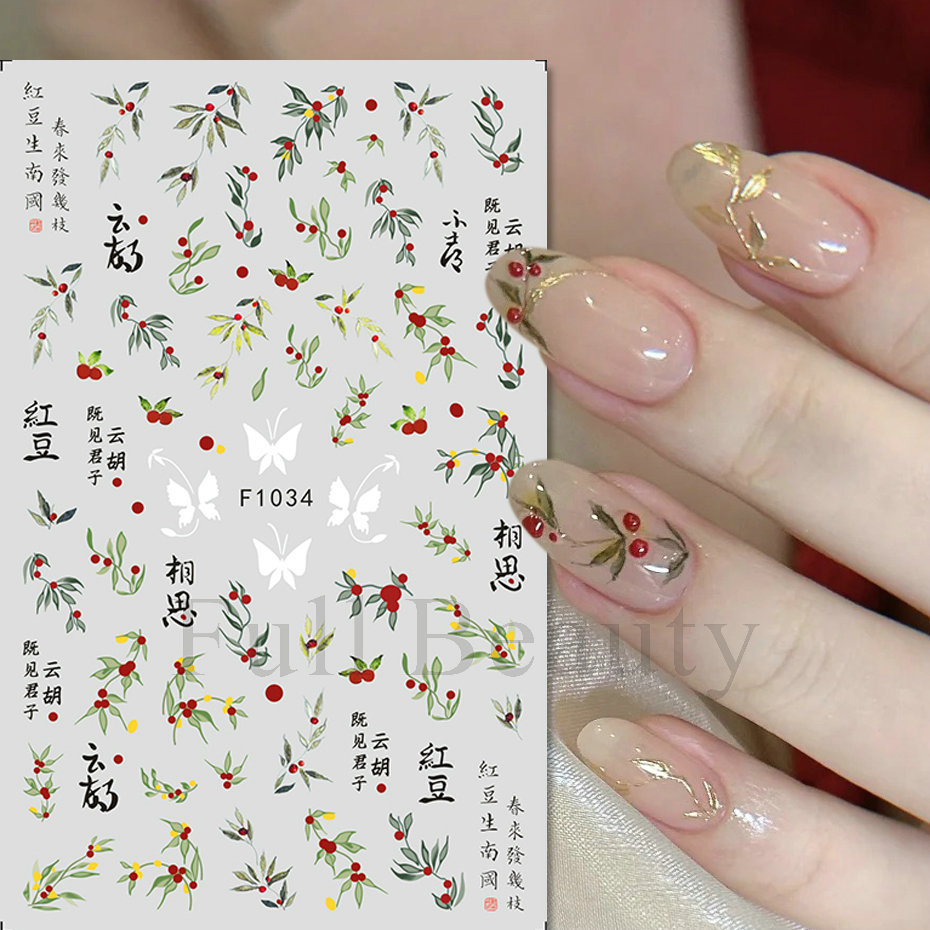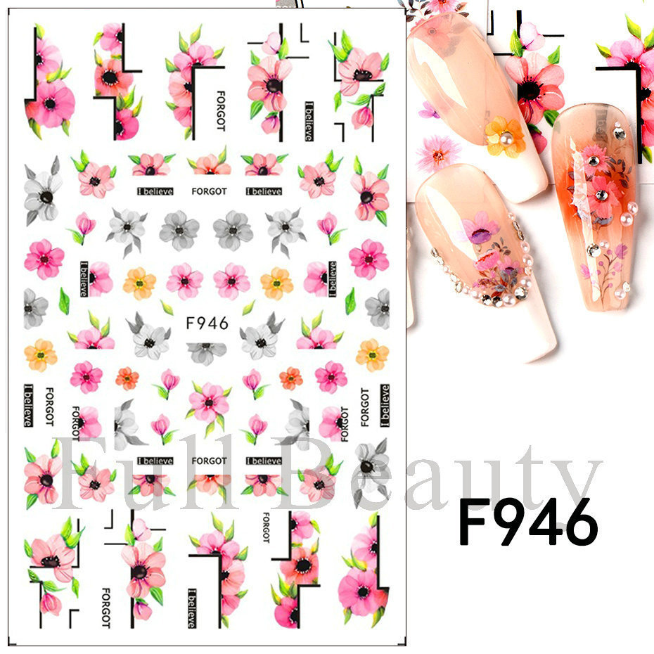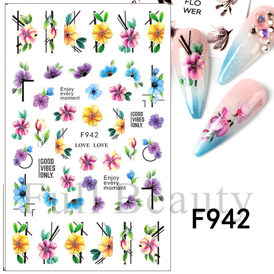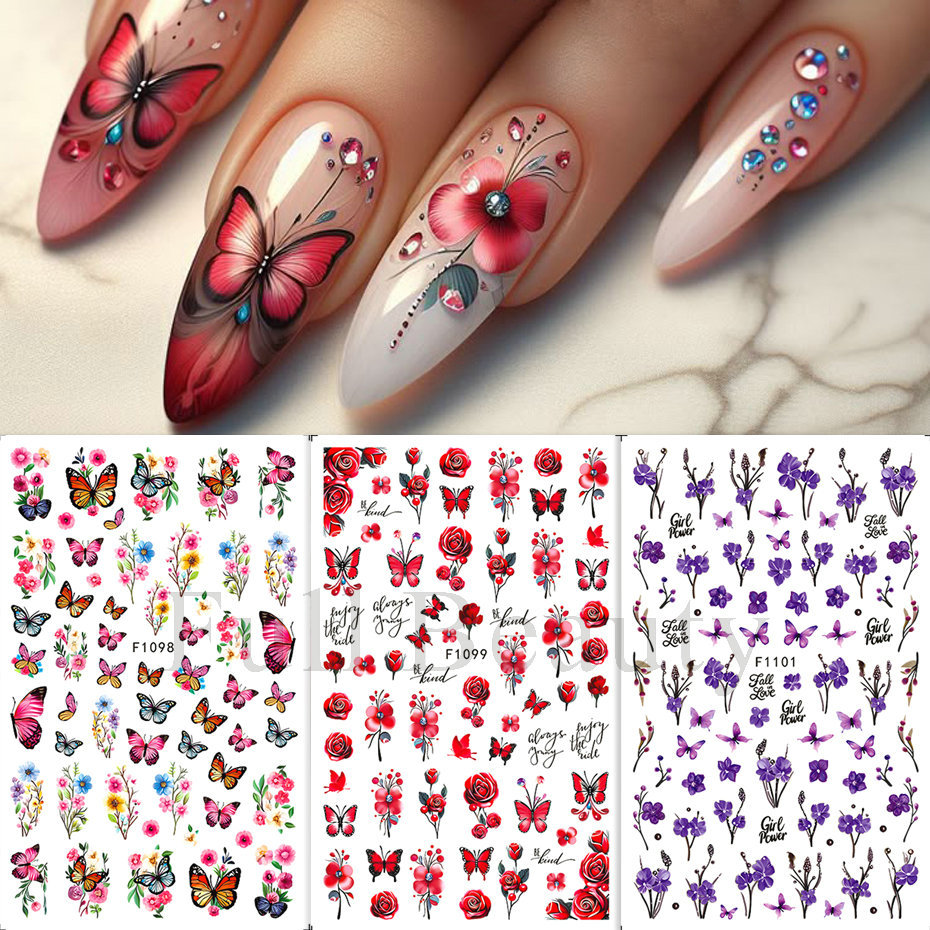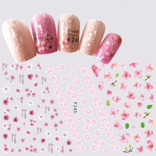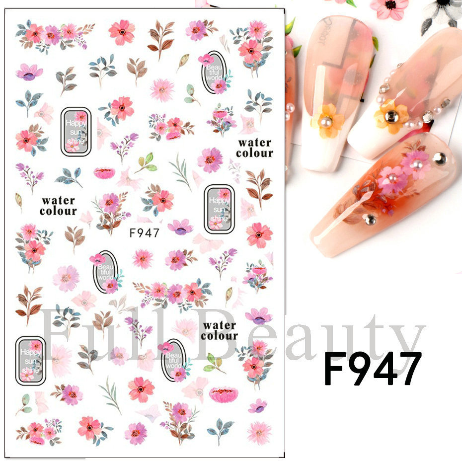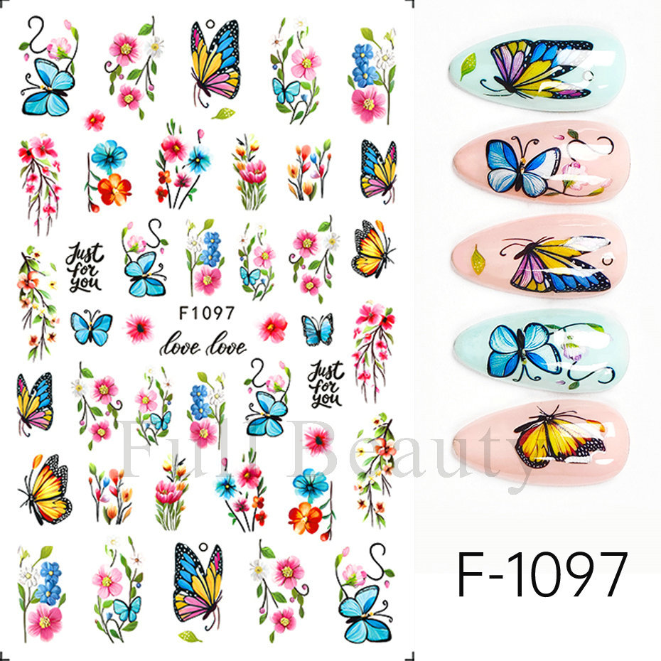 국경 간 새로운 네일 아트 스티커 Ins 봄 색 꽃 나비 토끼 만화 접착 네일 스티커스토어 가기