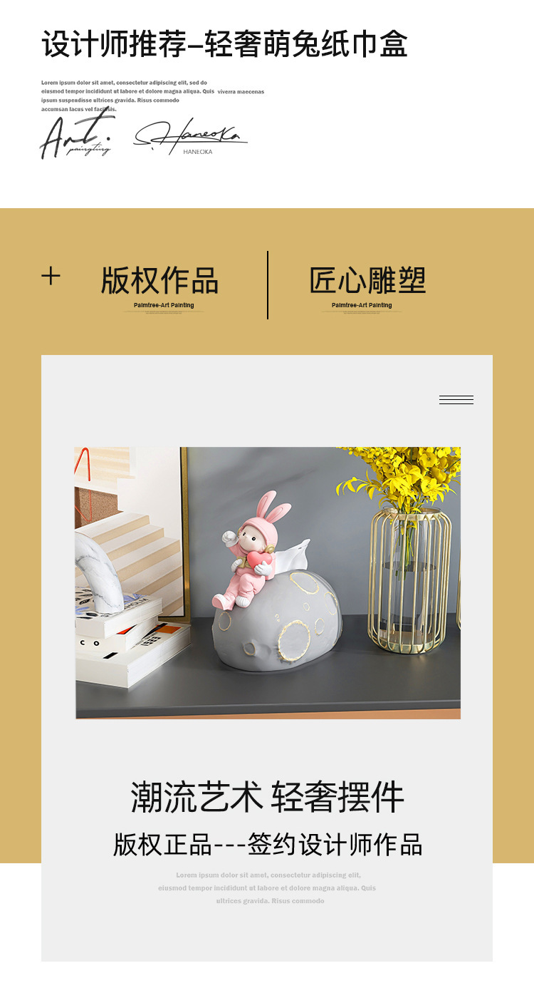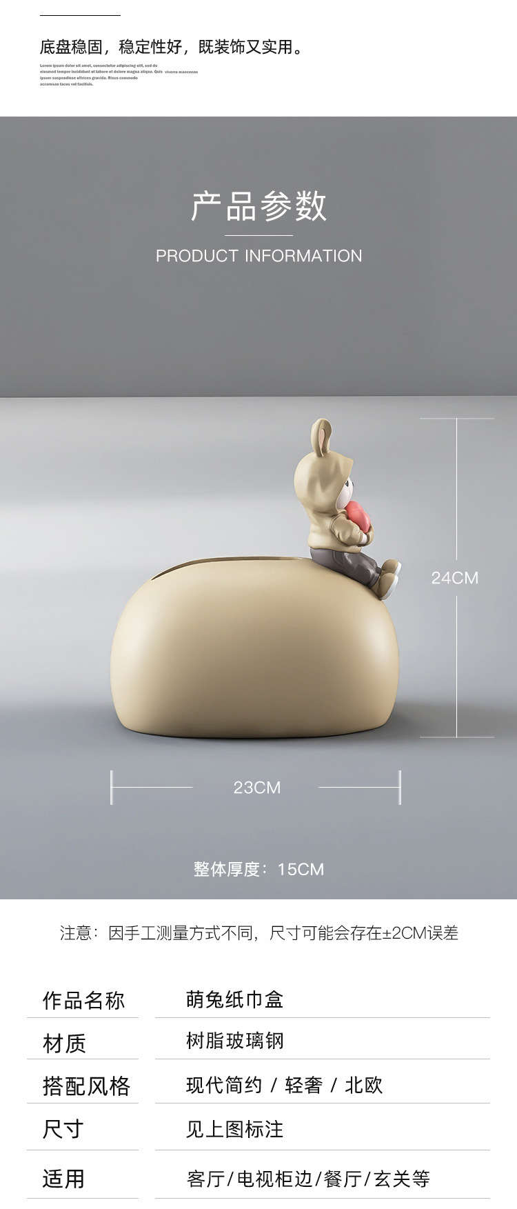 가벼운 럭셔리 창조적 인 토끼 조직 상자 거실 식사 테이블 커피 테이블 냅킨 종이 상자 가정용 사무실 데스크탑 장식