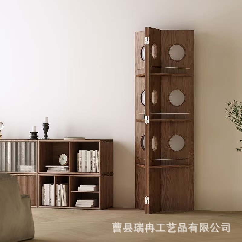 롤러 파티션 소파 배경 벽 장식 책장 보관 랙으로 이동할 수있는 국경 나무 접이식 스크린 거실스토어 가기