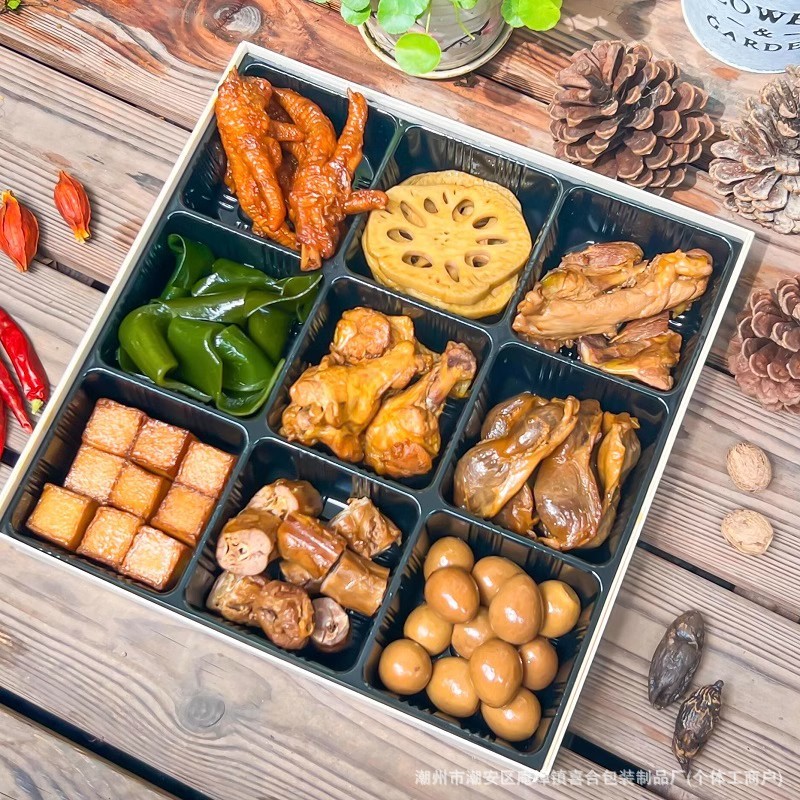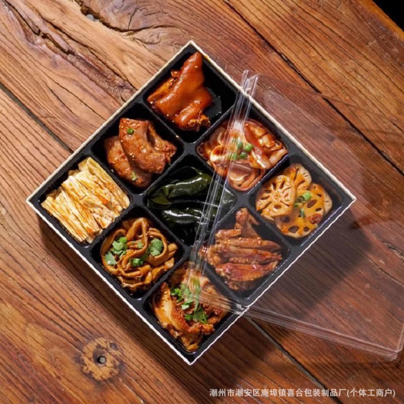 절인 Jiugongge 투명 패키지 박스 인터넷 연예인 바베큐 핫 팟 플래터 오리 목 요리 식품 일회용 테이크 아웃 종이 플라스틱 상자