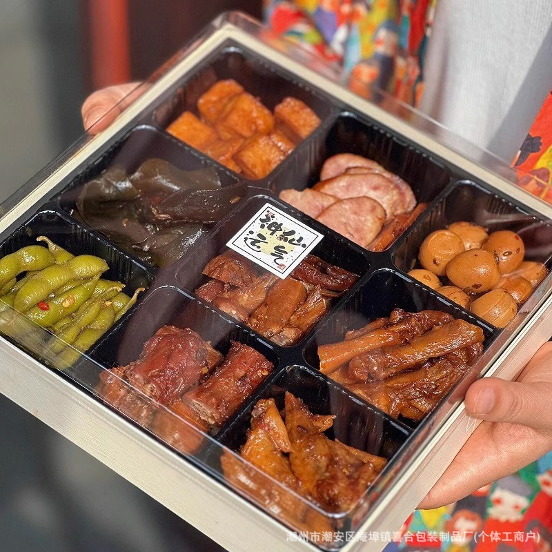 절인 Jiugongge 투명 패키지 박스 인터넷 연예인 바베큐 핫 팟 플래터 오리 목 요리 식품 일회용 테이크 아웃 종이 플라스틱 상자스토어 가기