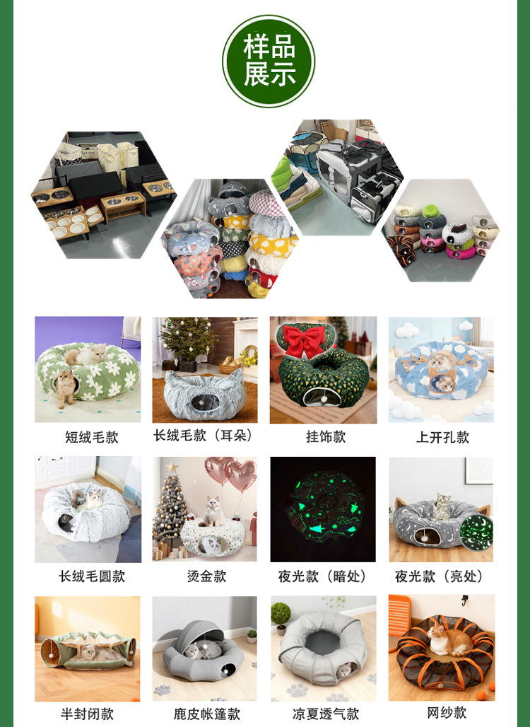 맞춤형 고양이 터널, 긴 털 고양이 터널, 접이식 따뜻한 애완동물 침대, 도넛형 S자 고양이 통로