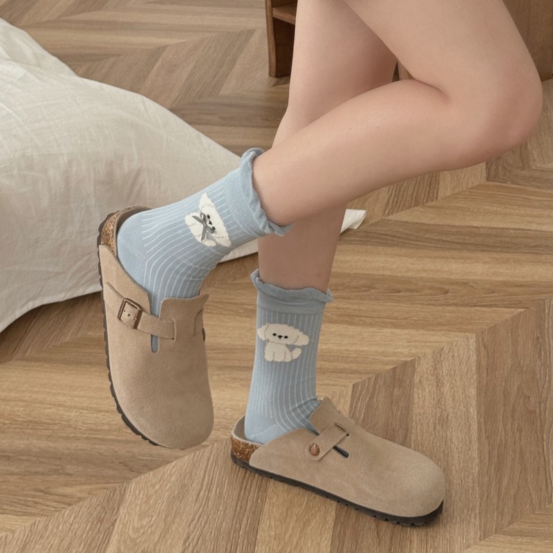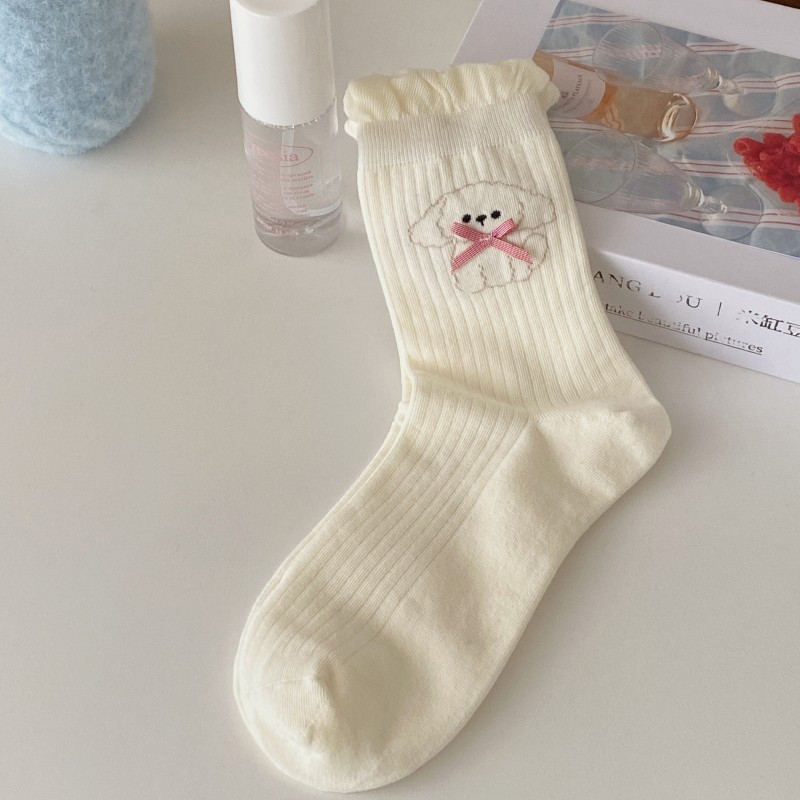 여성용 양말 봄 여름 얇은 중간 길이 양말 리본 강아지 여성용 양말 트렌디하고 귀여운 만화 양말 발레 스타일