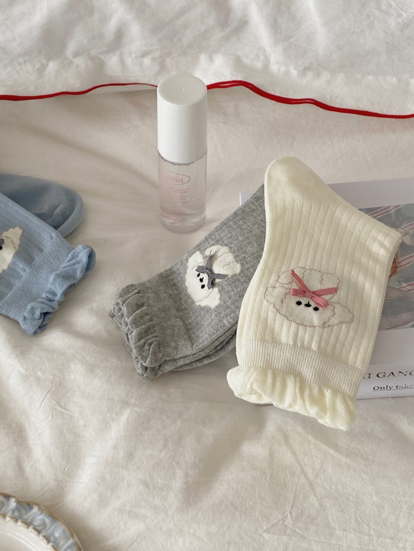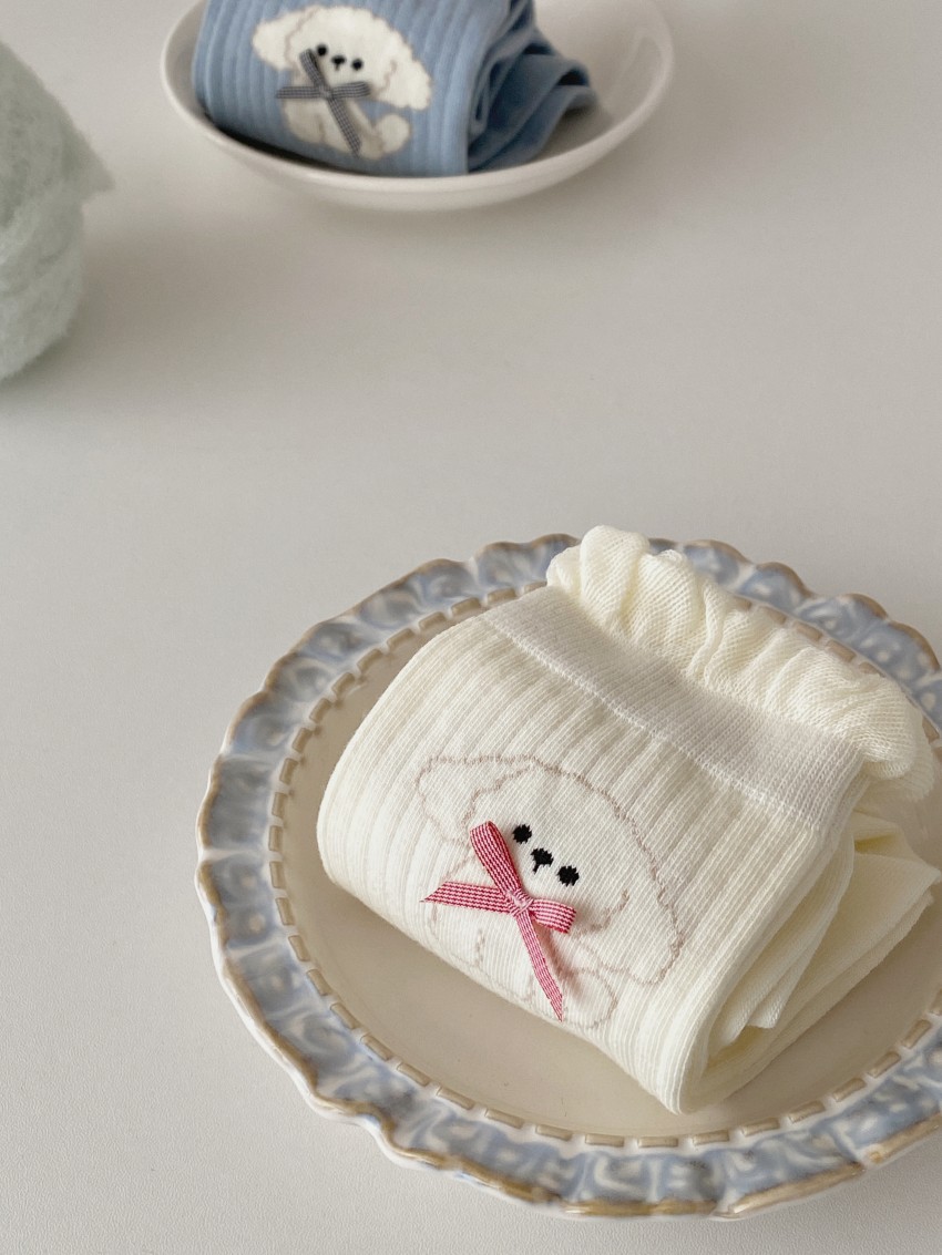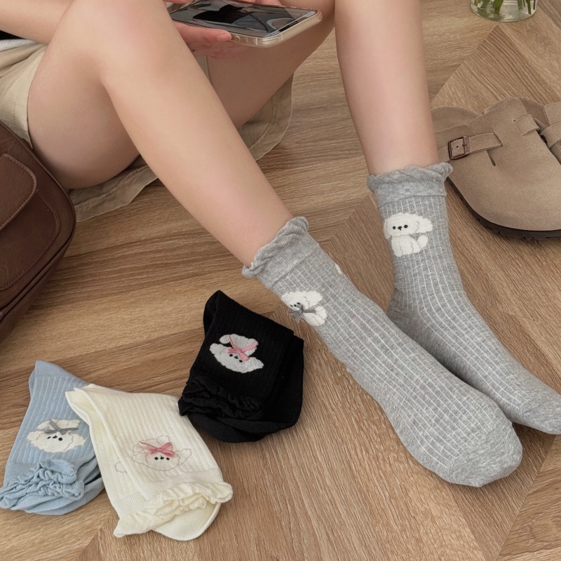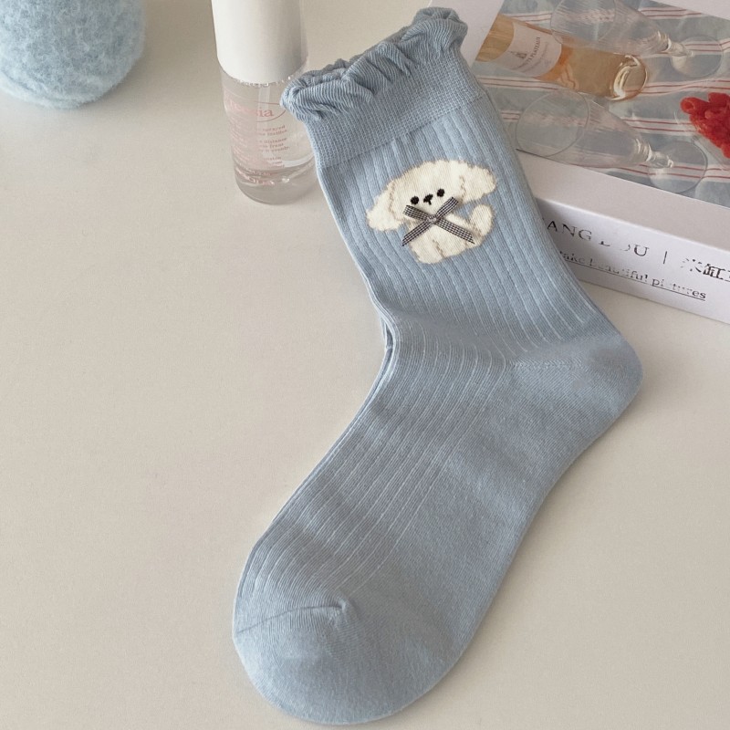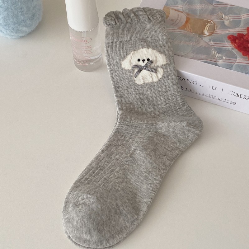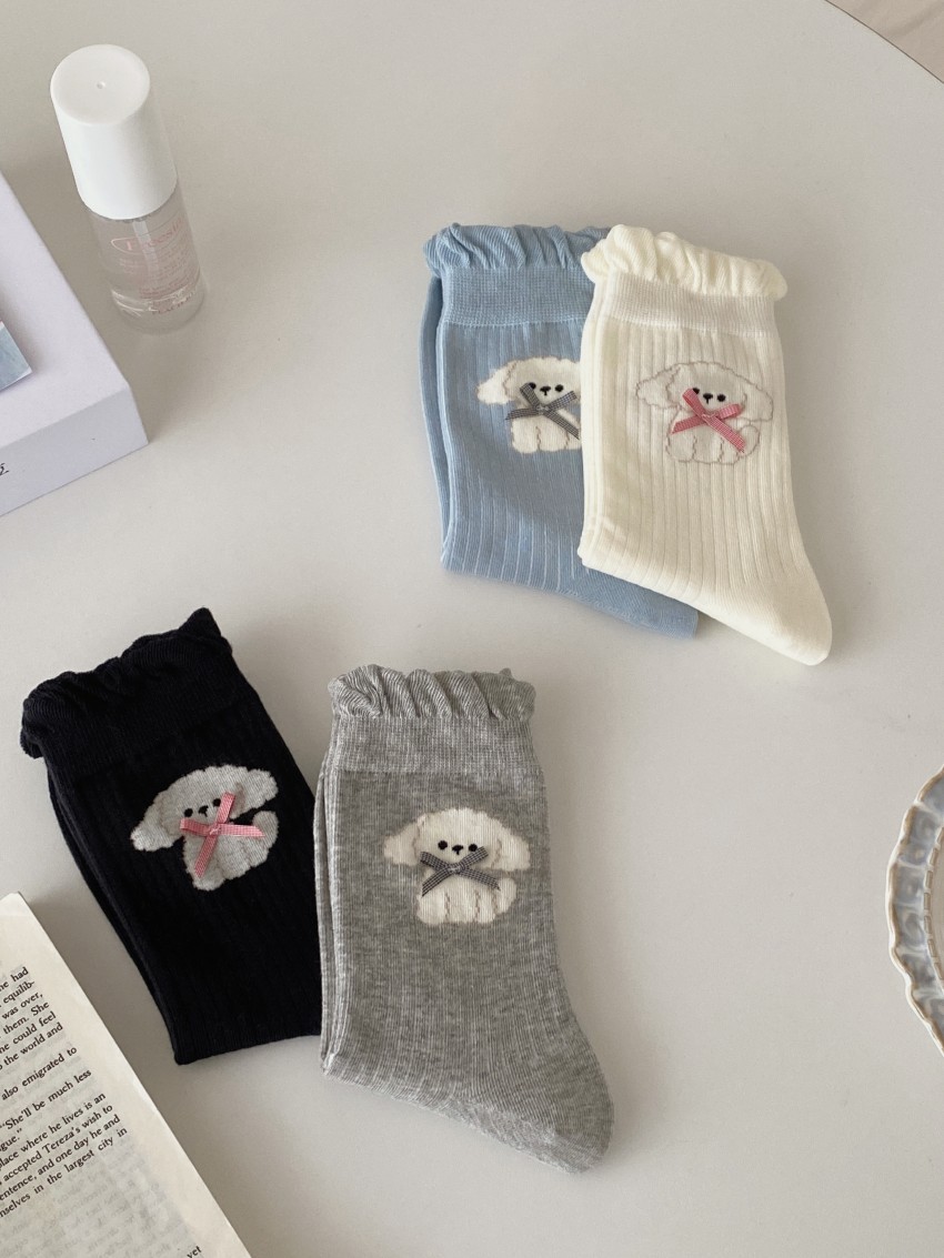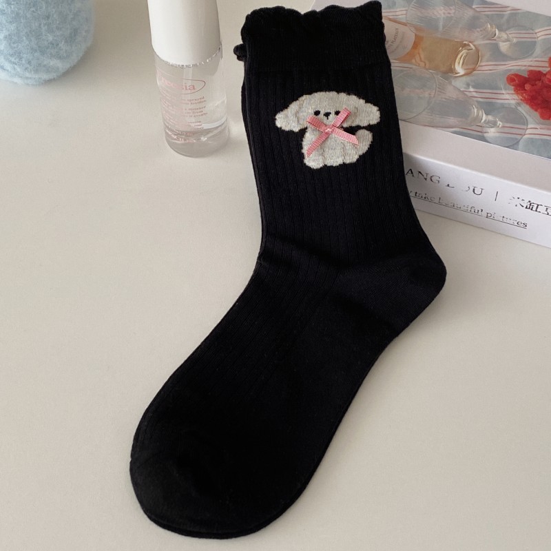 여성용 양말 봄 여름 얇은 중간 길이 양말 리본 강아지 여성용 양말 트렌디하고 귀여운 만화 양말 발레 스타일스토어 가기