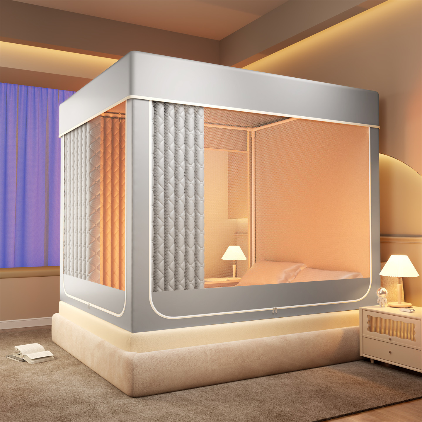 • 영원한 밤-베이지 [모기장+퀼팅 침대커튼]
