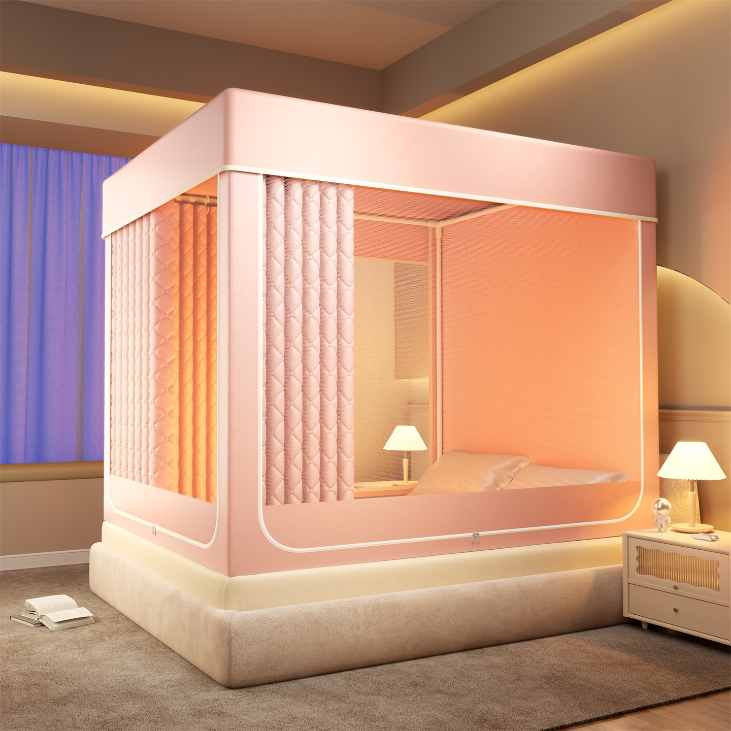 • 영원한 밤-핑크 [모기장+퀼팅 침대커튼]