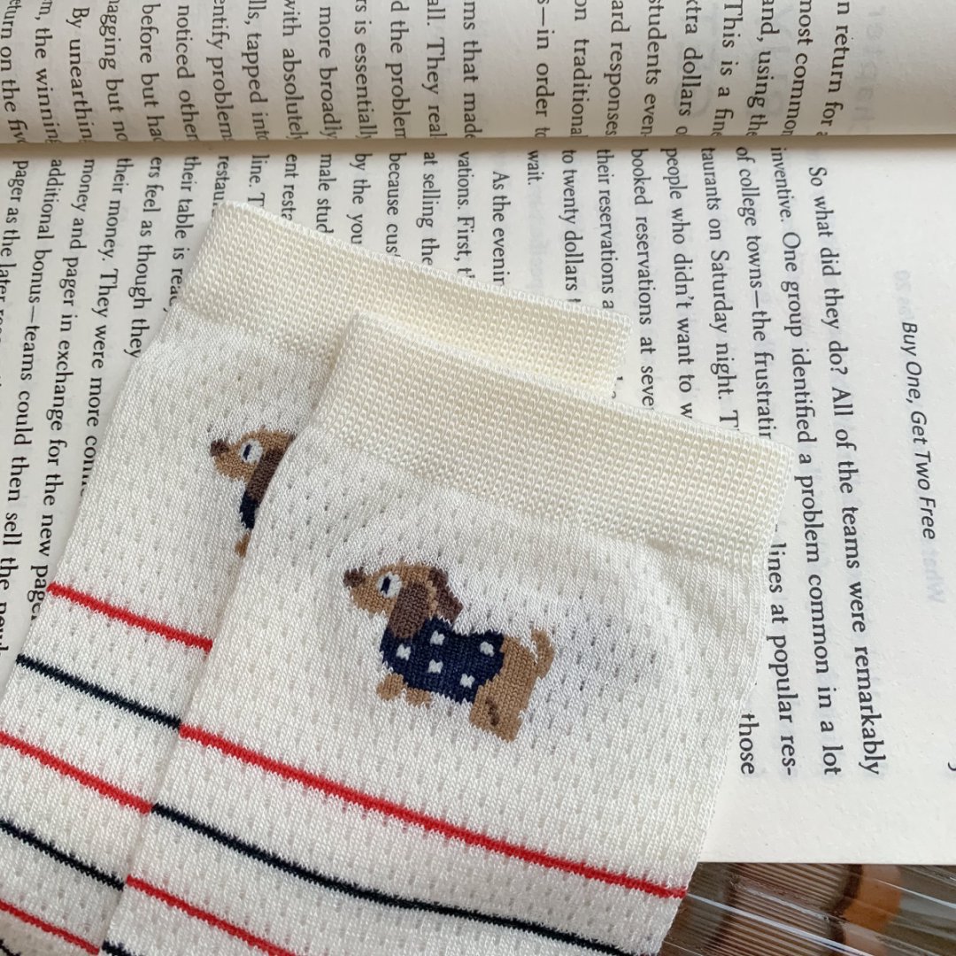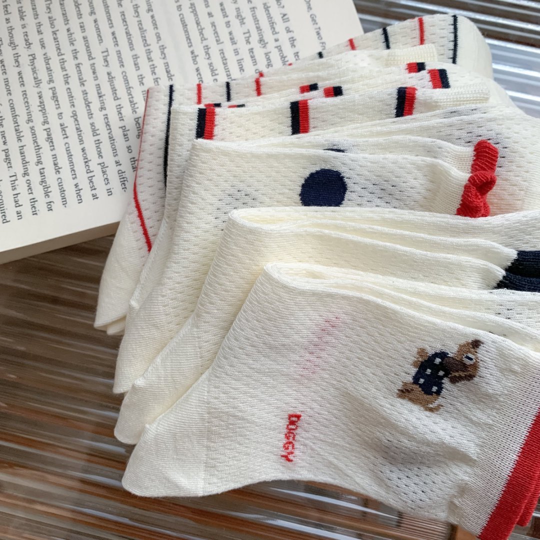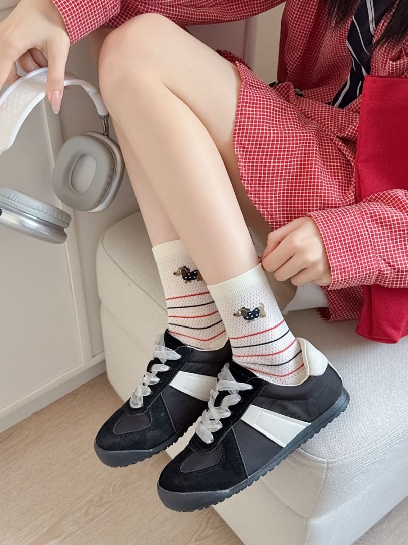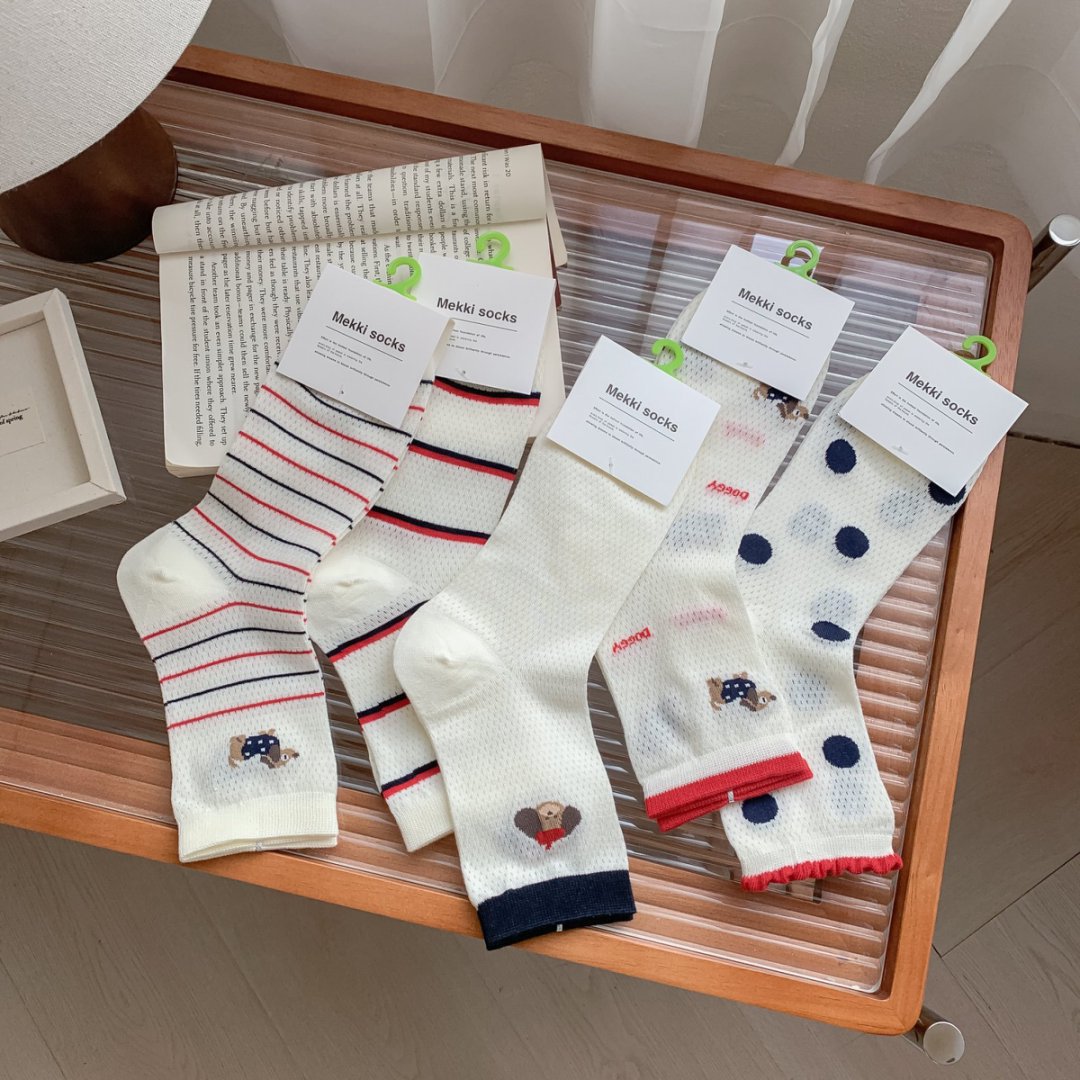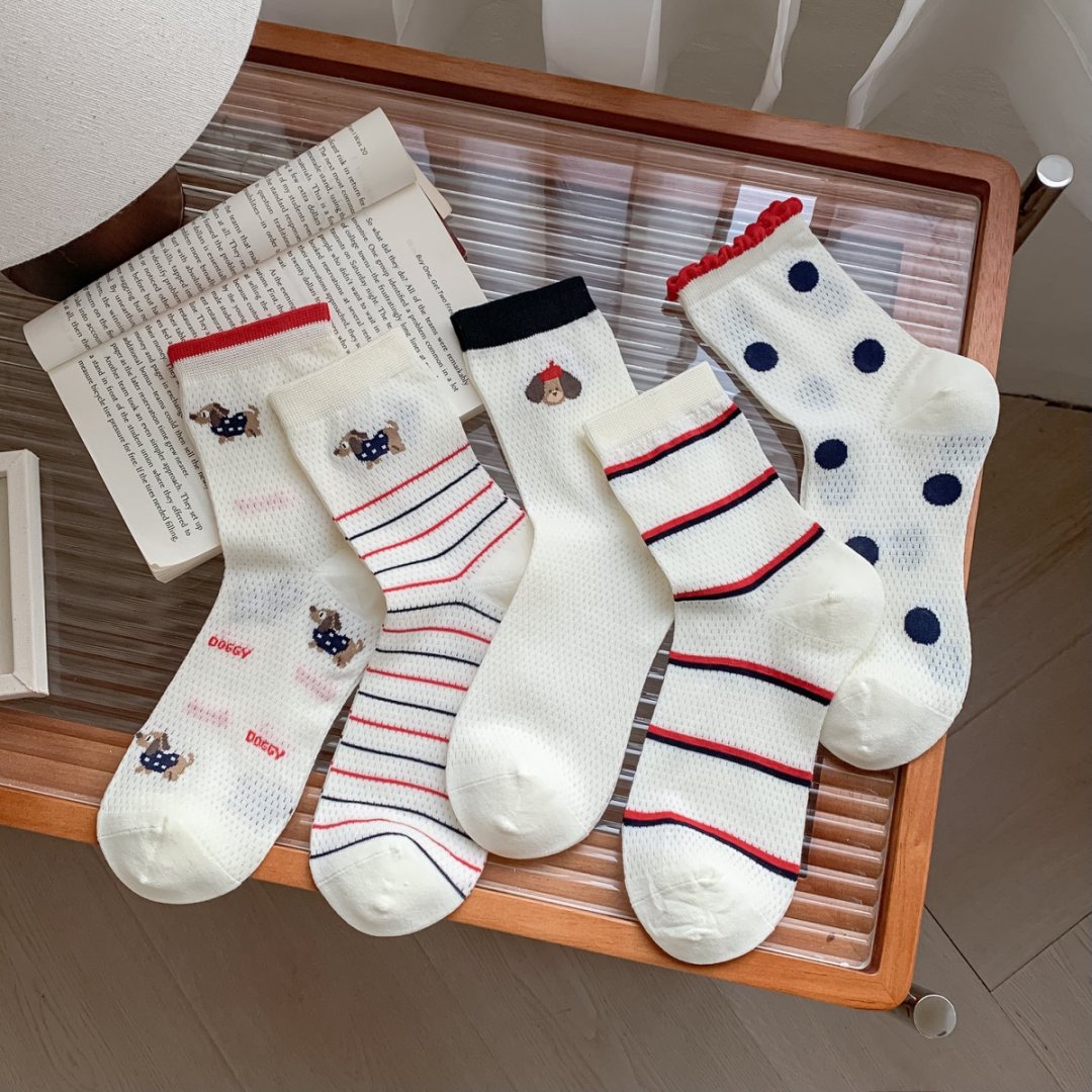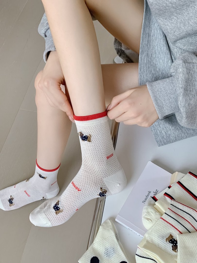 여성용 양말 얇은 강아지 캐주얼 중반 종아리 양말 줄무늬 자수 하이룩 인 트렌디 메쉬 통기성 봄 여름면 양말스토어 가기