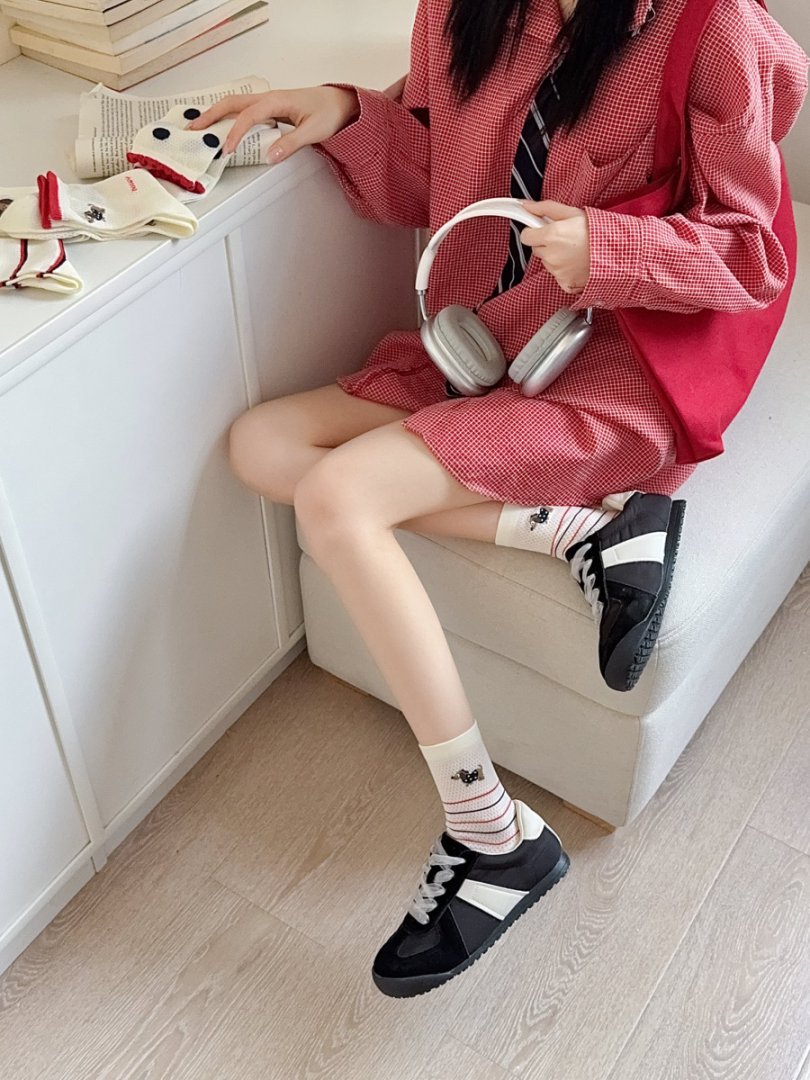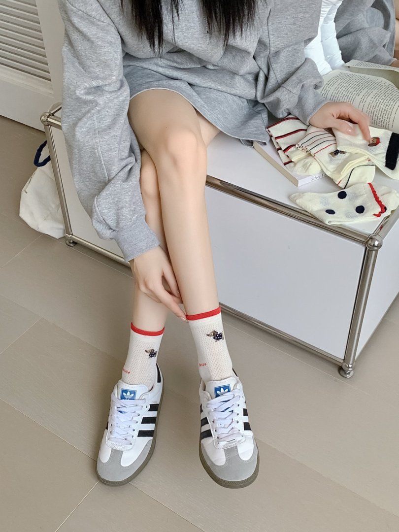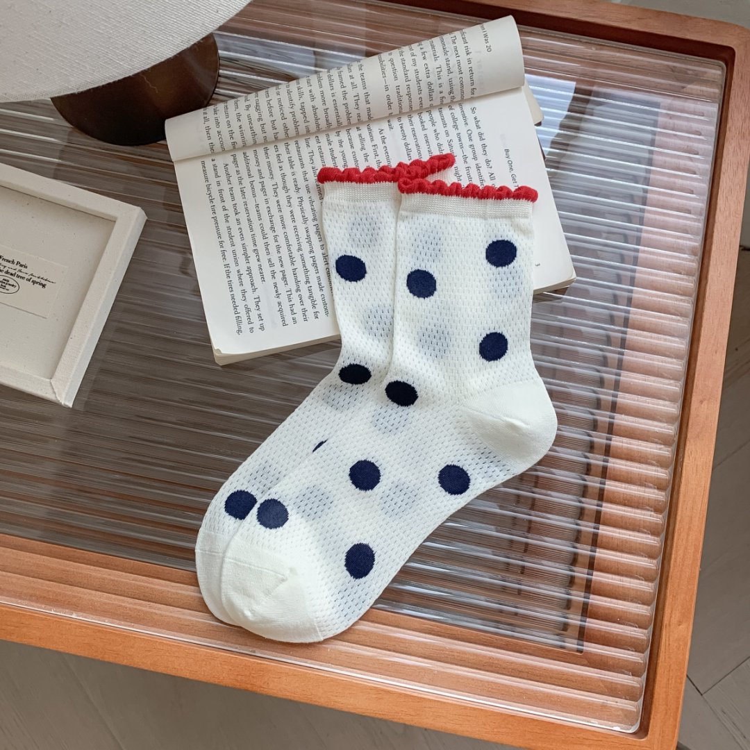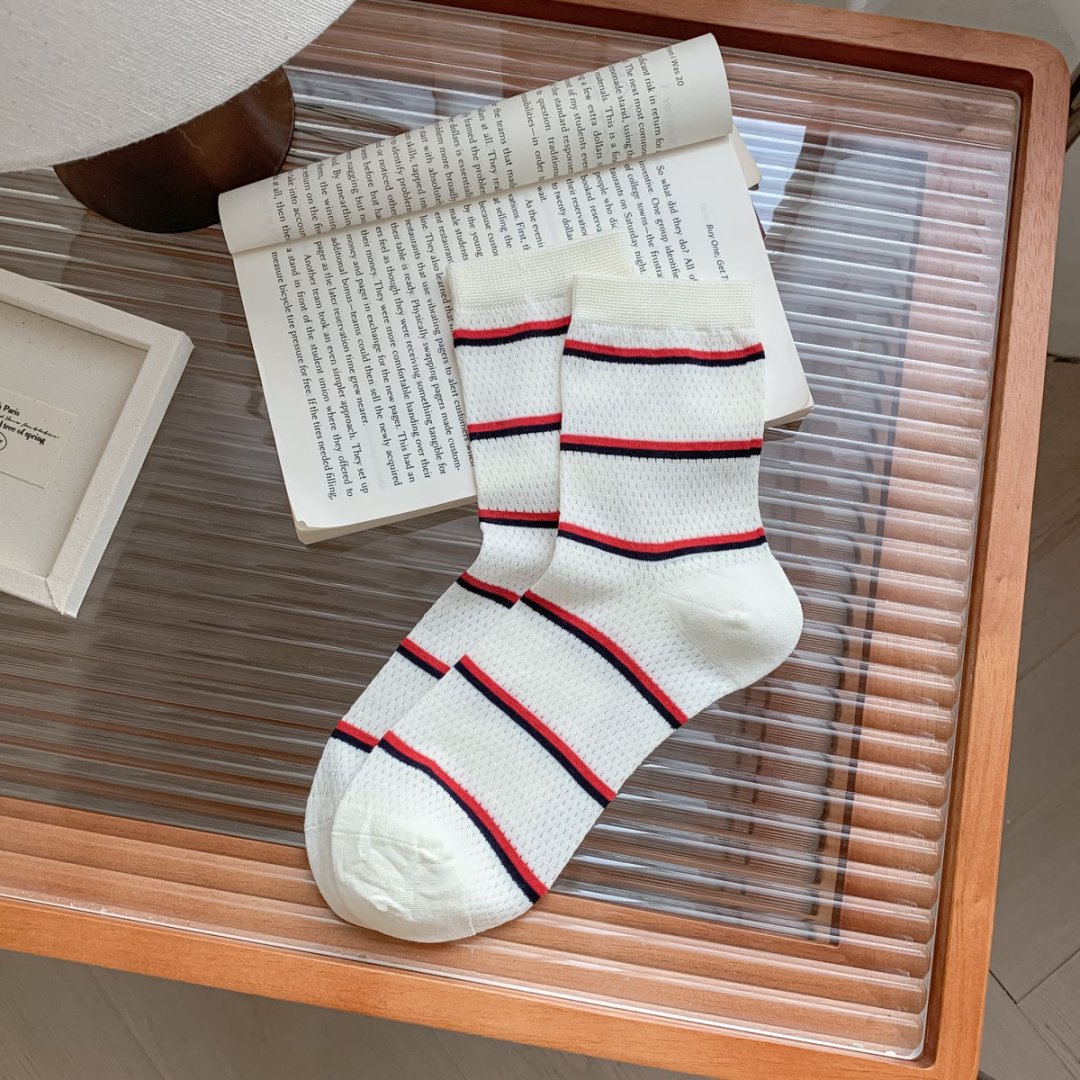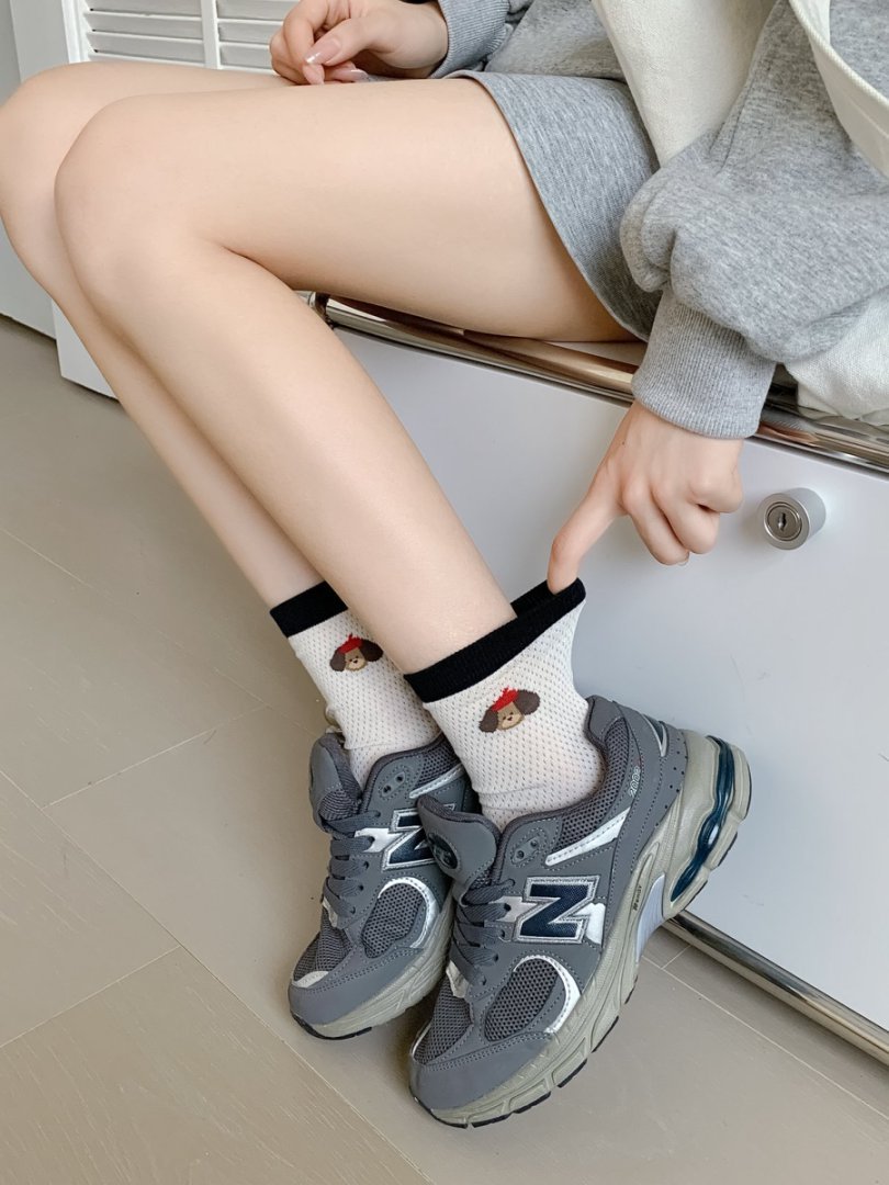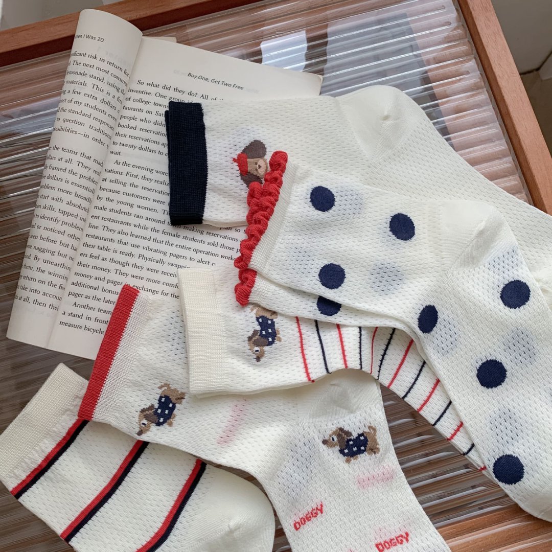 여성용 양말 얇은 강아지 캐주얼 중반 종아리 양말 줄무늬 자수 하이룩 인 트렌디 메쉬 통기성 봄 여름면 양말스토어 가기