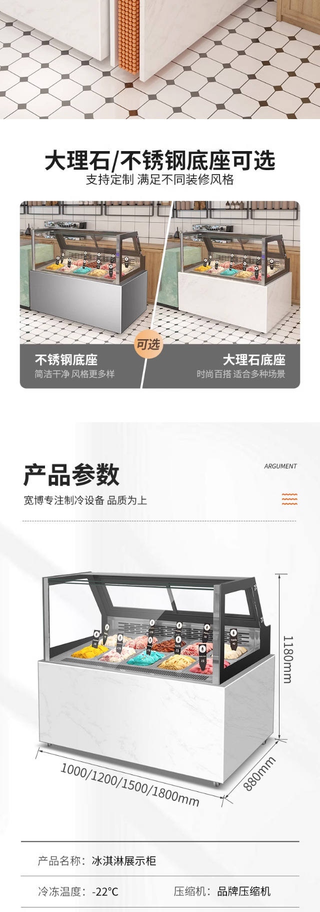 • 1.2m 아이스크림 캐비닛【-22 ℃ 공냉식 및 성에 방지]