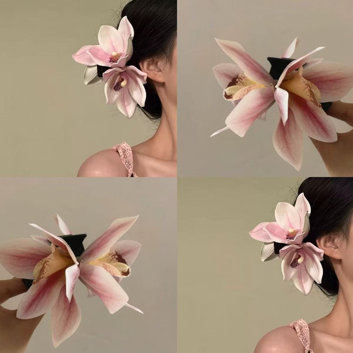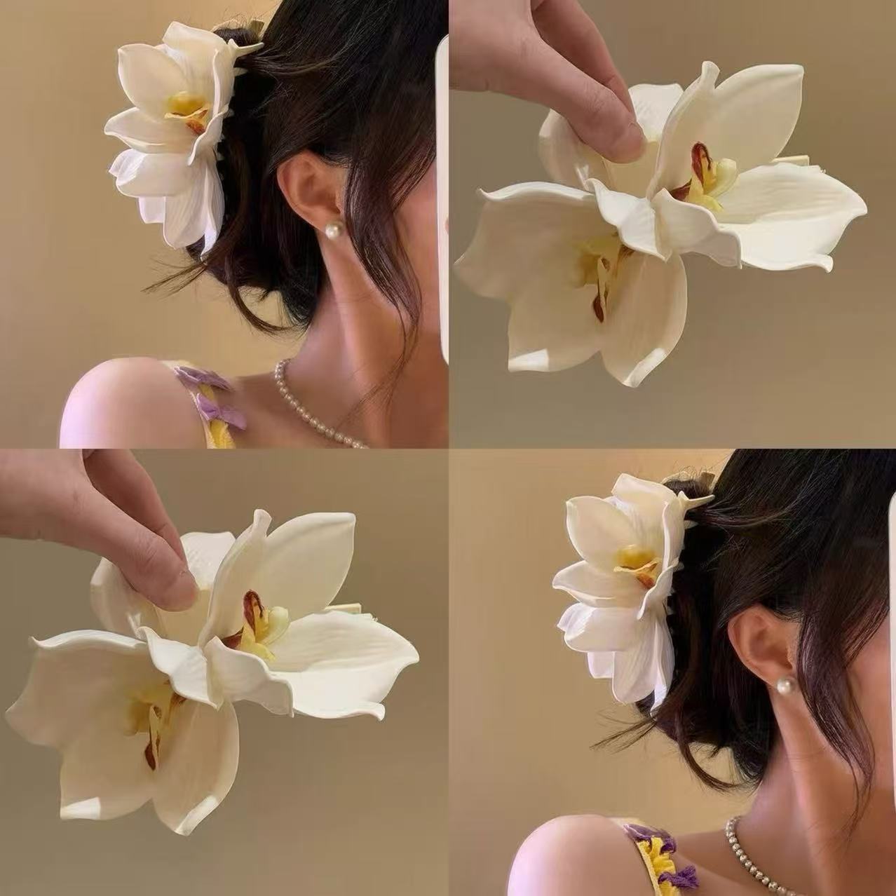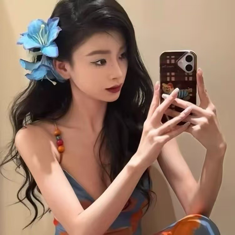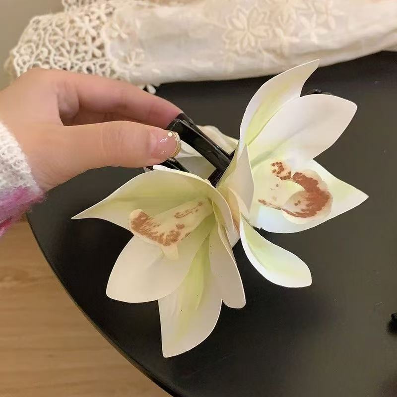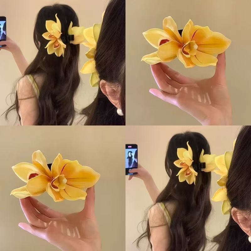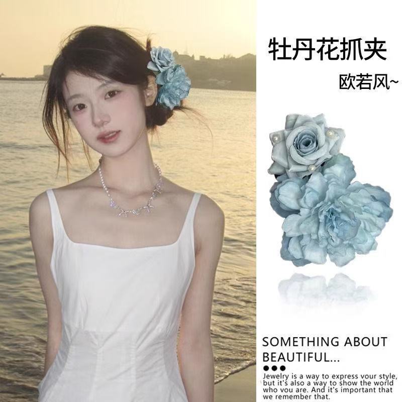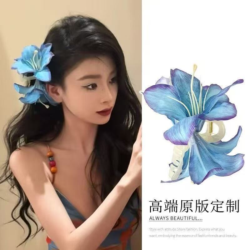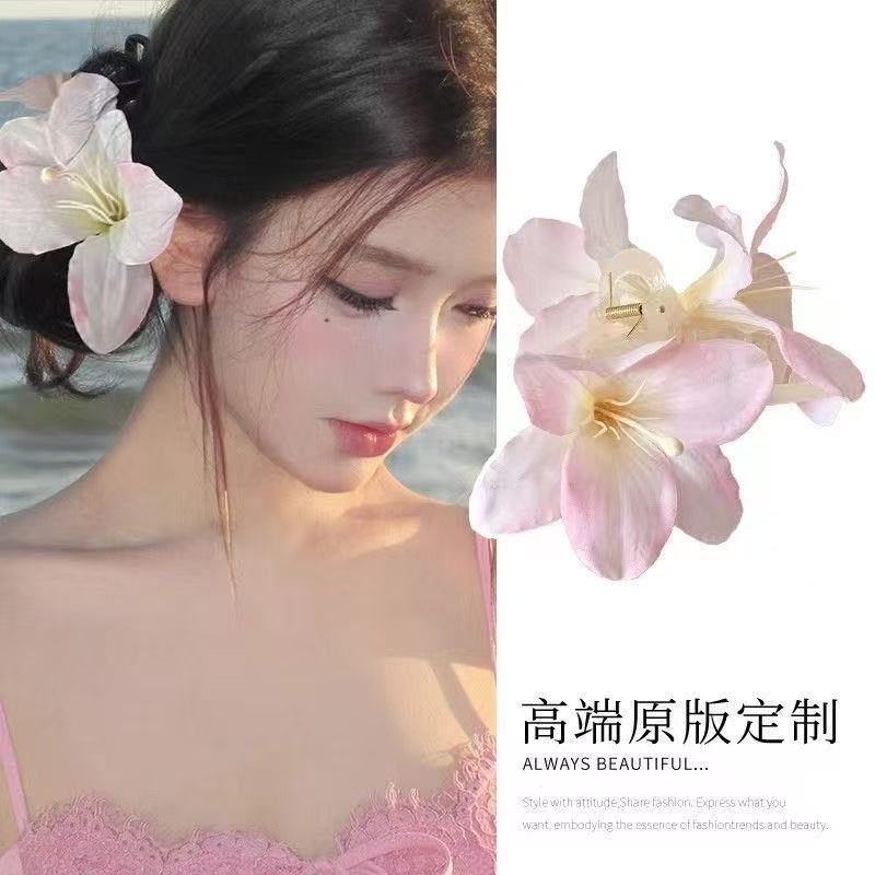 해변 사진 분위기 백합 꽃 잡아 클립 여성의 머리 머리 클립 꽃 헤어 클립 사이드 클립 홀리데이 스타일 헤어 액세서리