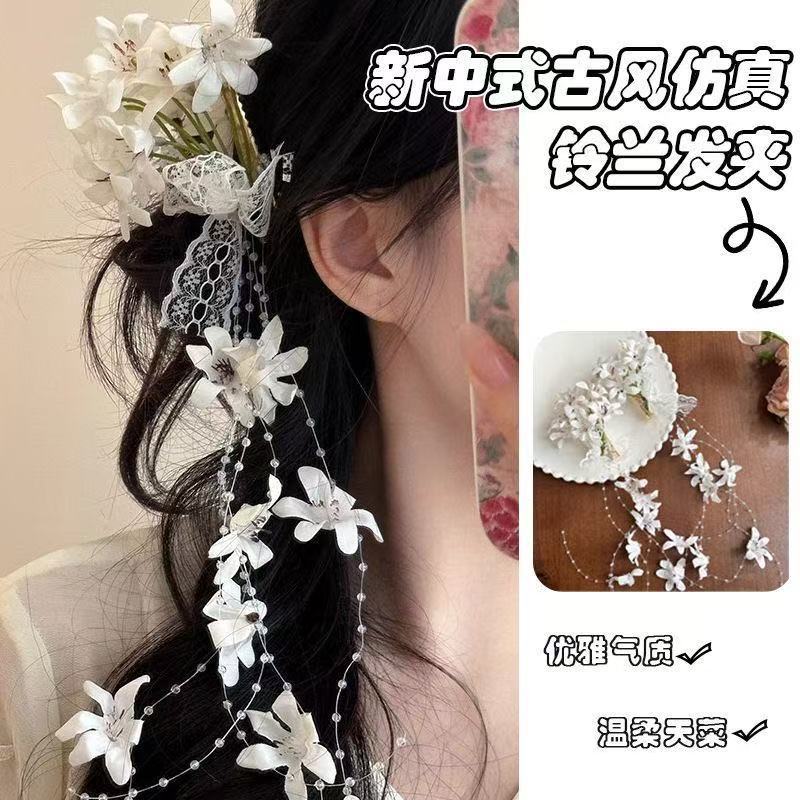 • 5805 은방울꽃 태슬 머리핀 - 화이트