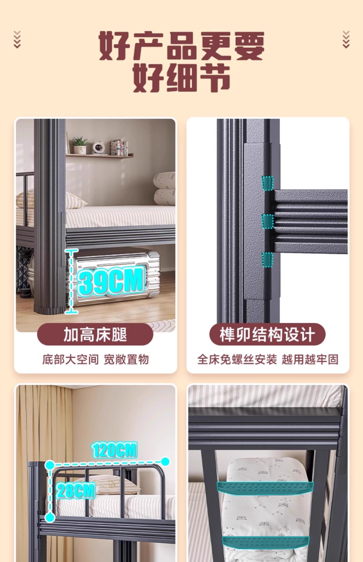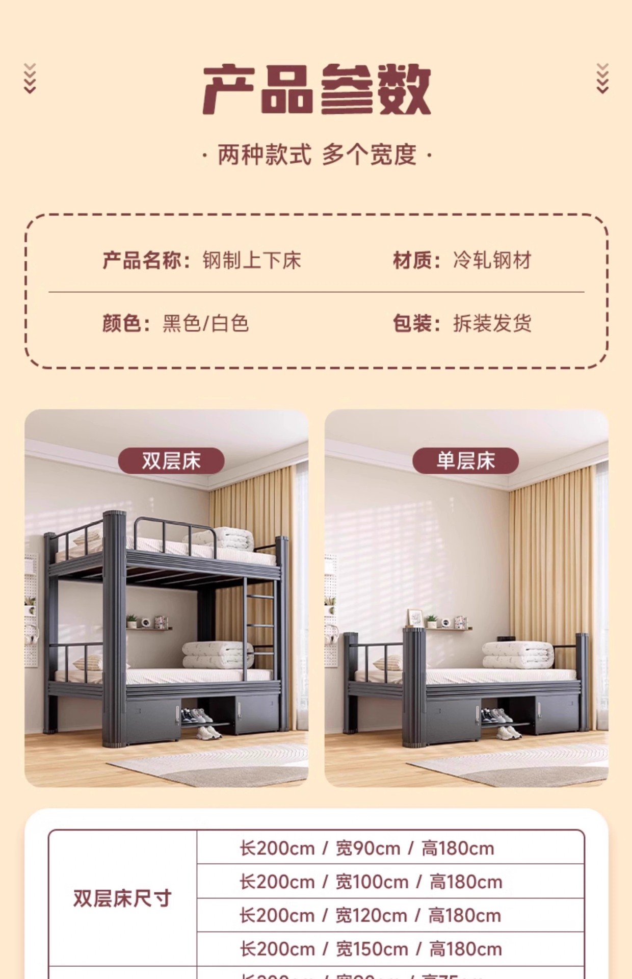 상하 이층 침대 학교 기숙사 어린이 방 아파트 강철 높고 낮은 침대 연철 상부 및 하부 이층 더블 침대스토어 가기