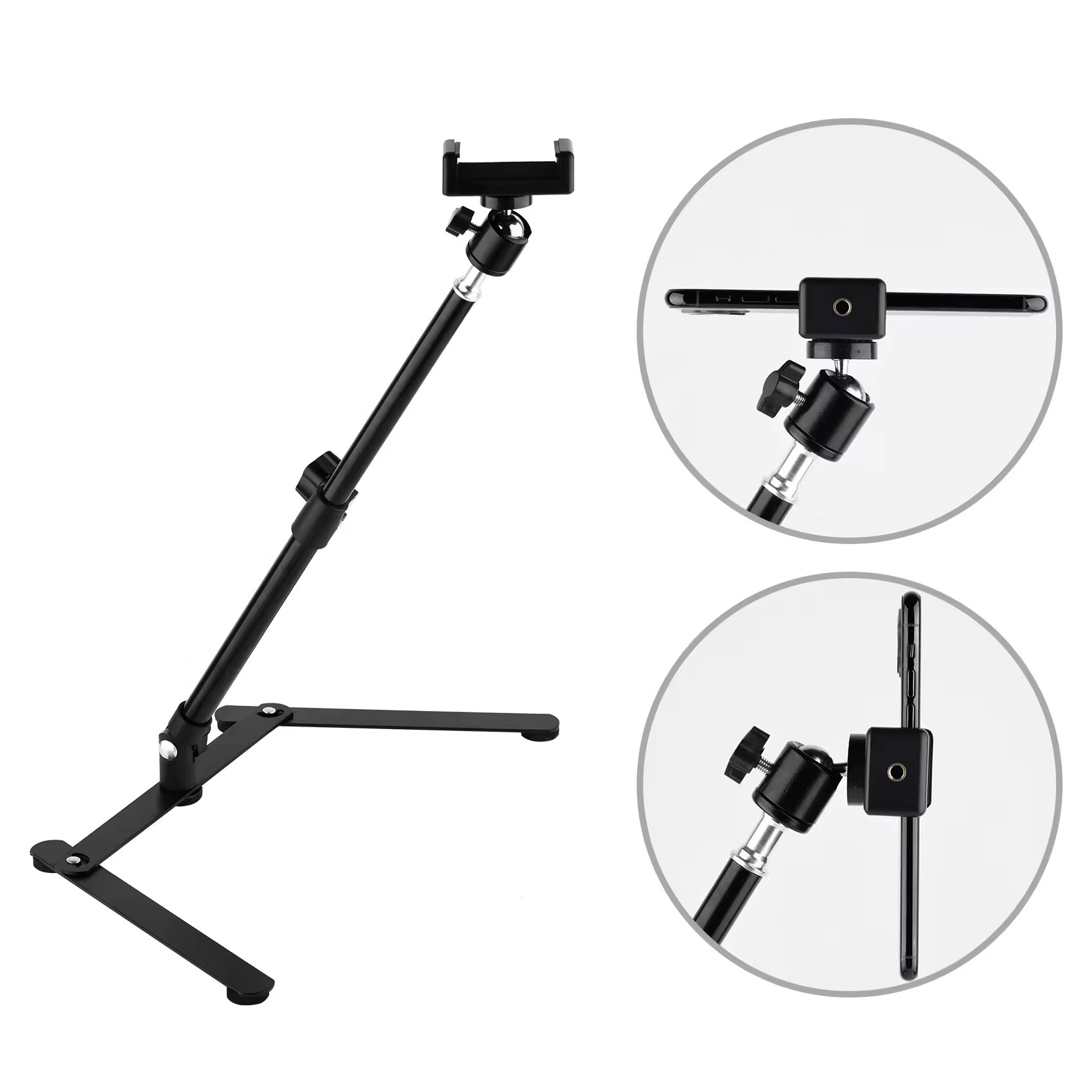 새로운 크로스보더 휴대폰 거치대(조명 포함), 휴대용 탁상 촬영대, 라이브 방송 및 사진 촬영용, 맞춤형 도매