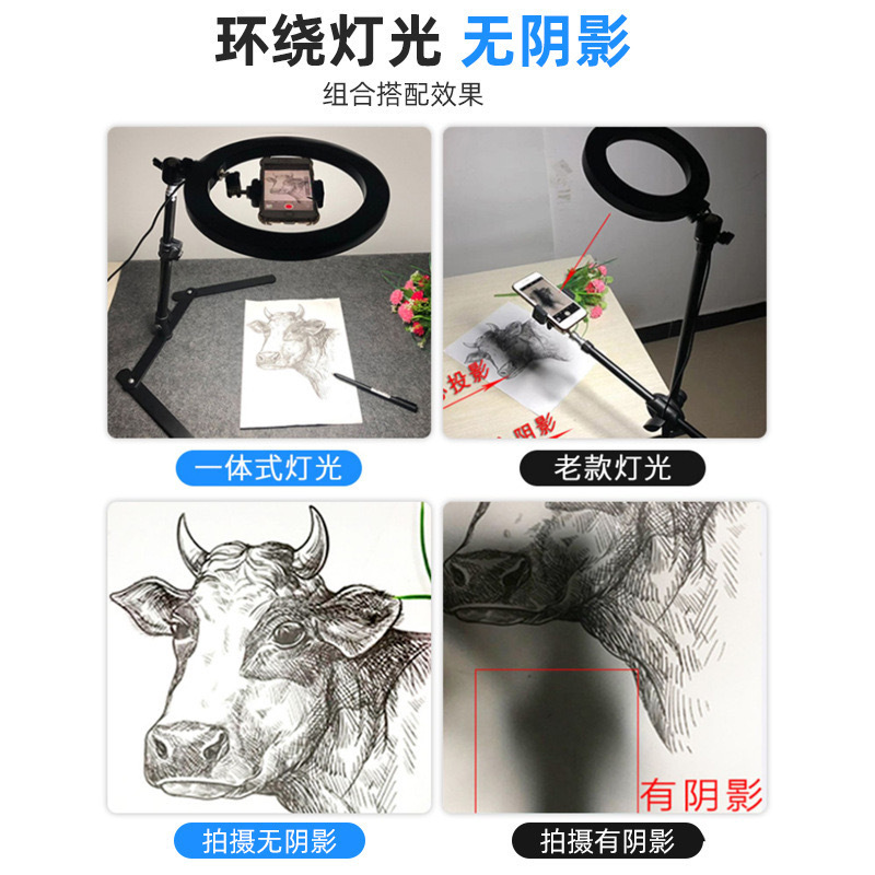 • 신형 오버헤드 슈팅 스탠드 + 10inch (26cm) 링 라이트 + 로봇 팔 + E자형 클립