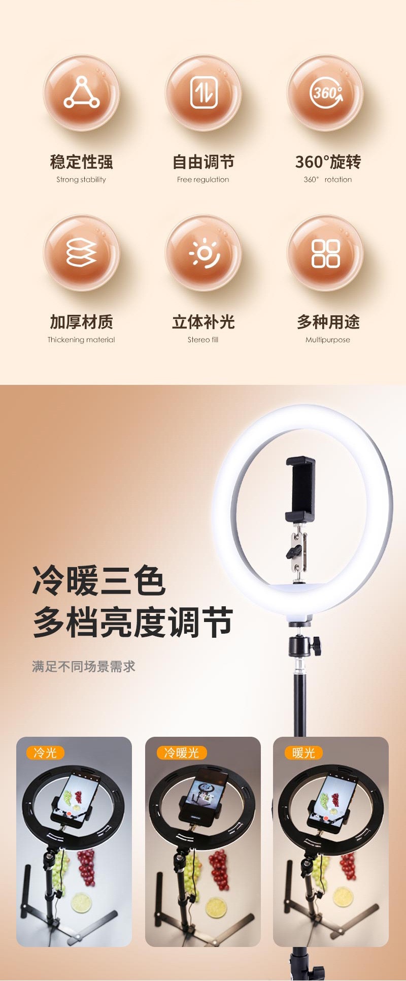 새로운 크로스보더 휴대폰 거치대(조명 포함), 휴대용 탁상 촬영대, 라이브 방송 및 사진 촬영용, 맞춤형 도매스토어 가기