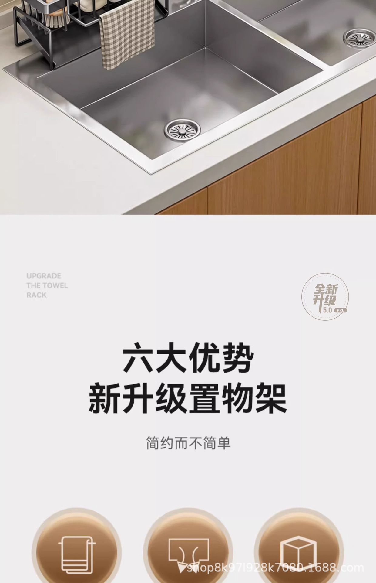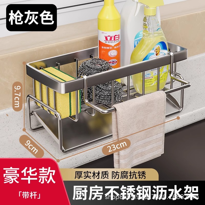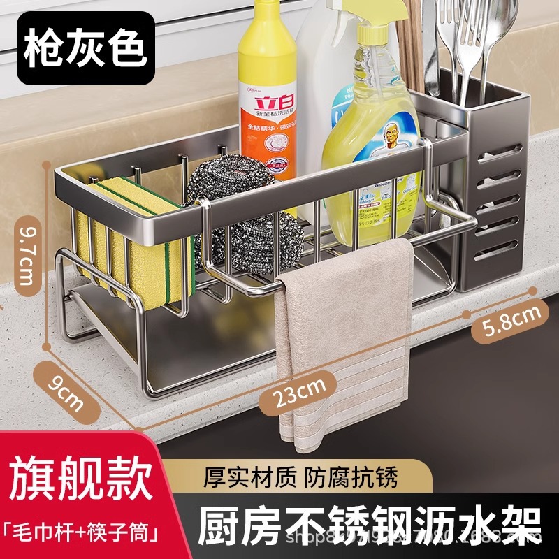 • [플래그십 모델] 건그레이⭐스테인레스 배수 바구니 + 수건 걸이 + 젓가락 꽂이 (두껍고 굵게)