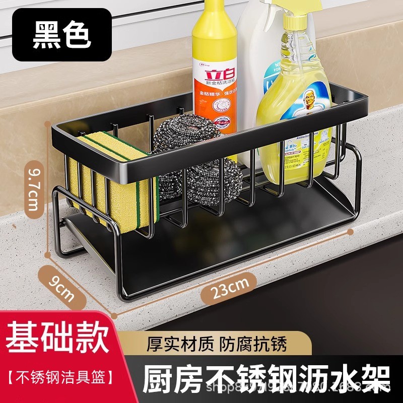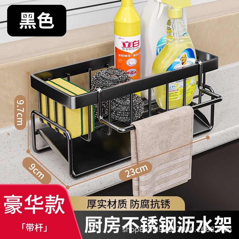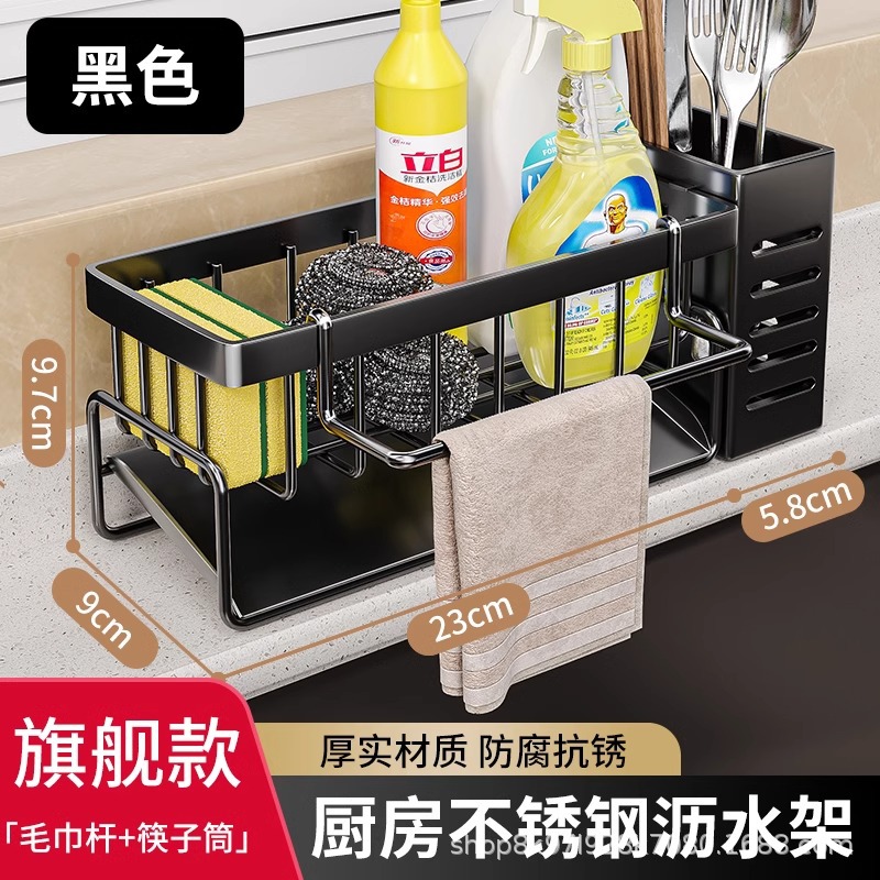 • [플래그십 모델] 블랙⭐스테인레스 배수 바구니 + 수건 걸이 + 젓가락 꽂이 (두껍고 굵게)