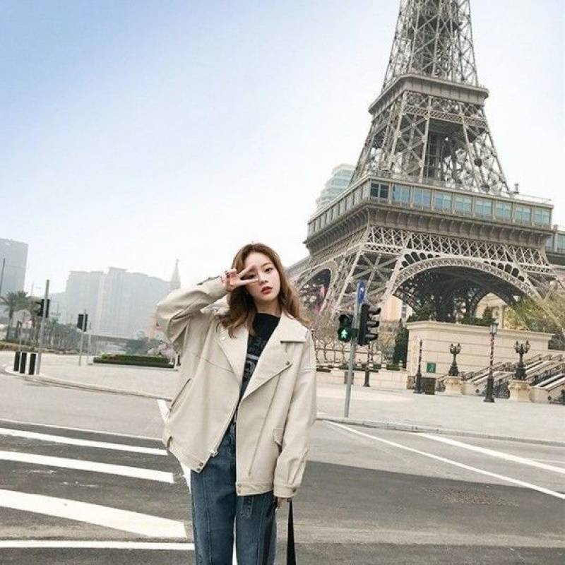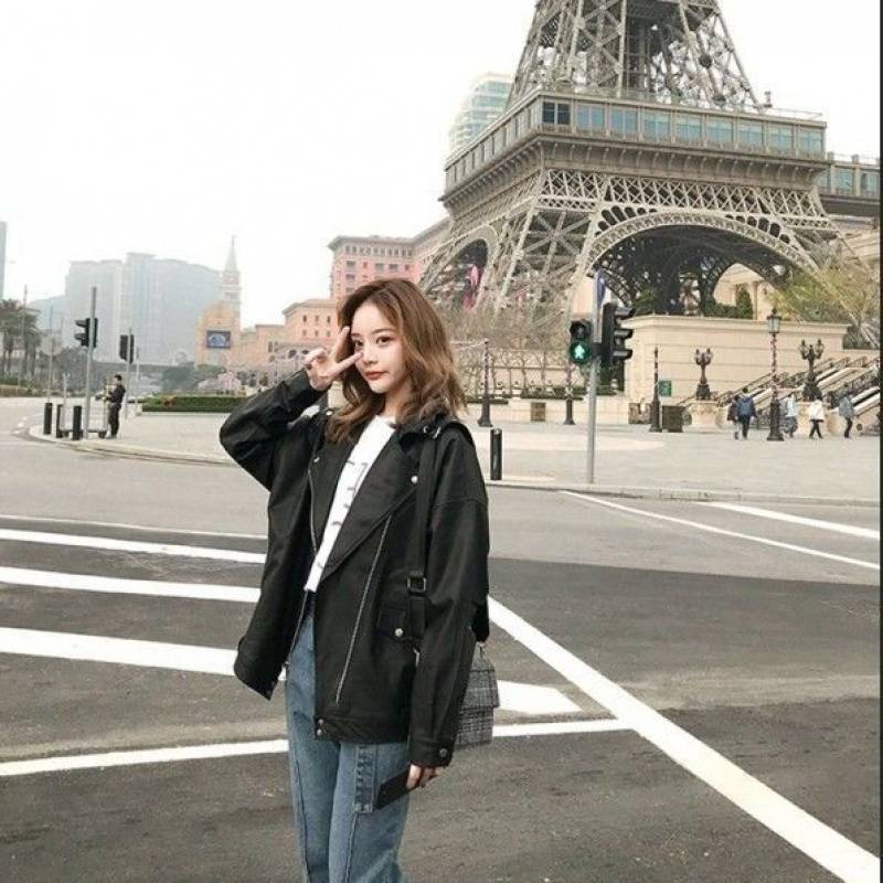 가죽 자켓 여성 2025 새로운 봄과 가을 한국 스타일 짧은 BF 스타일 느슨한 오토바이 가죽 자켓 트렌디스토어 가기