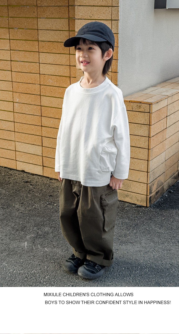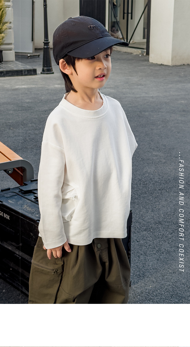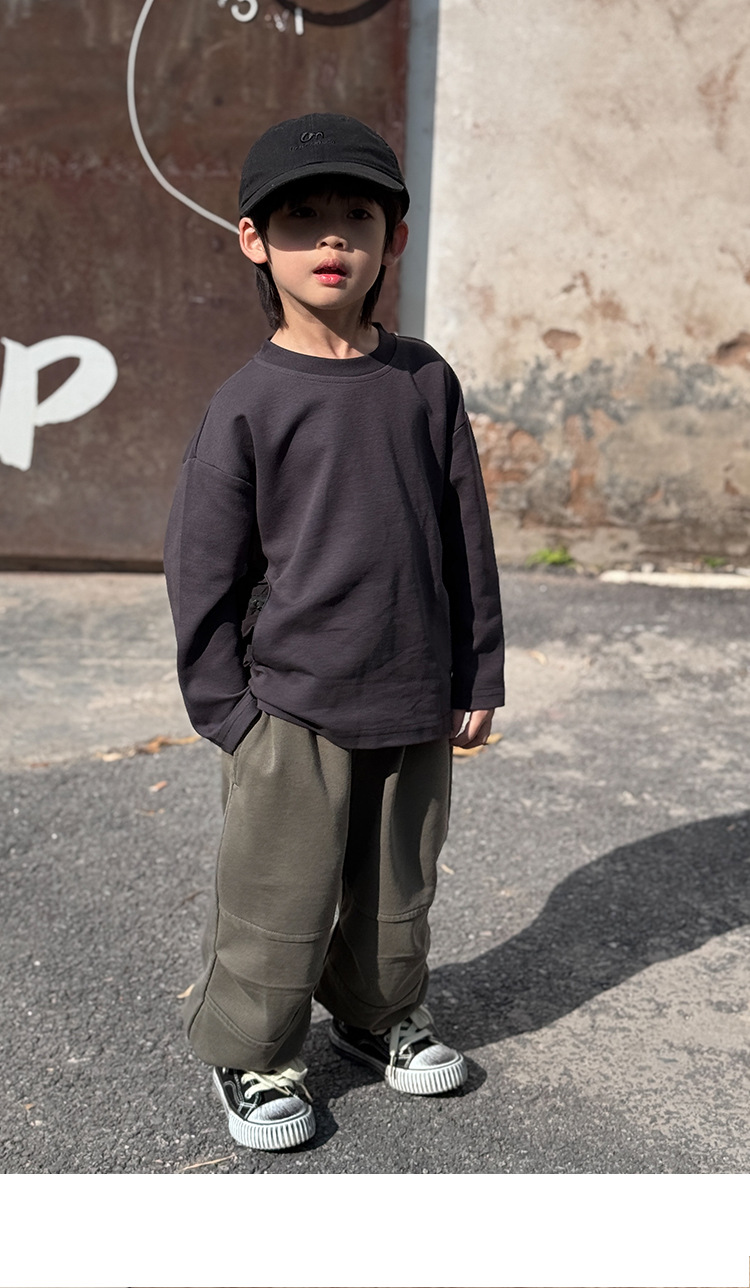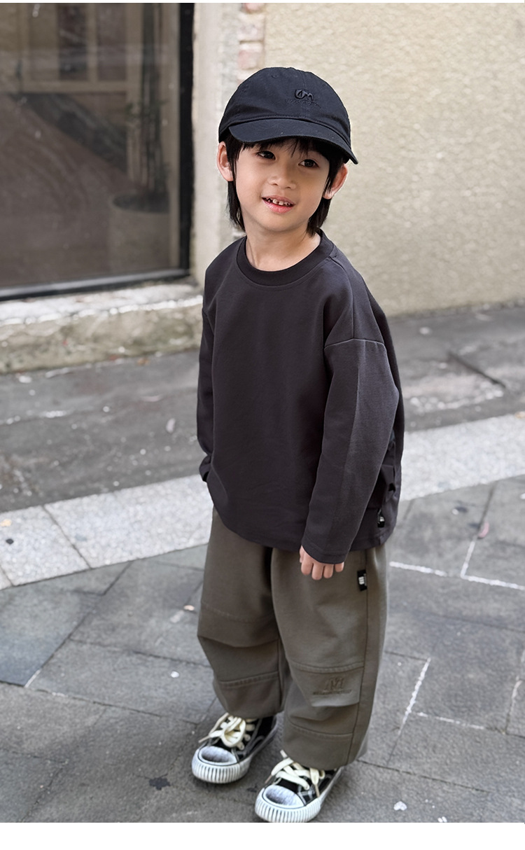 남학생 '2025 년 봄 새 긴팔 티셔츠 어린이 캐주얼 느슨한 인테리어 솔리드 컬러베이스 셔츠 얇은 트렌디스토어 가기