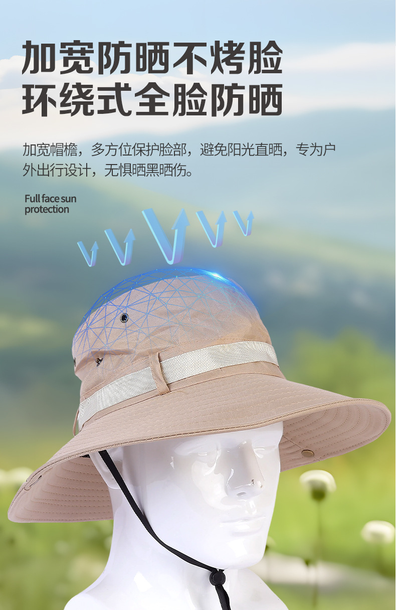 선 스크린 어부 모자 남자의 여름 야외 낚시 차양 모자 큰 브림 낚시 통기성 어부 모자 여행 등산 모자