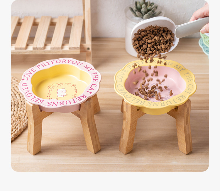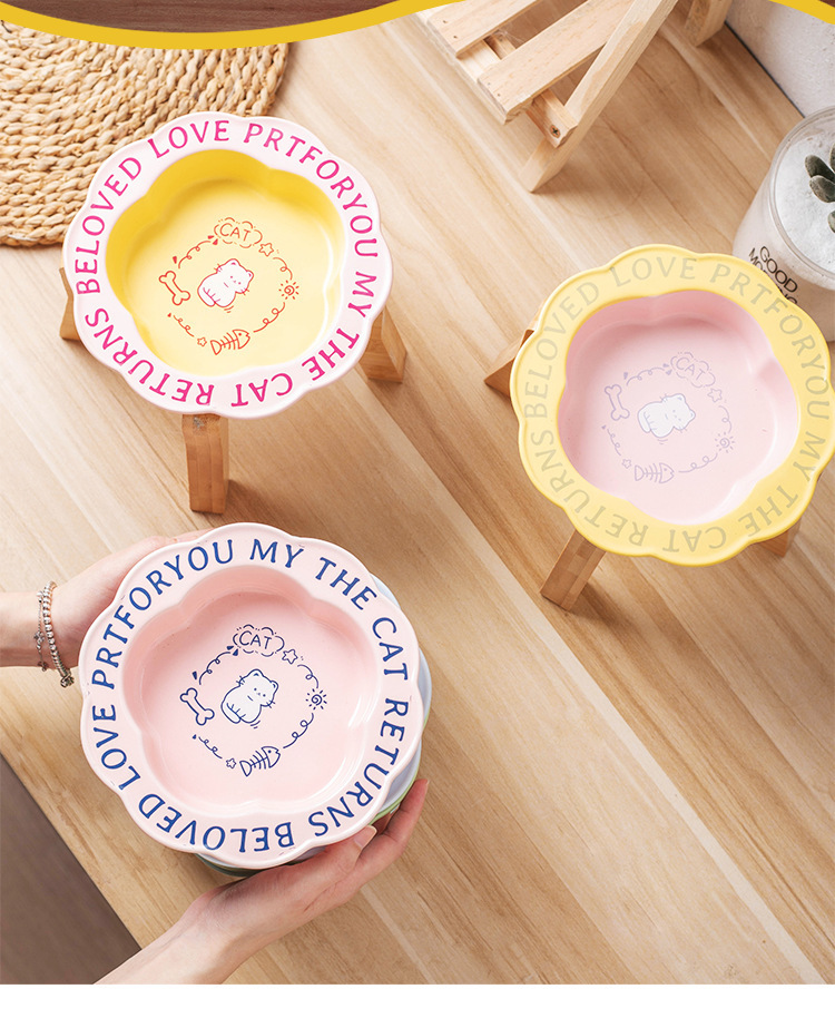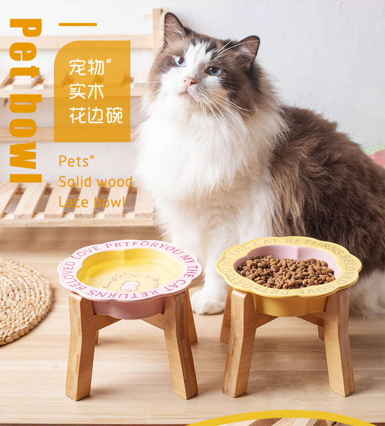 레이스 고양이 그릇 안티 블랙 턱 통조림 고양이 식품 분지 세라믹 개 식품 그릇 고양이 안티 노크 물 공급 그릇 높은 발 나무 랙스토어 가기