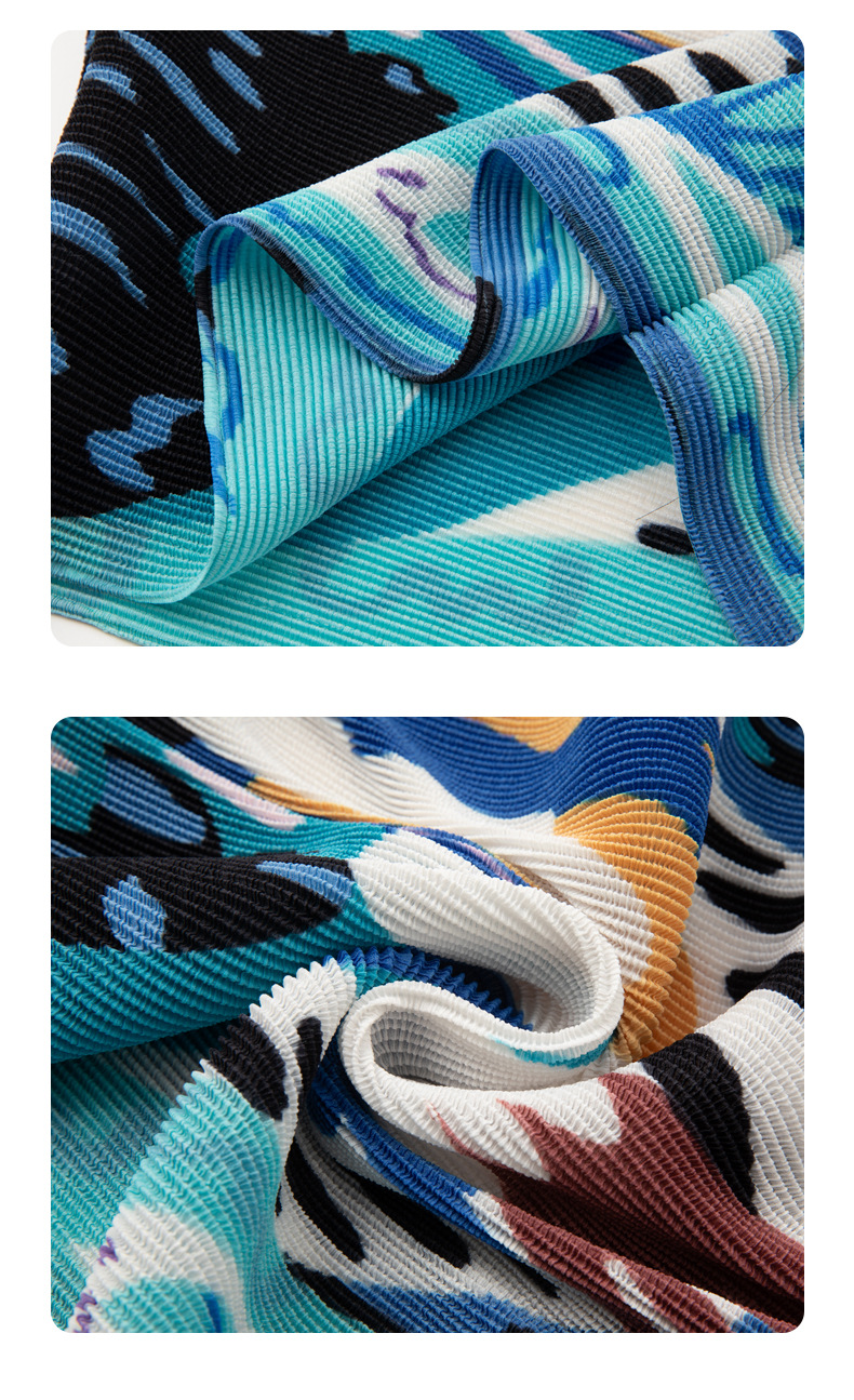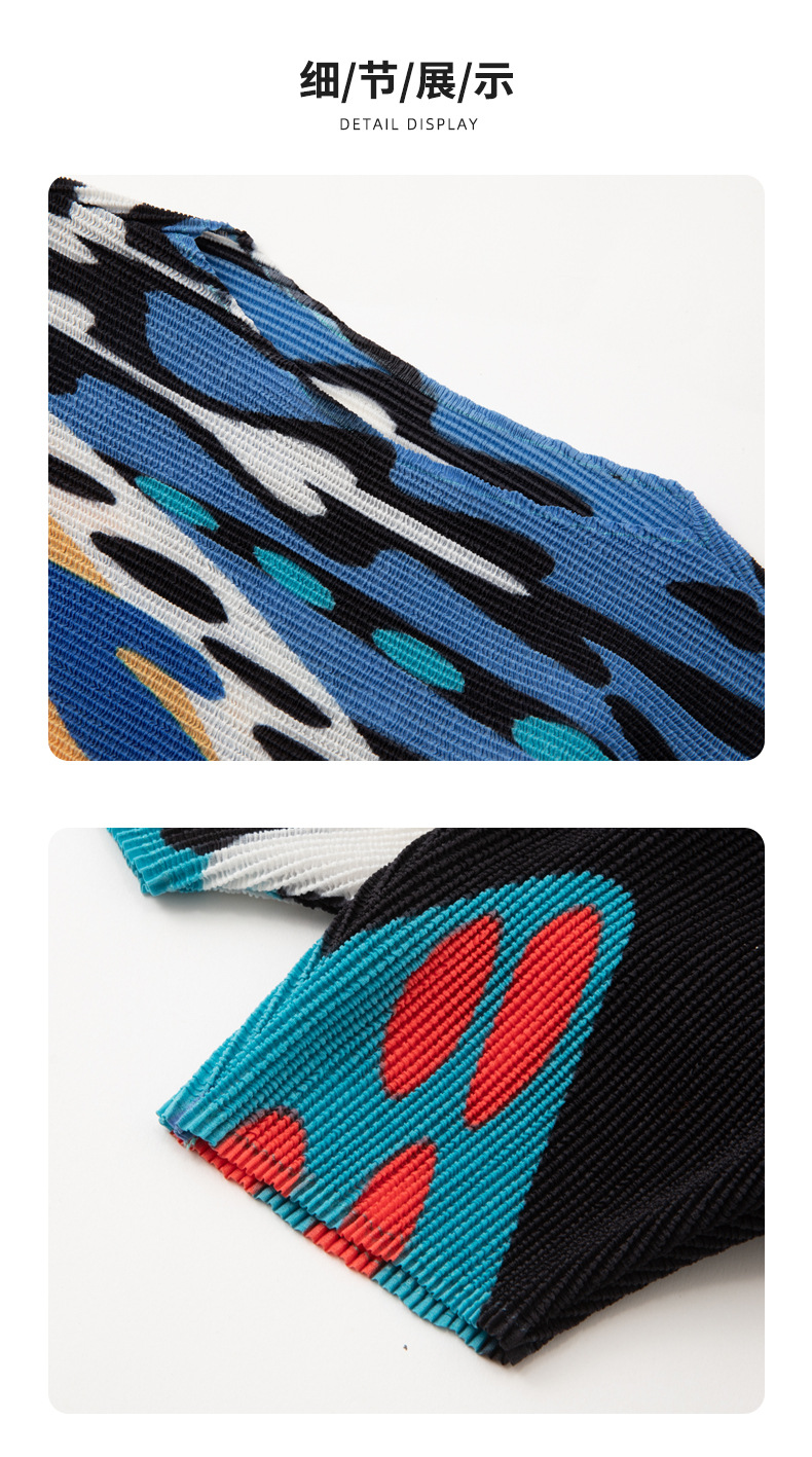 디자인 컬러 매칭 라운드 넥 루즈 주름 반팔 티셔츠 미야케 유행 올매치 주름 최고 여성 여름 뉴