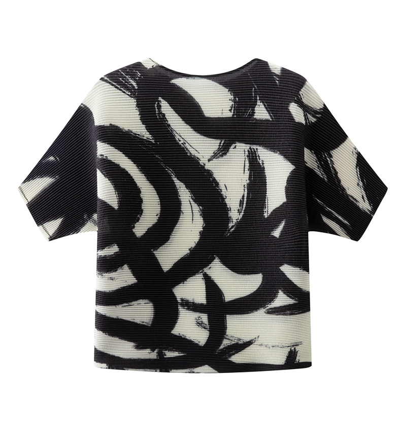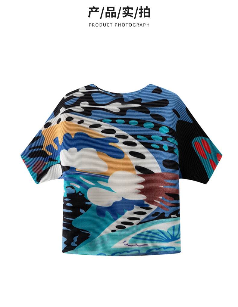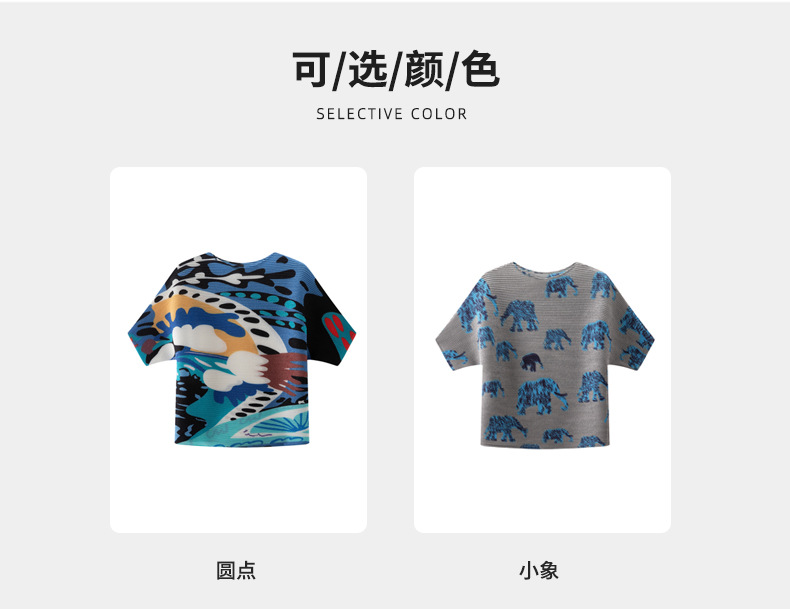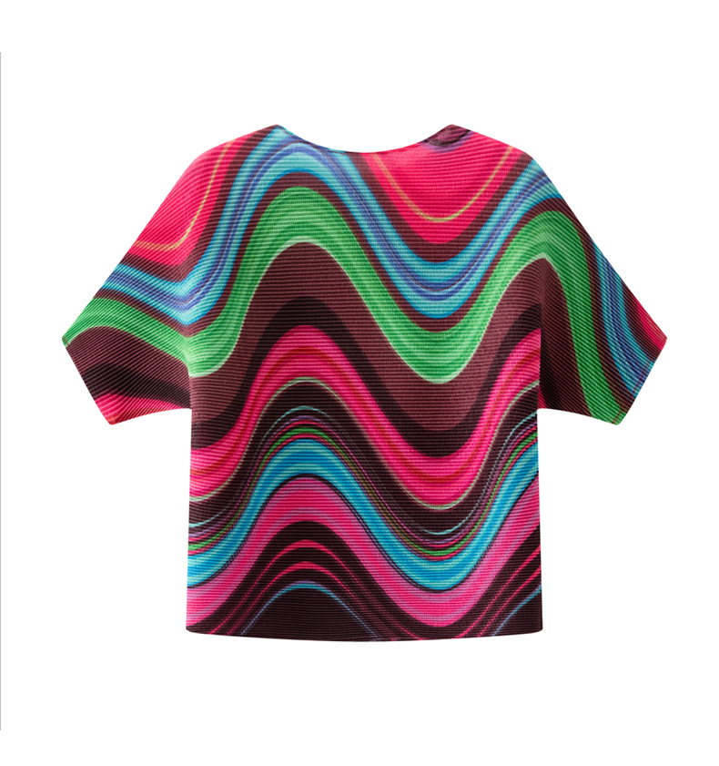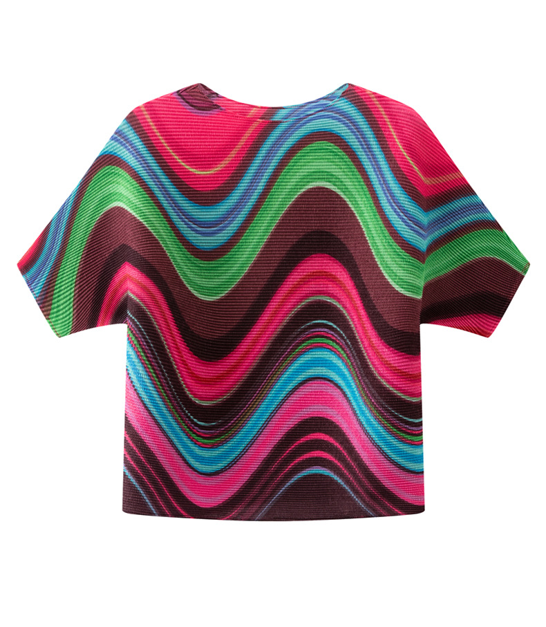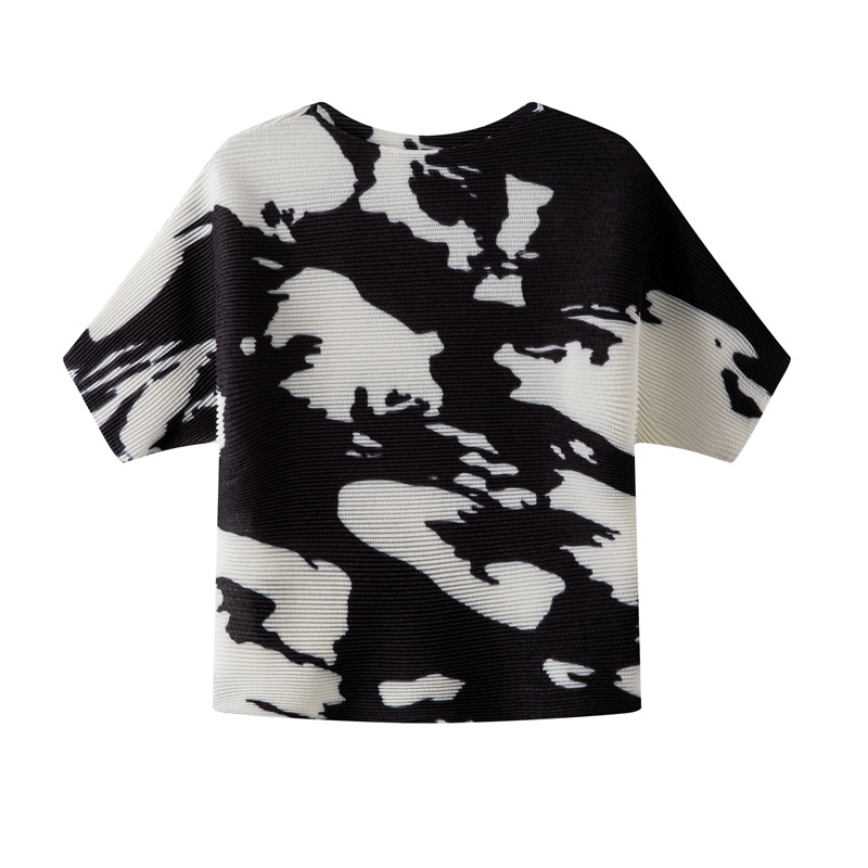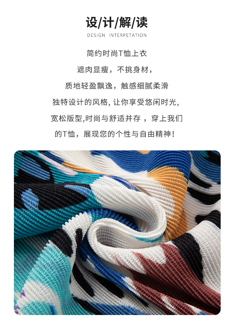 디자인 컬러 매칭 라운드 넥 루즈 주름 반팔 티셔츠 미야케 유행 올매치 주름 최고 여성 여름 뉴스토어 가기