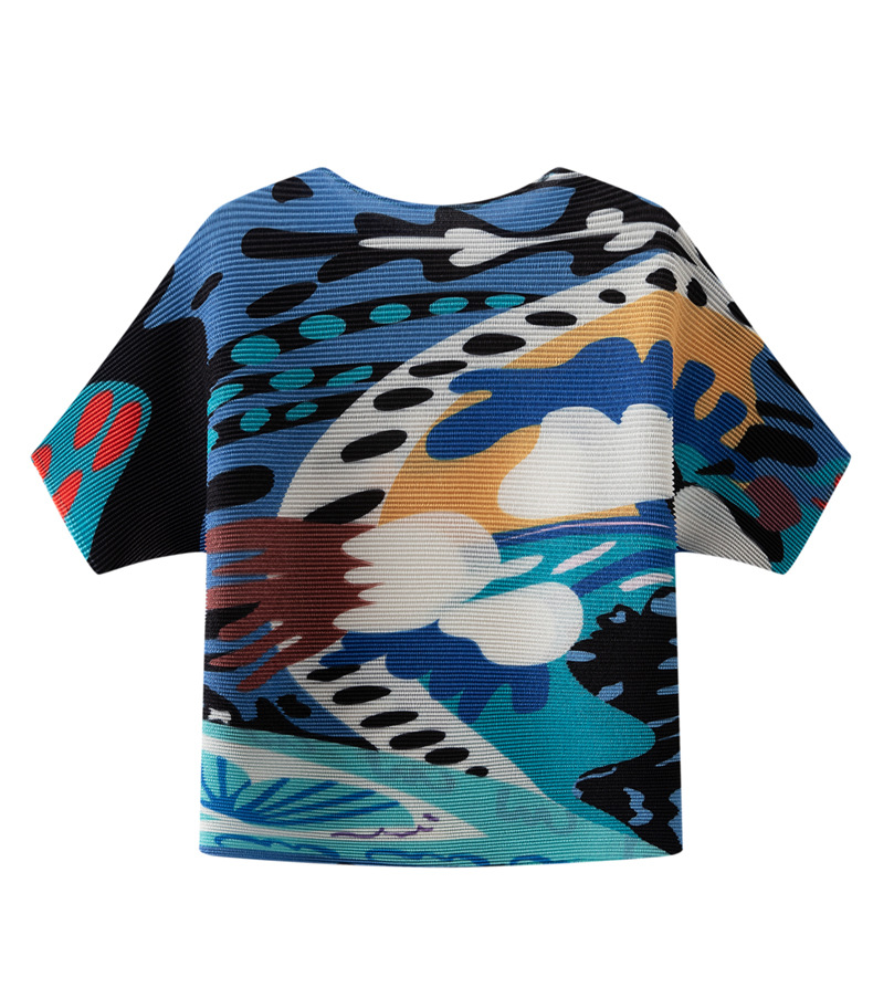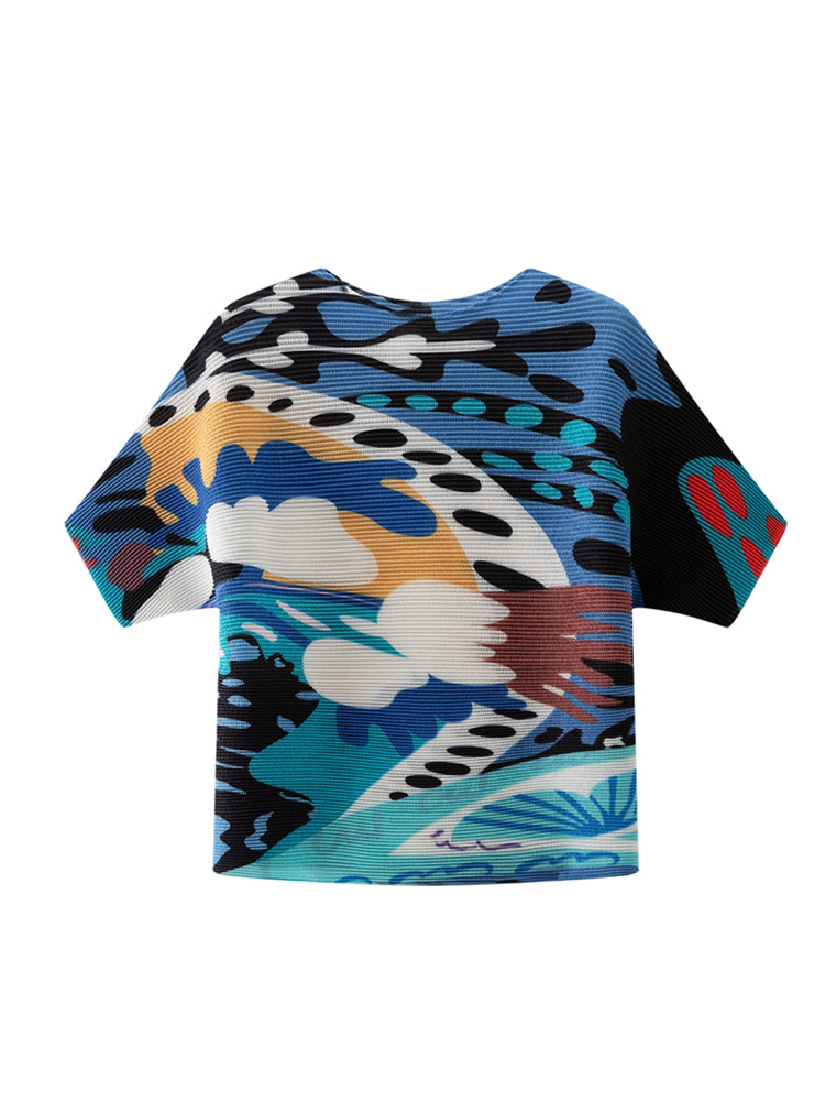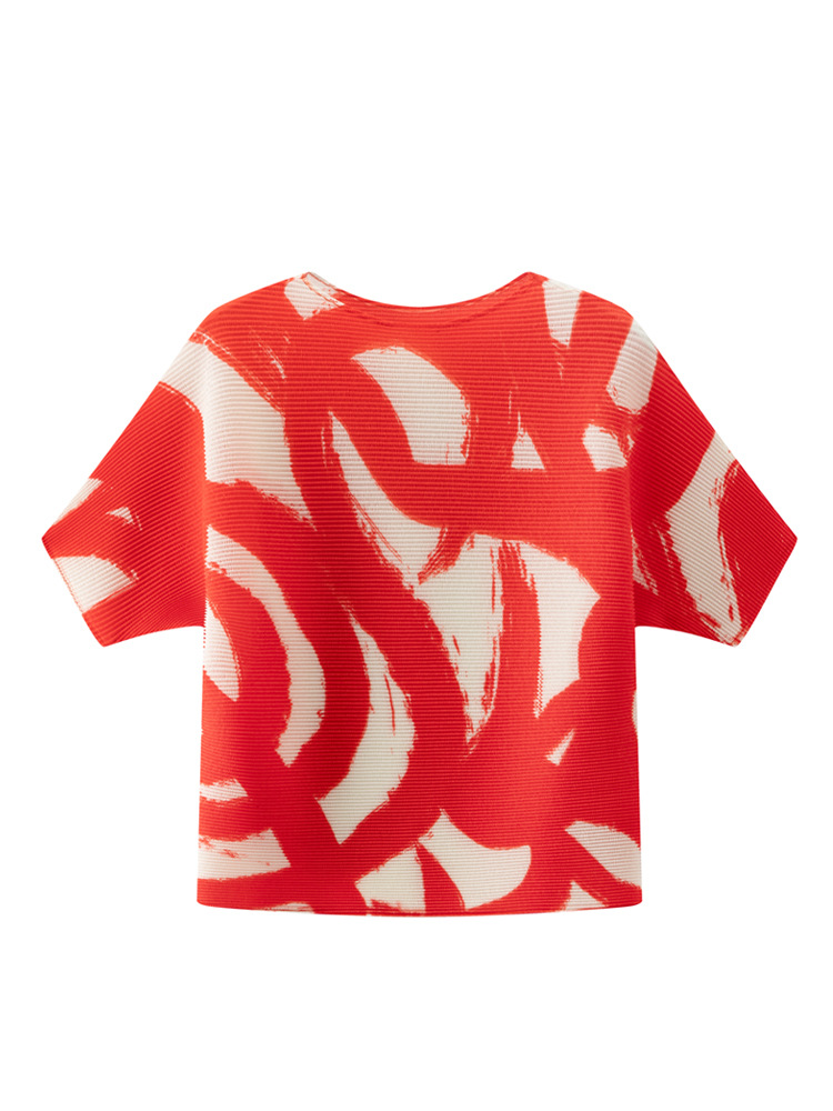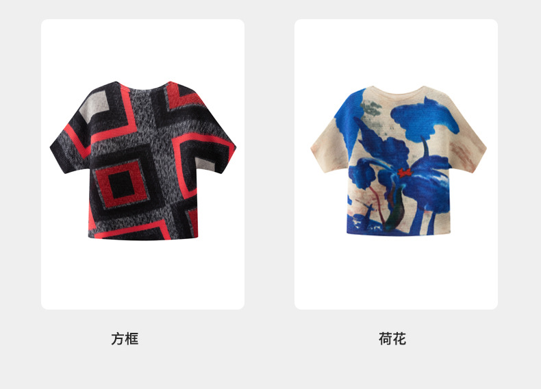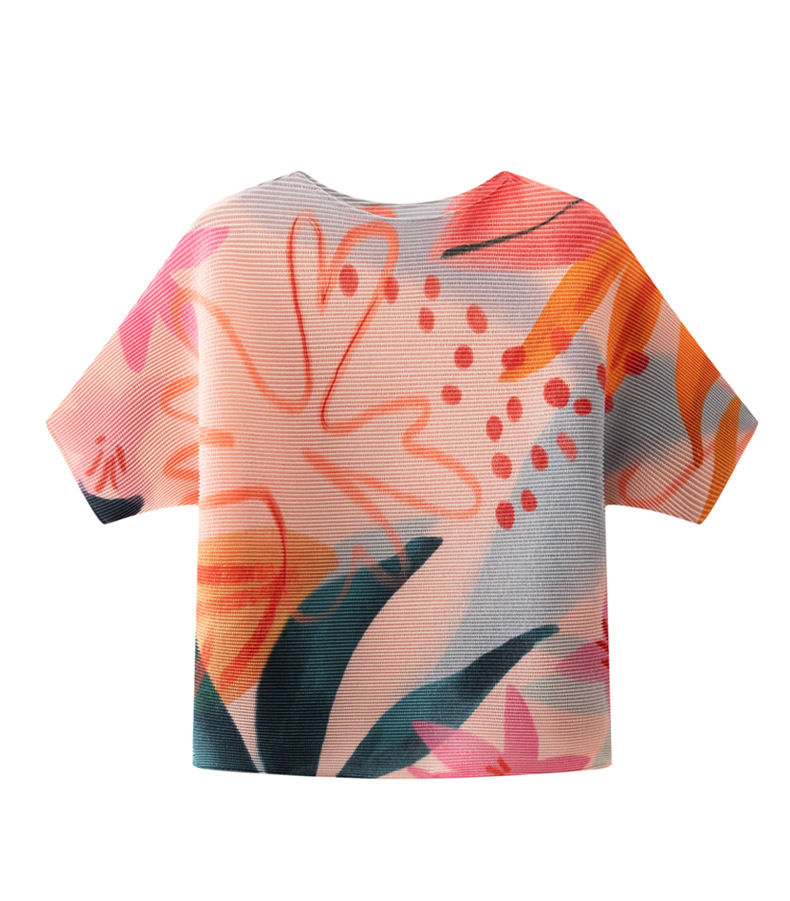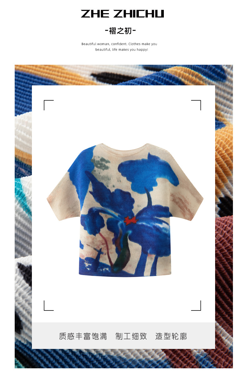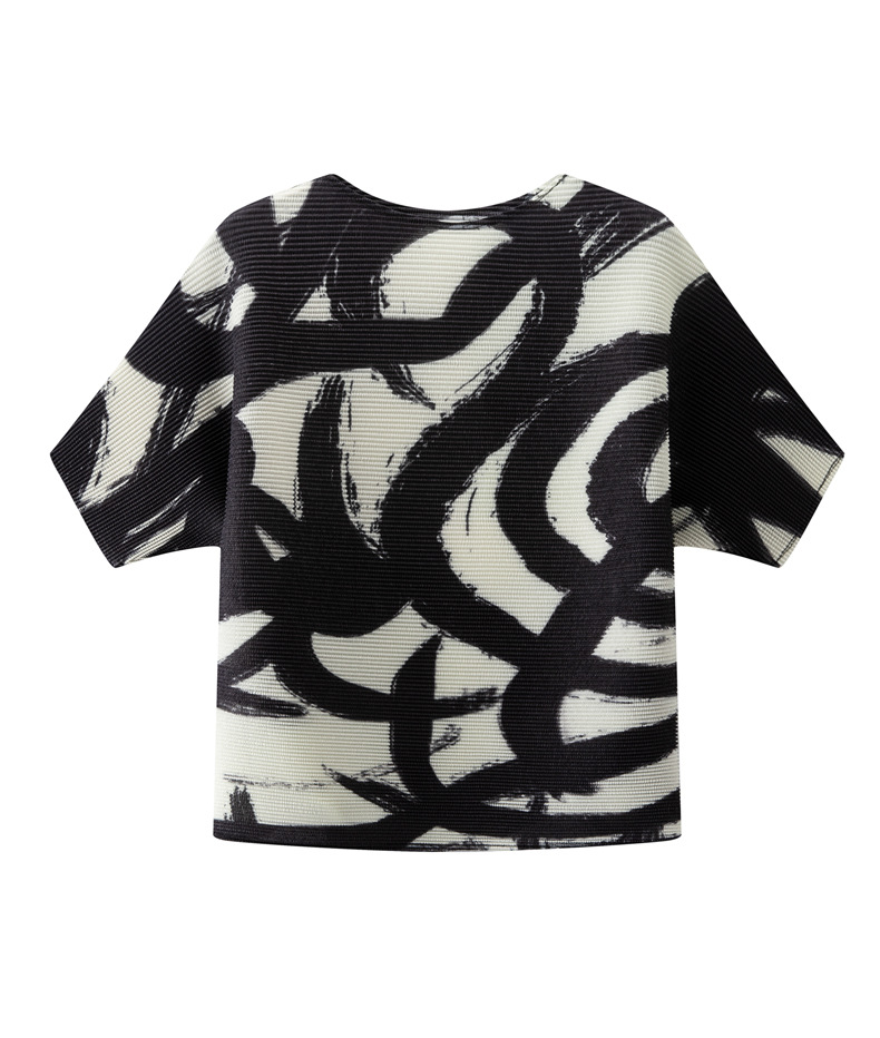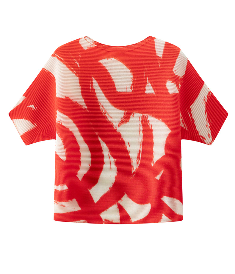 디자인 컬러 매칭 라운드 넥 루즈 주름 반팔 티셔츠 미야케 유행 올매치 주름 최고 여성 여름 뉴스토어 가기