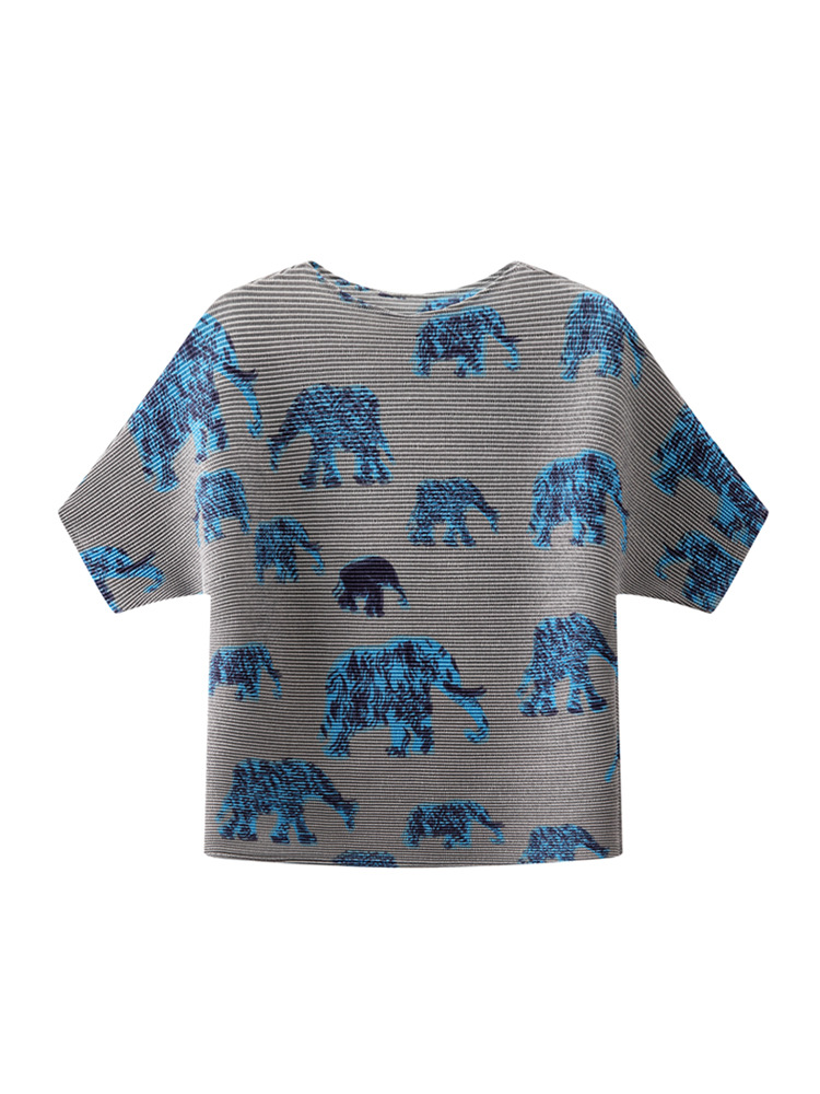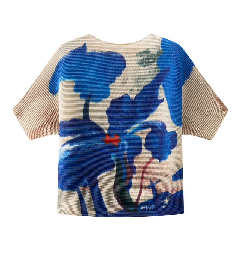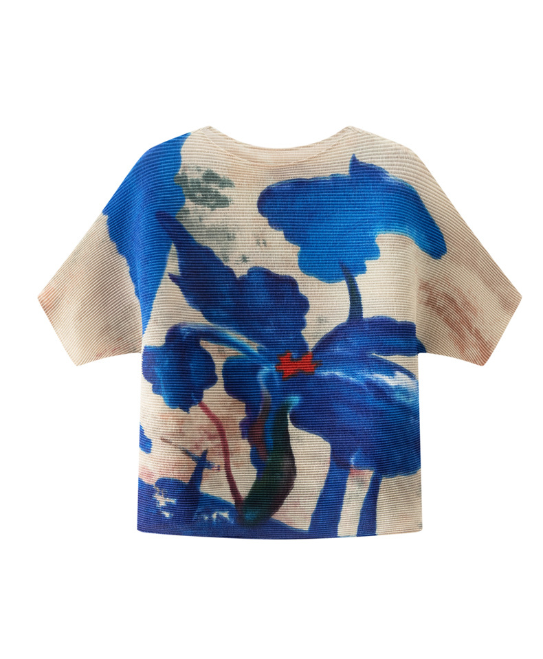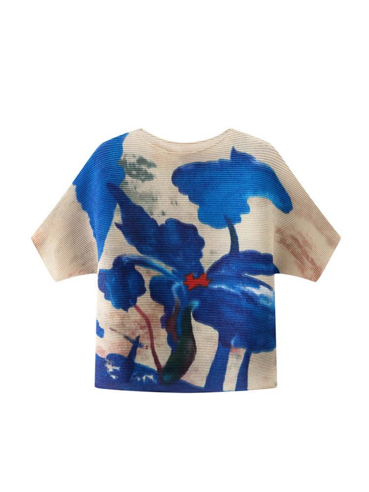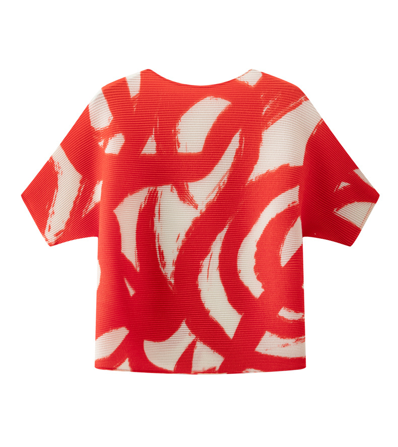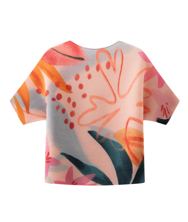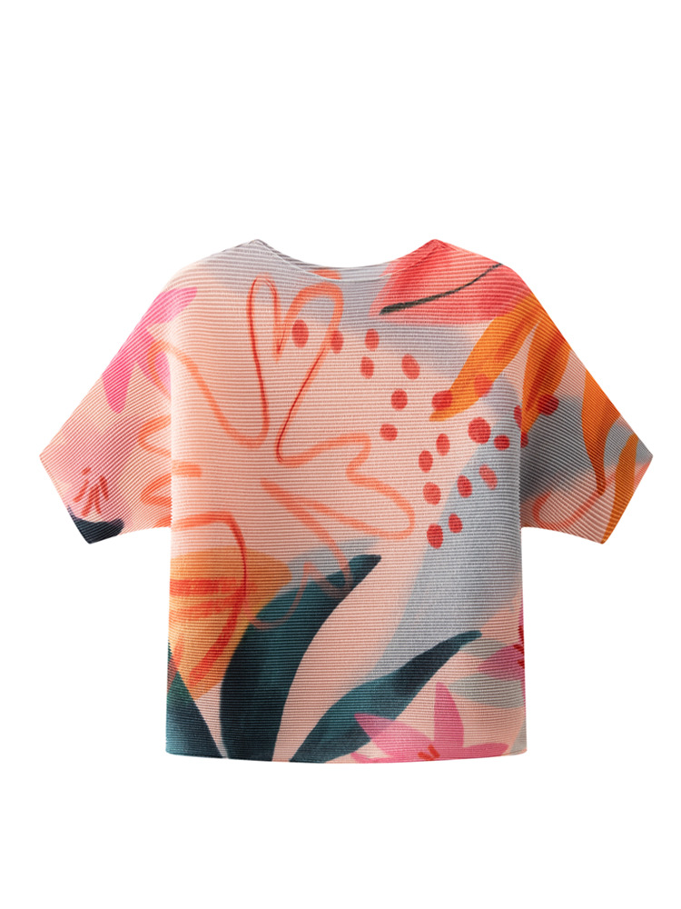 디자인 컬러 매칭 라운드 넥 루즈 주름 반팔 티셔츠 미야케 유행 올매치 주름 최고 여성 여름 뉴스토어 가기